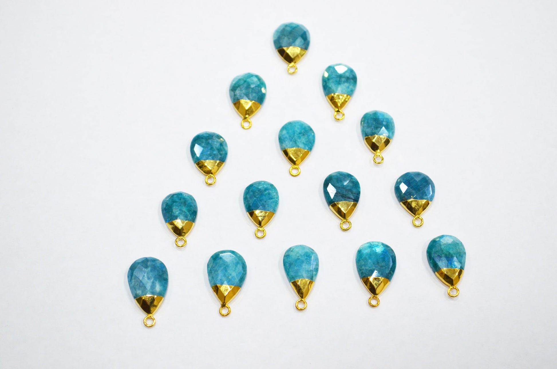 Mystic Ocean Green Rainbow Moonstone Electroplated Pear Shape Pendant Β , Mystic Ocean Green Rainbow Moonstone Faceted Connector Charm , Sold By Piece , 11x19 - 13x22 mm , RB-7315