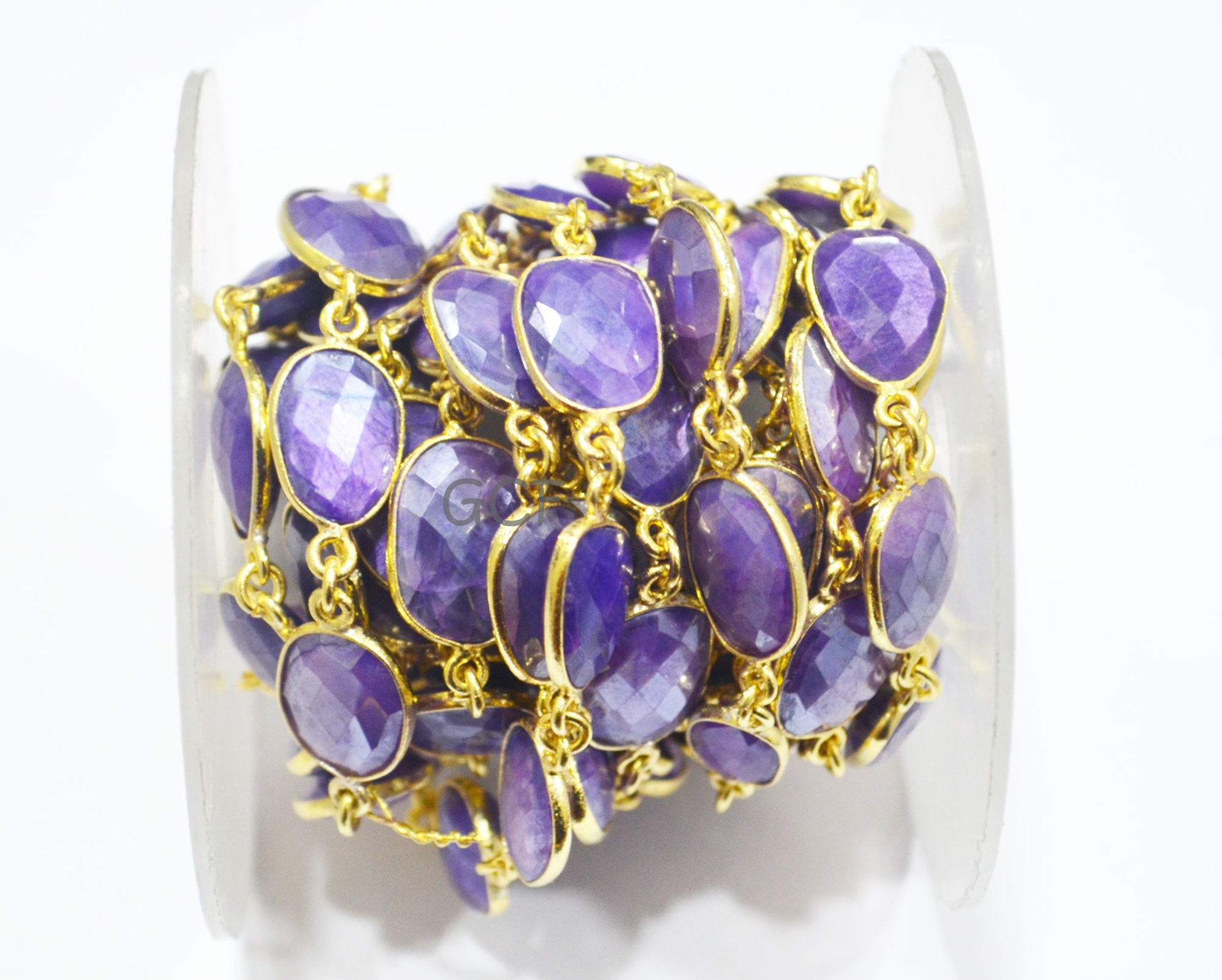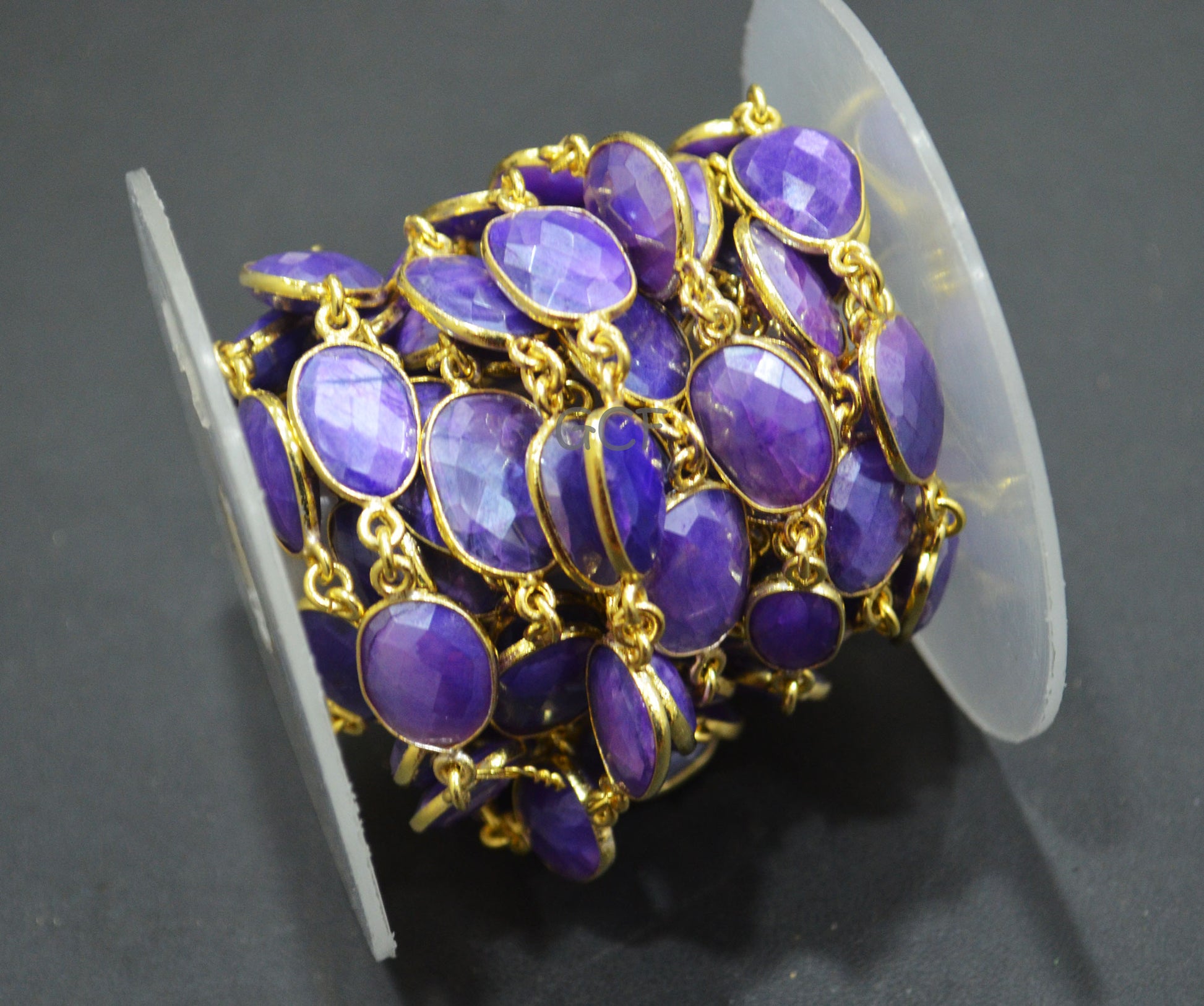 Mystic Purple Color Moonstone Faceted Slice Connector Chain , Mystic Purple Stone Bezel Link Chain , 8x12 - 12x16 mm , 6937