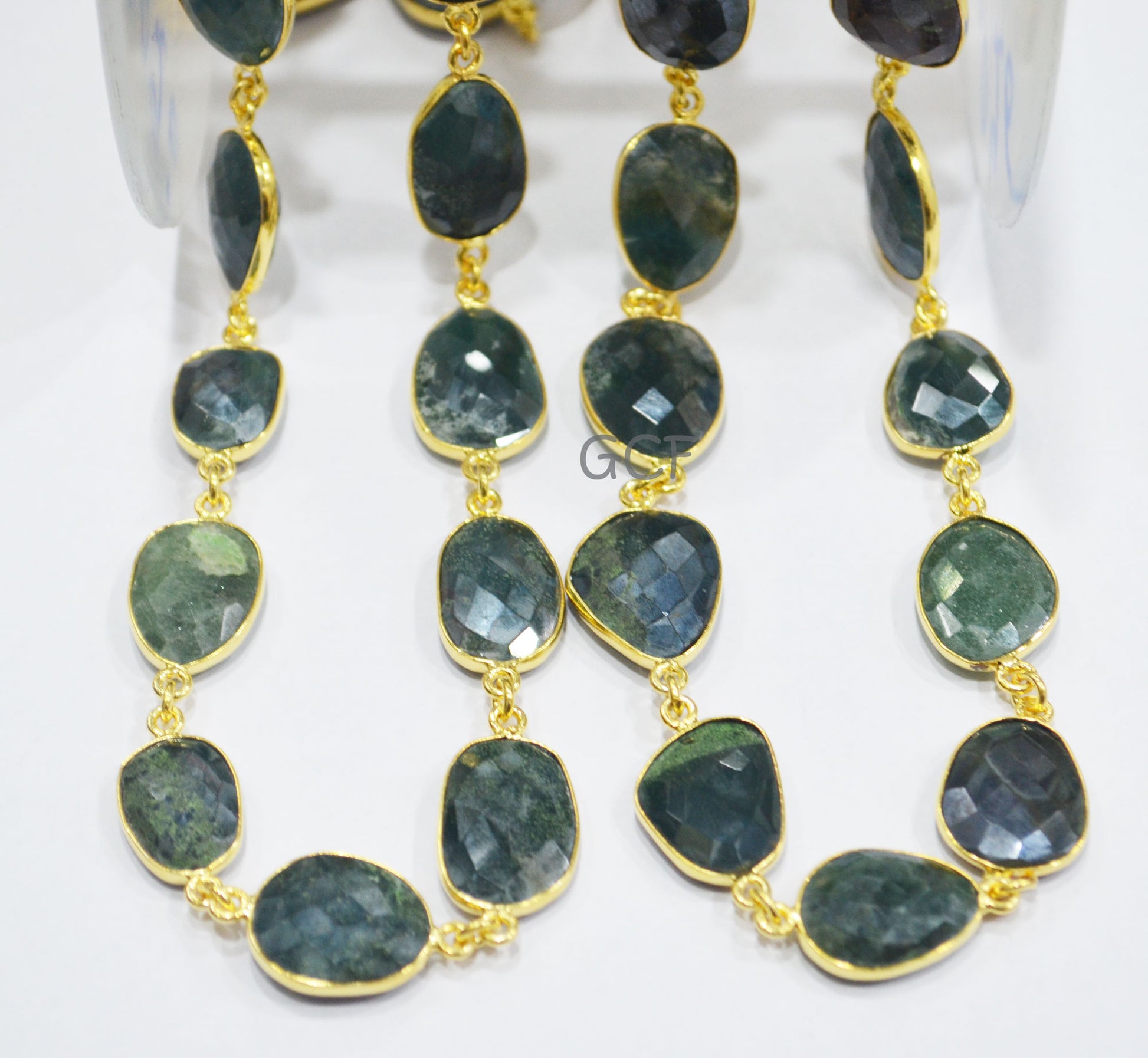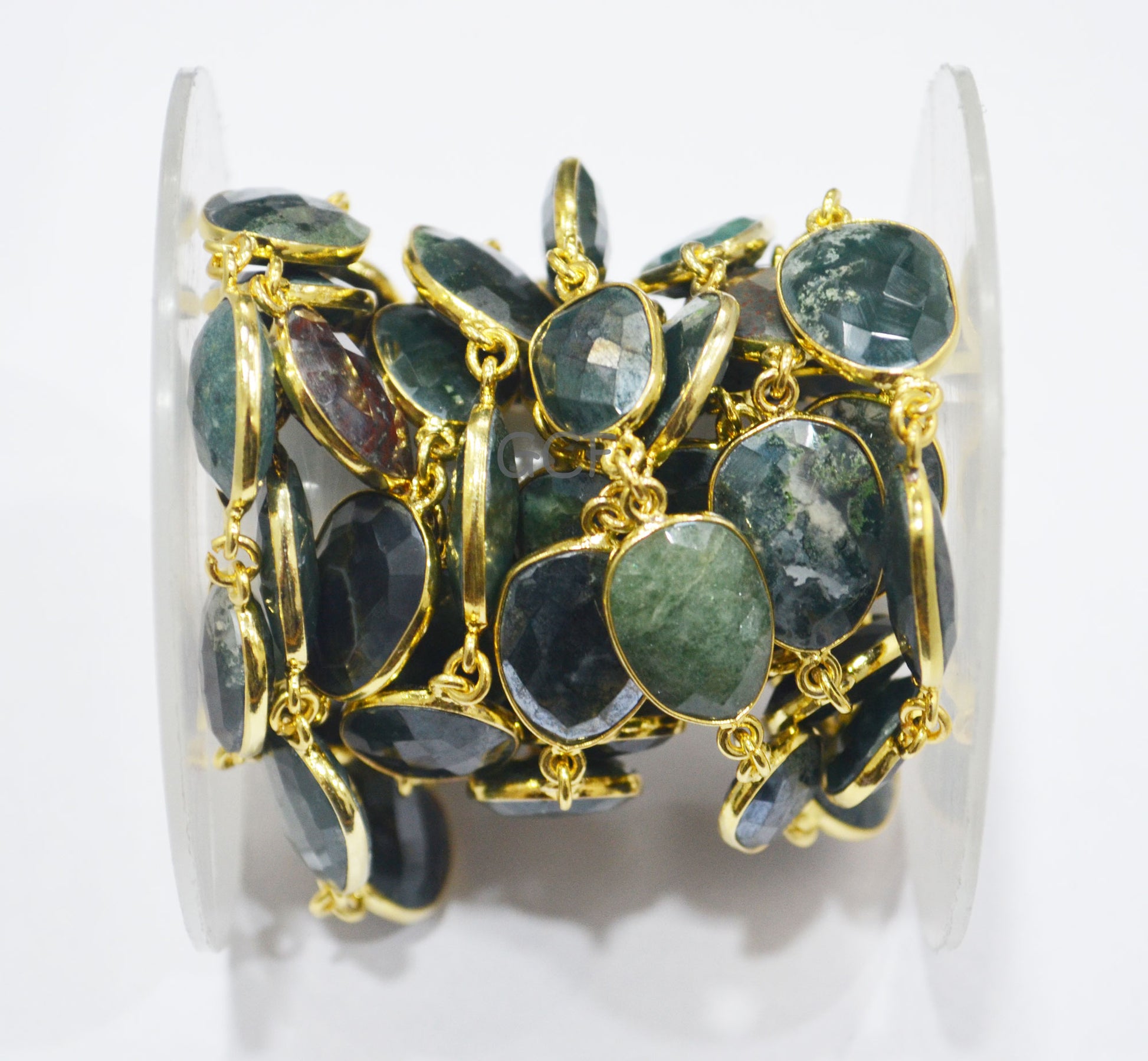 Mystic Red Green Blood Stone Faceted Free Form Connector Chain ,Red Green Blood Stone Bezel Link Chain ,12x15 - 15x17 mm ,6903