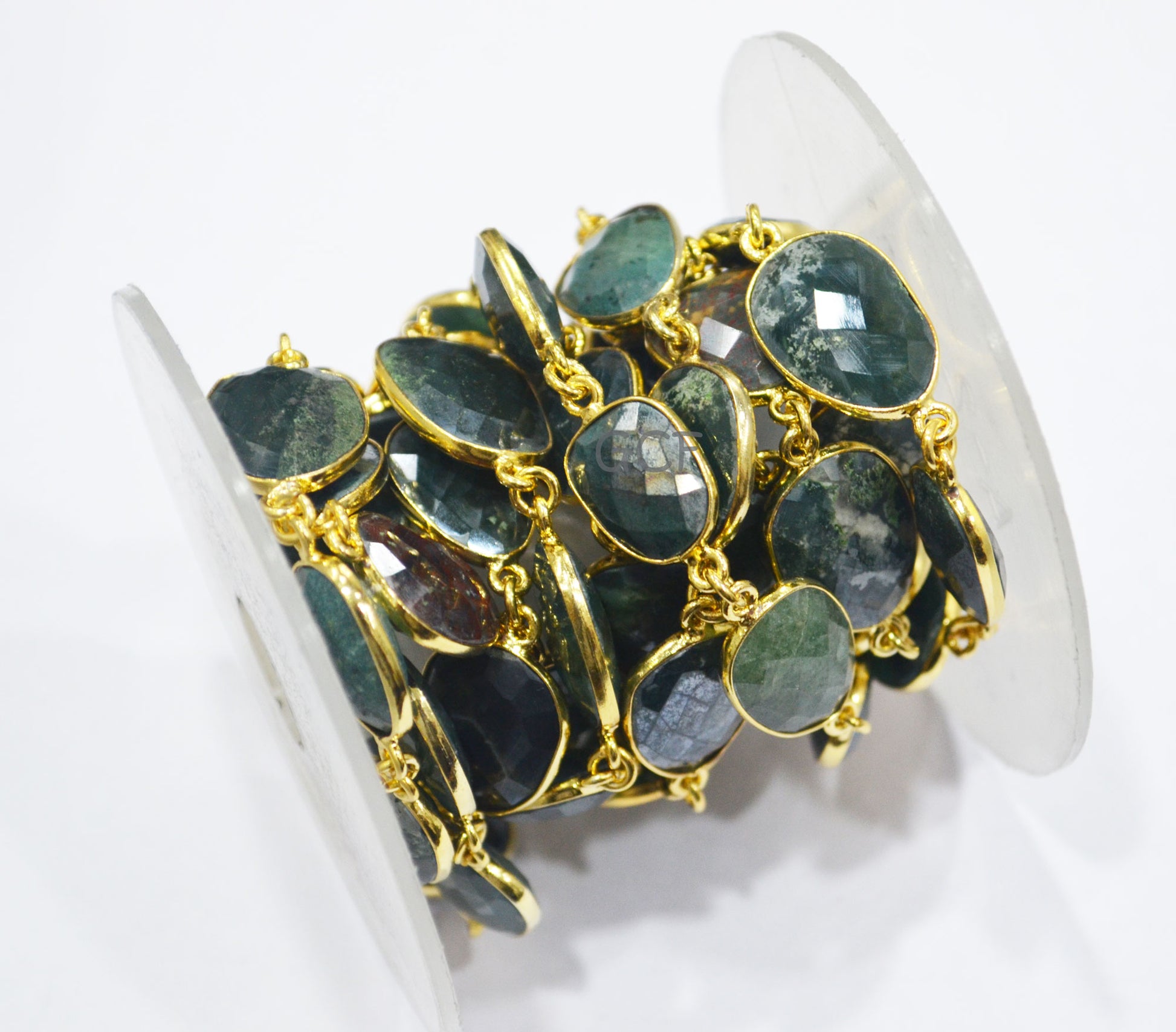Mystic Red Green Blood Stone Faceted Free Form Connector Chain ,Red Green Blood Stone Bezel Link Chain ,Sold By Foot ,12x15 - 15x17 mm ,6903