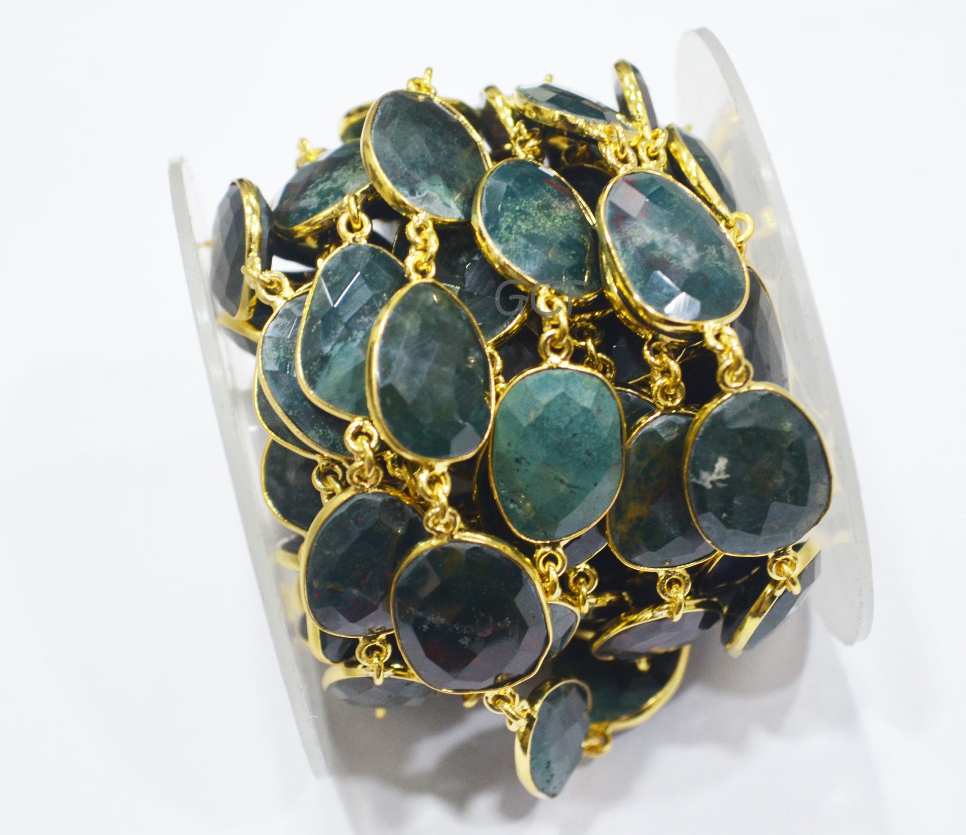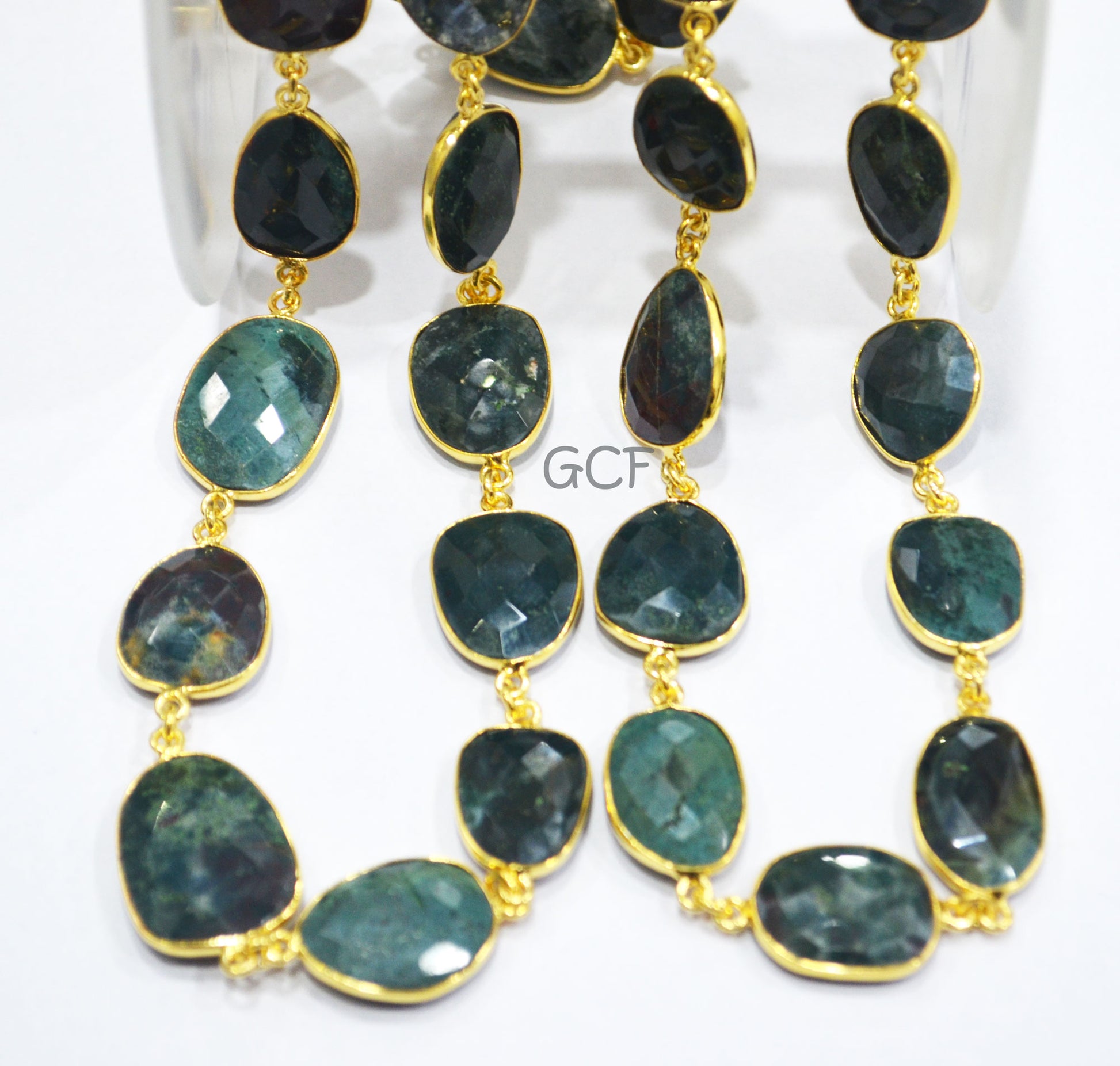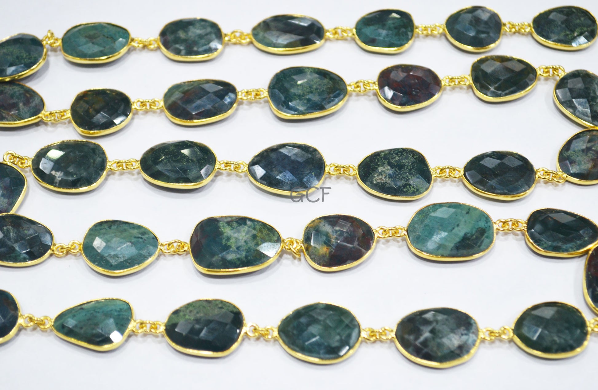 Mystic Red Green Blood Stone Faceted Free Form Connector Chain ,Red Green Blood Stone Bezel Link Chain ,15x17 - 17x22 mm ,6904