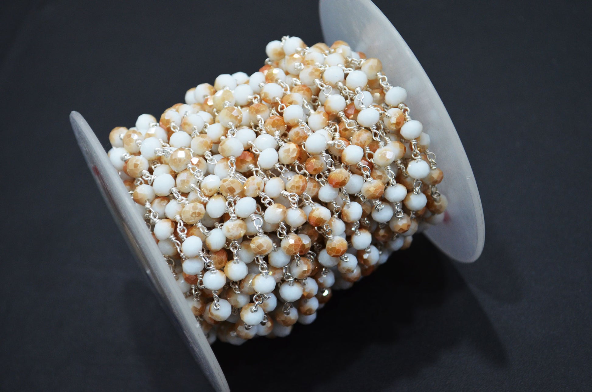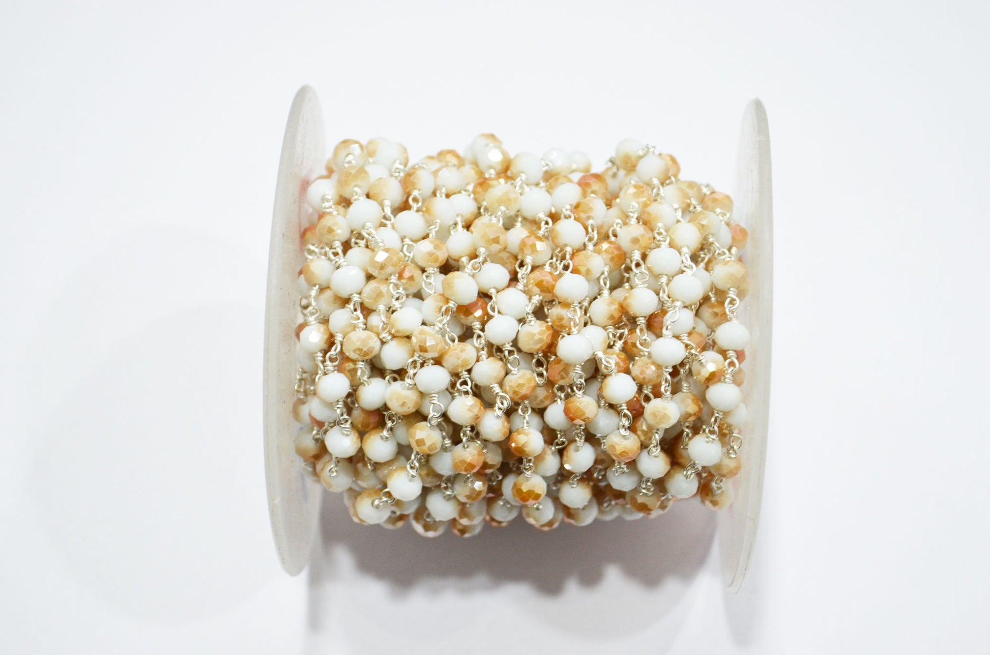 Mystic Sand Hydro Quartz Rondelle Shape Rosary Beaded Chain , Mystic Sand Hydro Quartz Faceted Wire Wrapped Chain , 5.50 - 6 mm , RB-5677