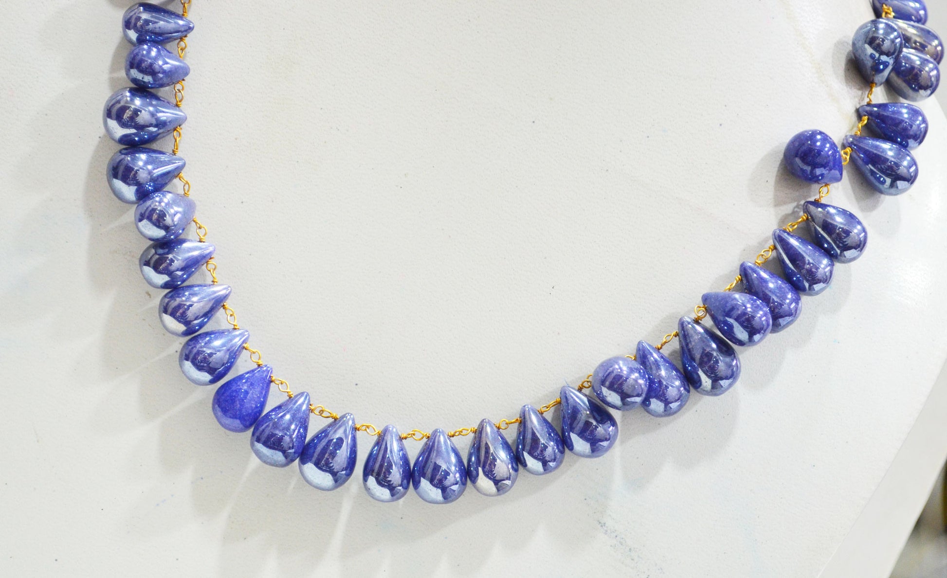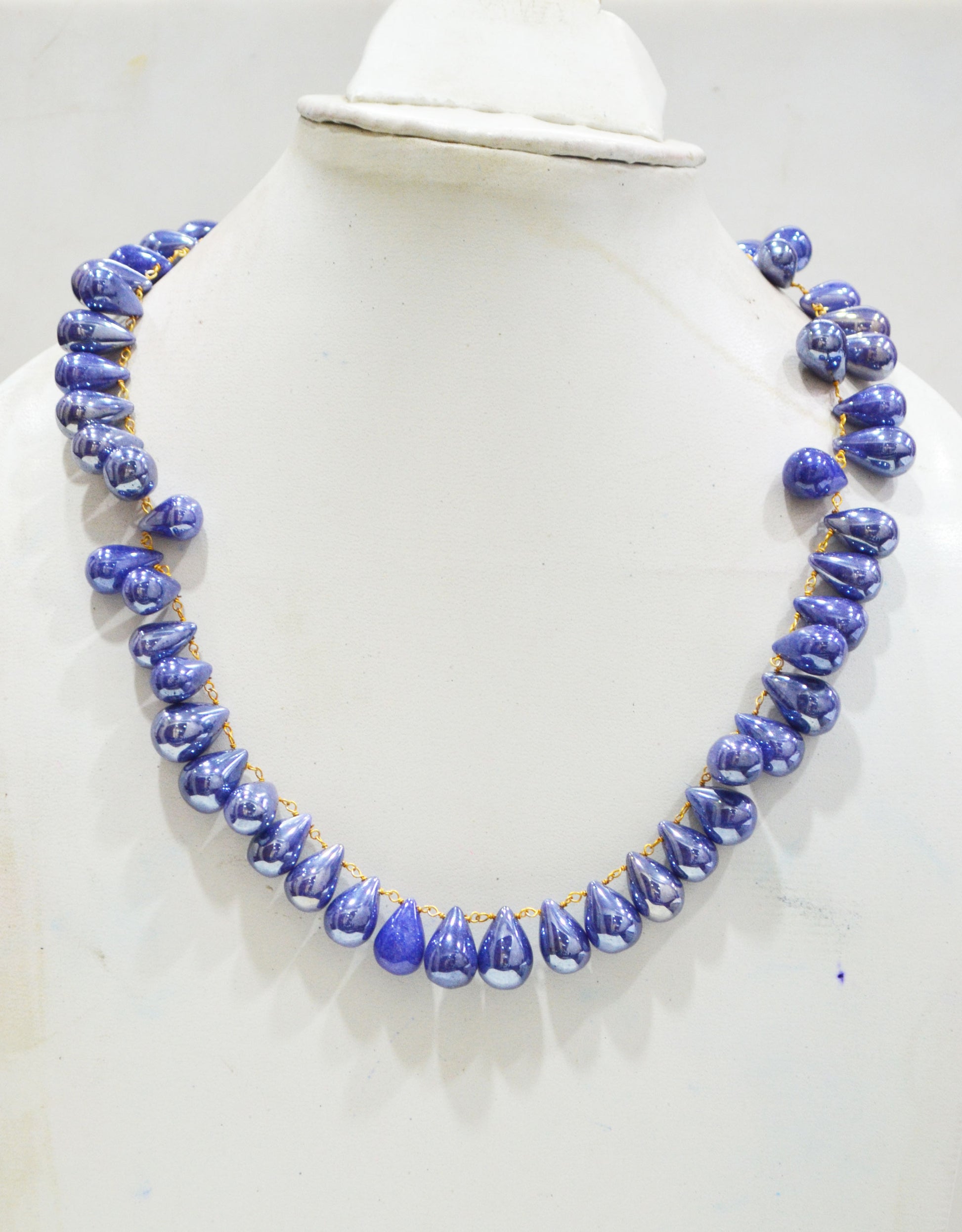 Mystic Sapphire Quartz Smooth Tear Drops Shape Necklace With Lobster Lock And Adjustable Chain , 16 Inches , 9x12 - 11x16 mm , RB-7419
