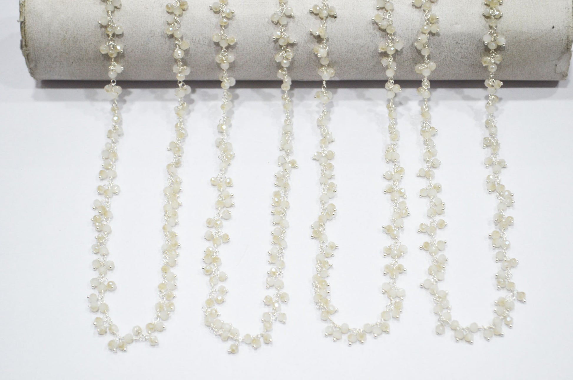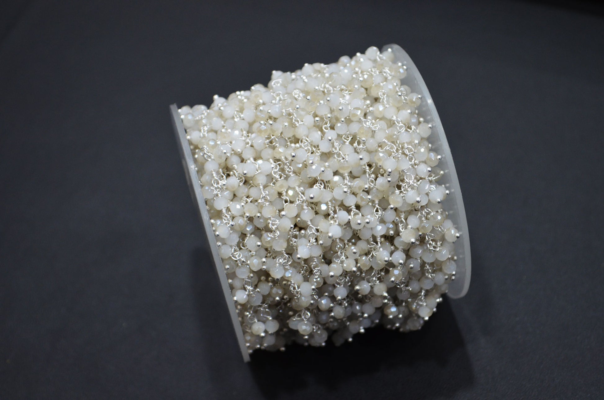 Mystic White Chalcedony Hydro Quartz Faceted Rondelle Shape Dangling Chain , Mystic White Chalcedony Hydro Quartz Grape Chain , 3 - 3.50 mm , RB-5383