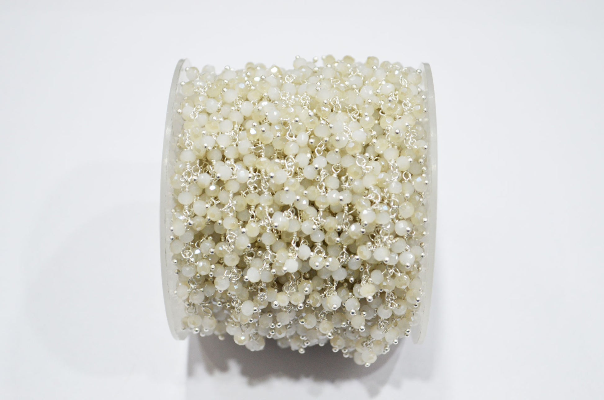 Mystic White Chalcedony Hydro Quartz Faceted Rondelle Shape Dangling Chain , 3 - 3.50 mm , RB-5383