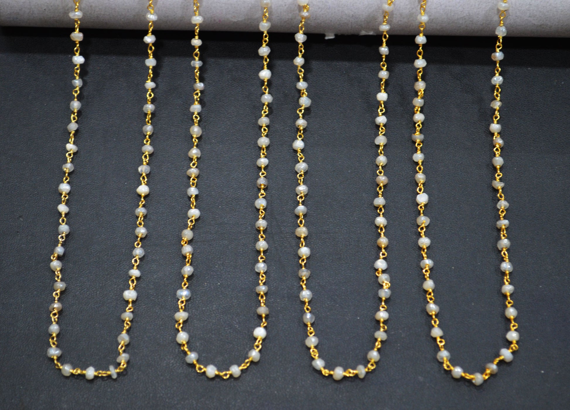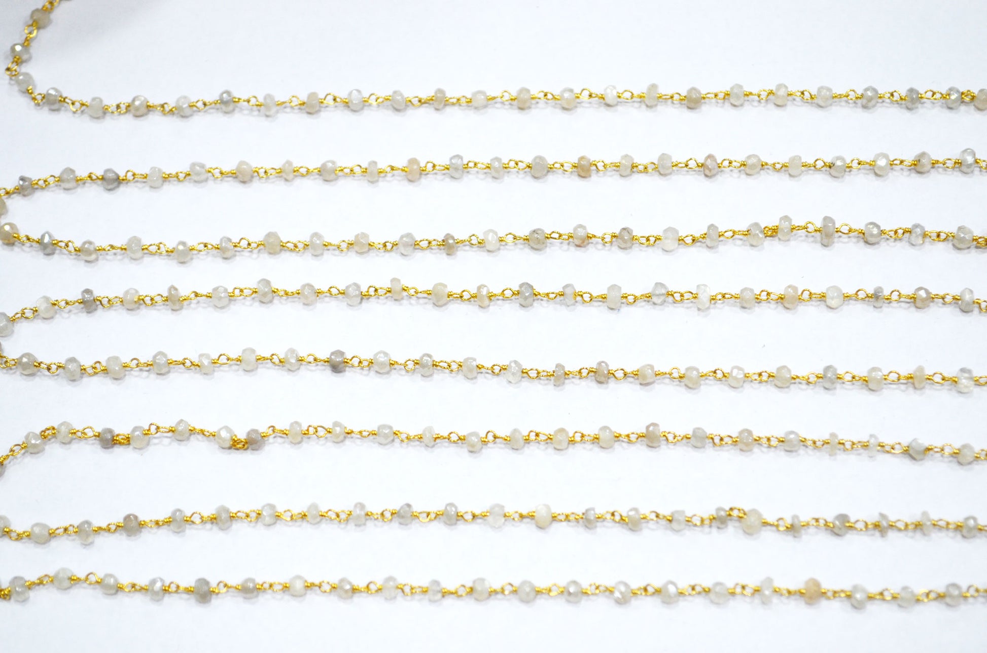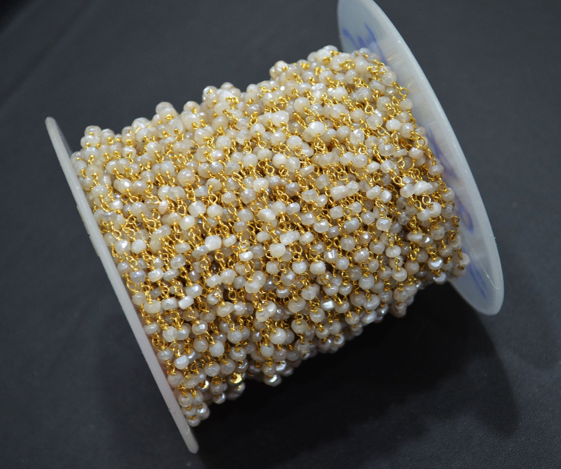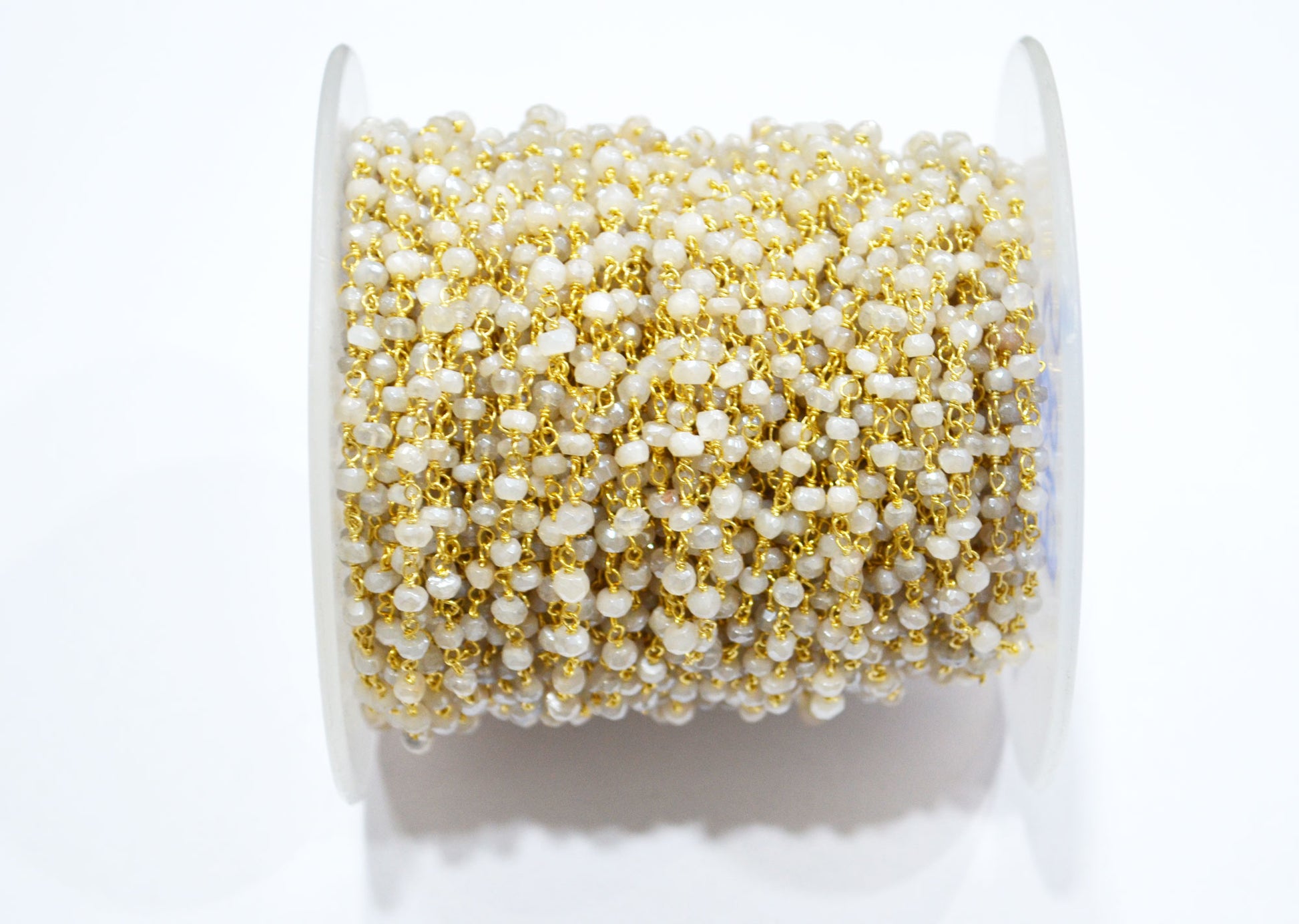 Mystic White Moonstone Faceted Rondelle Shape Chain , Mystic White Moonstone AB Silver Coated Wire Wrapped Chain , 3.50 - 3.75 mm , RB-5819