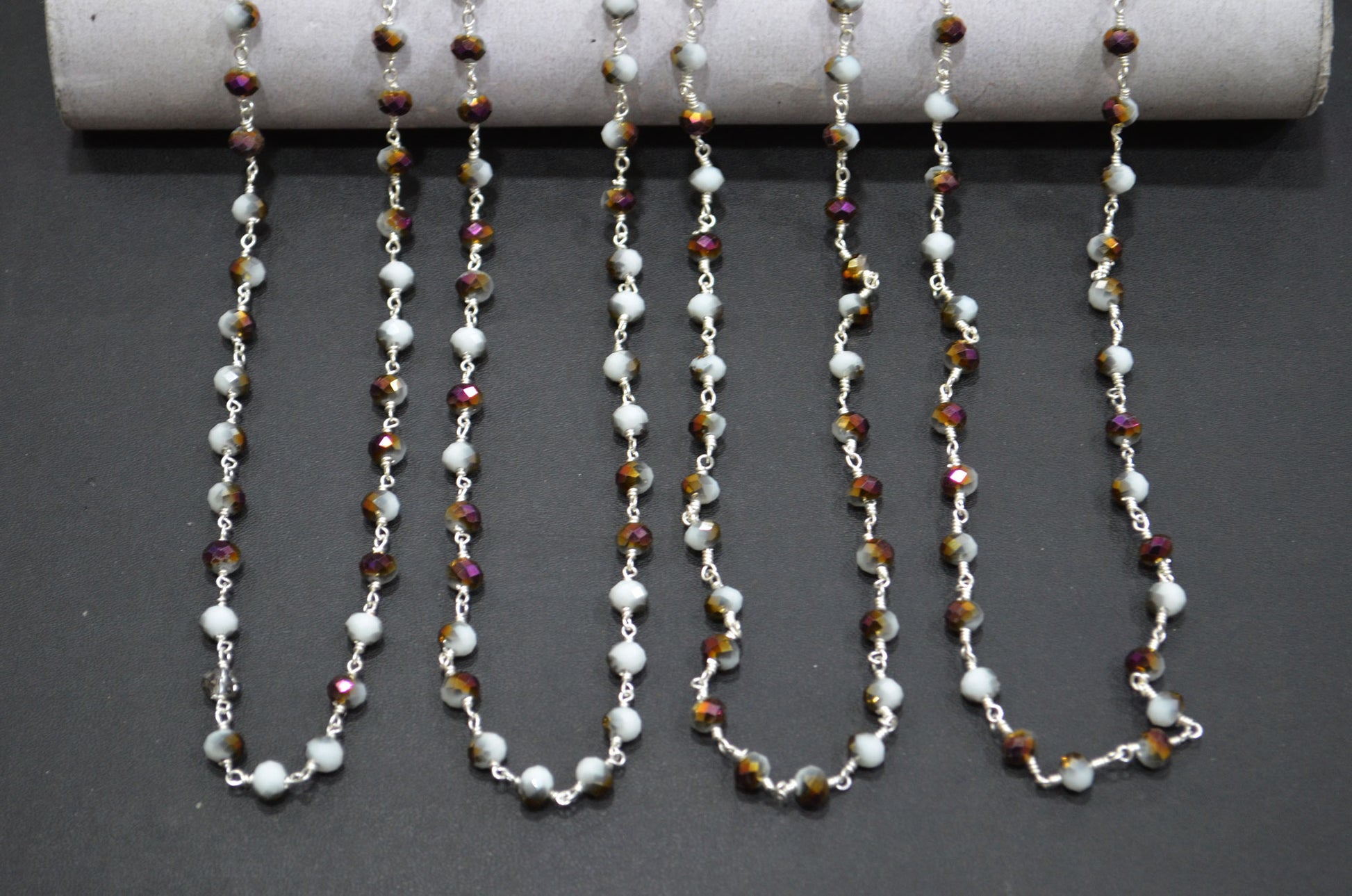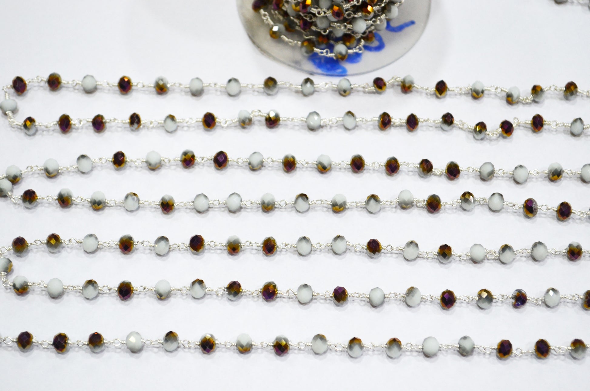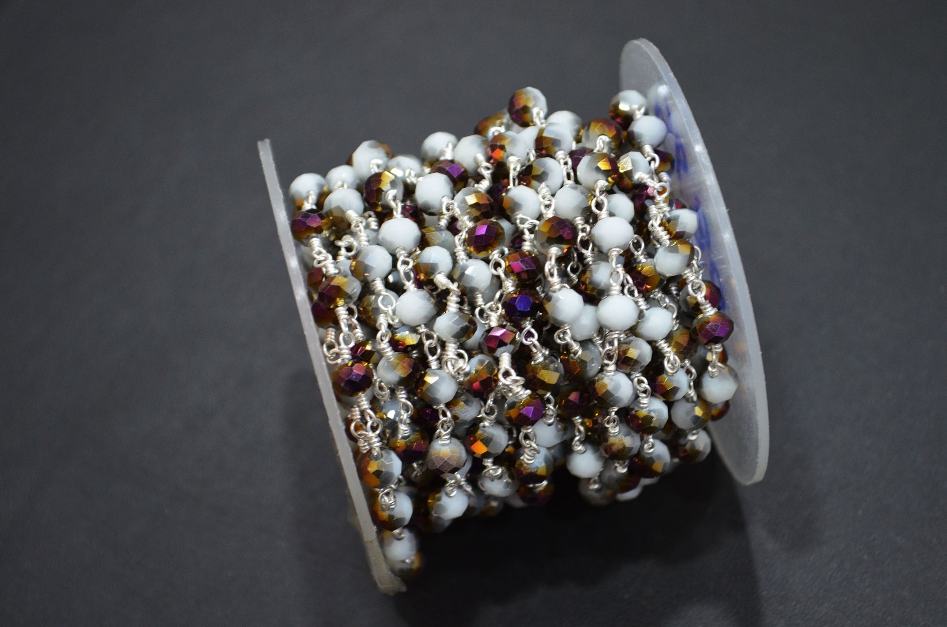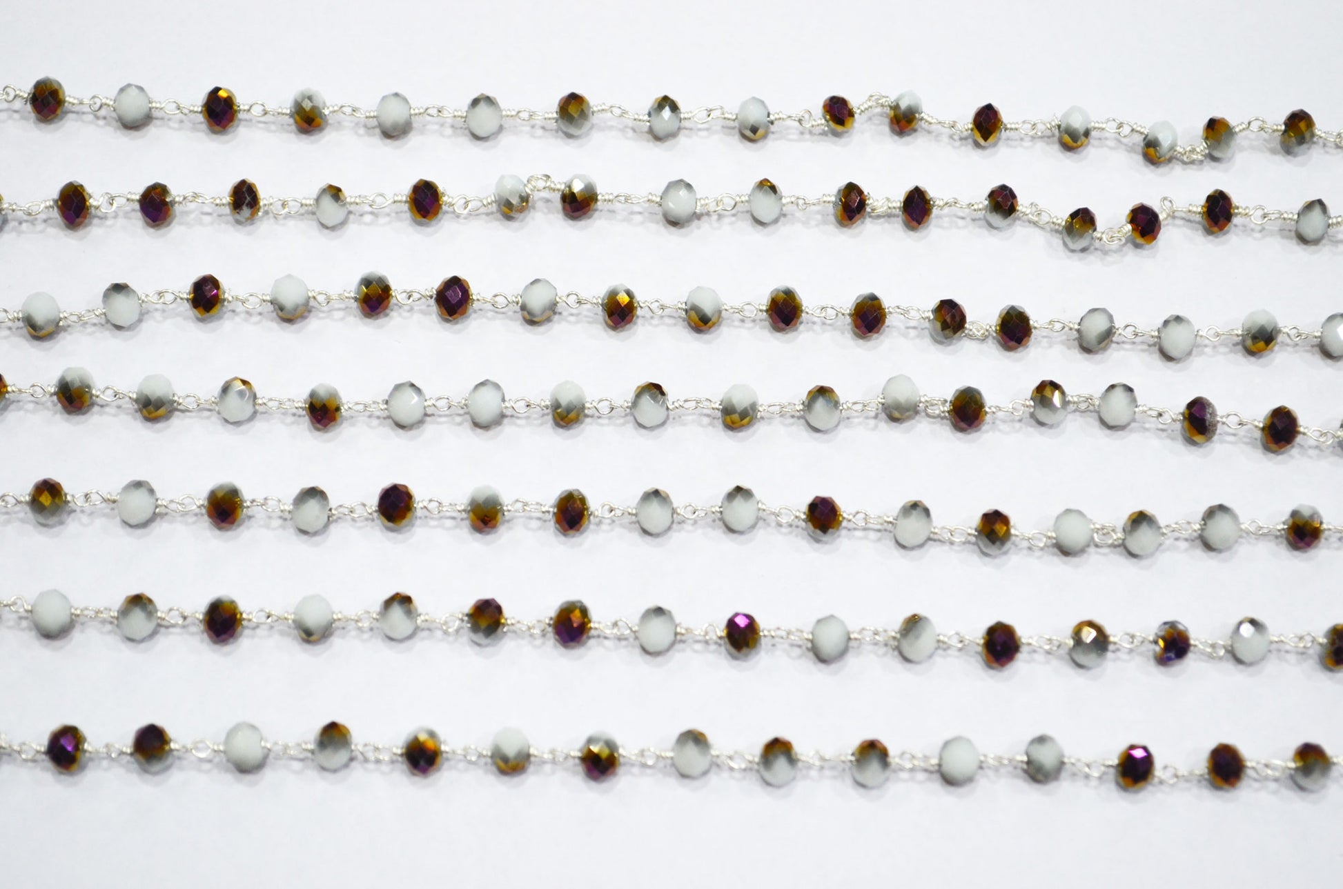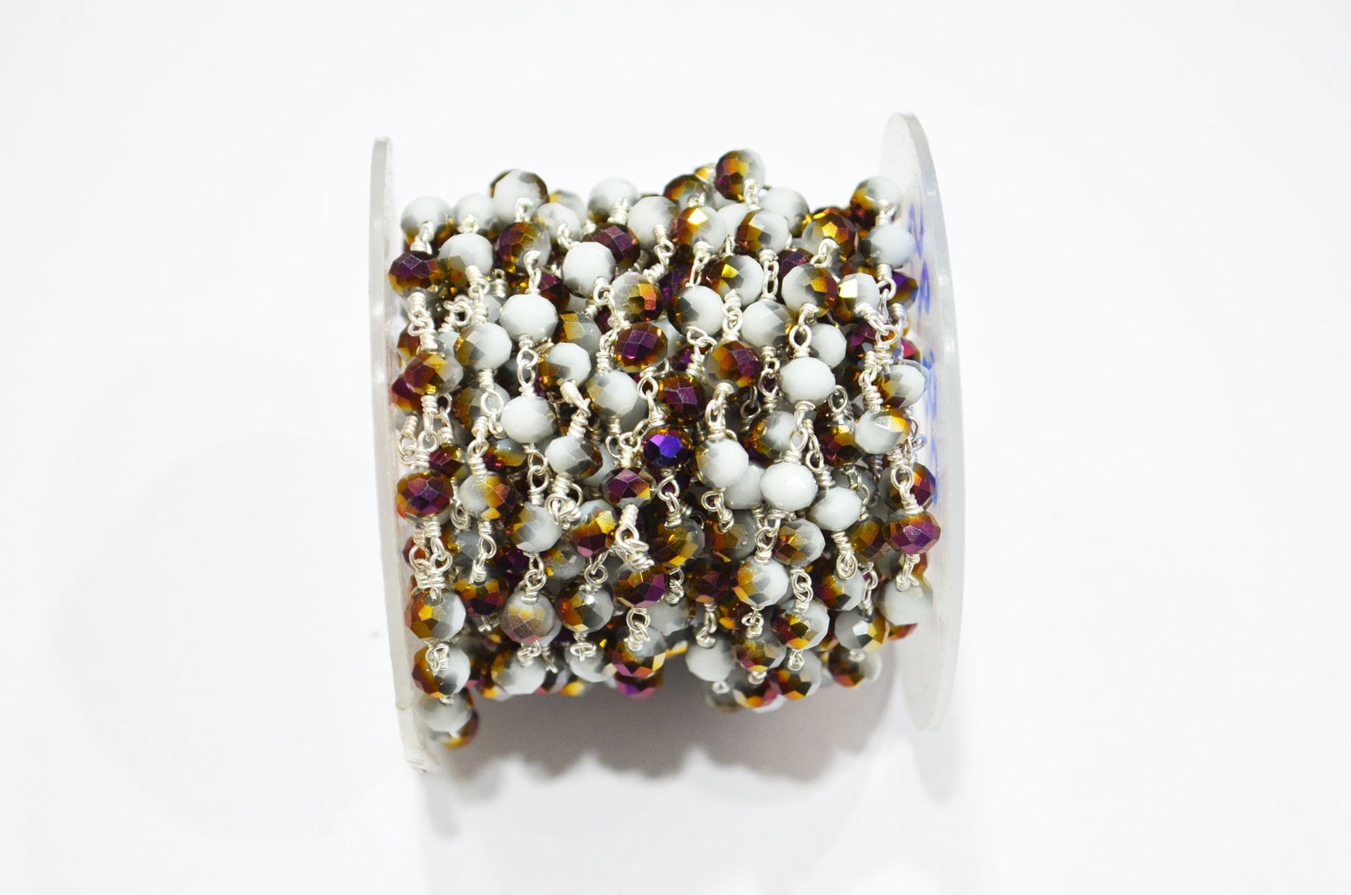 Mystic White Purple Hydro Quartz Rondelle Shape Rosary Beaded Chain , Mystic White Purple Hydro Quartz Faceted Wire Wrapped Chain , 5.50 - 6 mm , RB-5680
