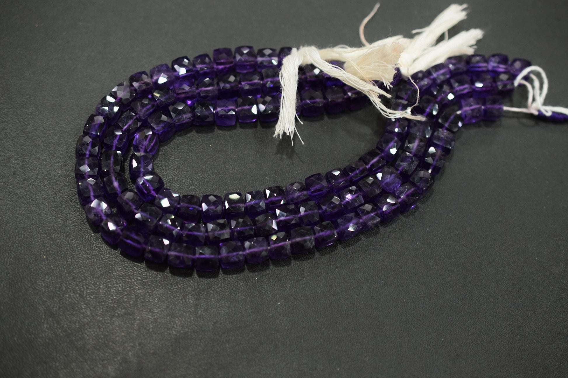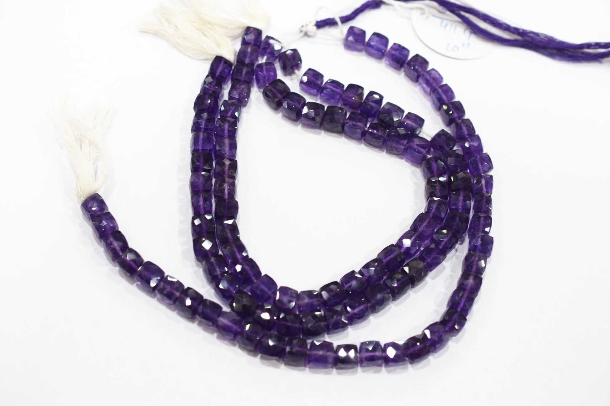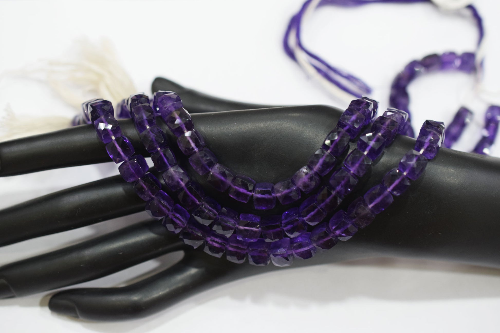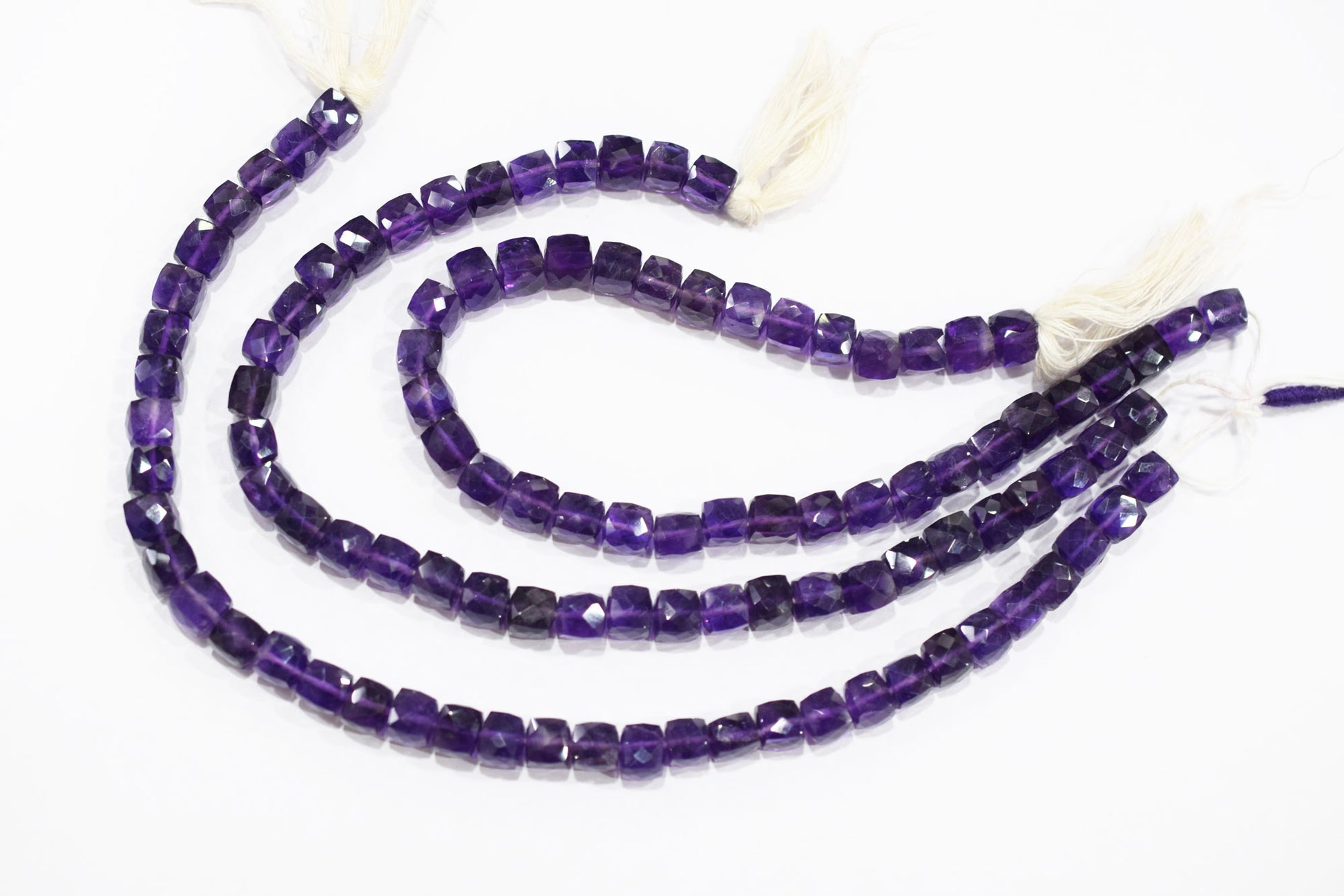 Natural Amethyst Faceted Cube Shape Beads , Natural Amethyst 3D Box Shape Beads , Sold By Strand , 7.00 - 7.50 mm , 10 Inches , BL- 6702