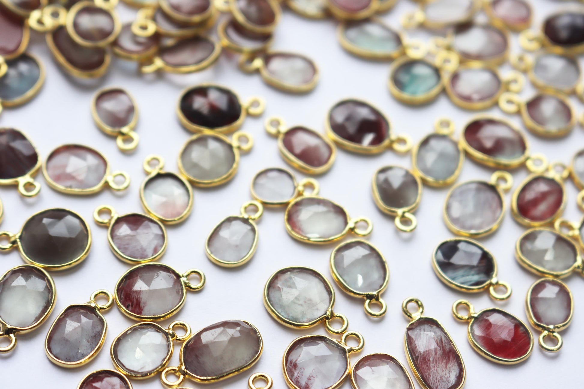 Natural Andesine Labradorite Faceted Slice Shape Connector , Natural Andesine Labradorite Free Form Shape Single Bail Connector , Sold By Piece , 7 - 11 mm , RB-7272