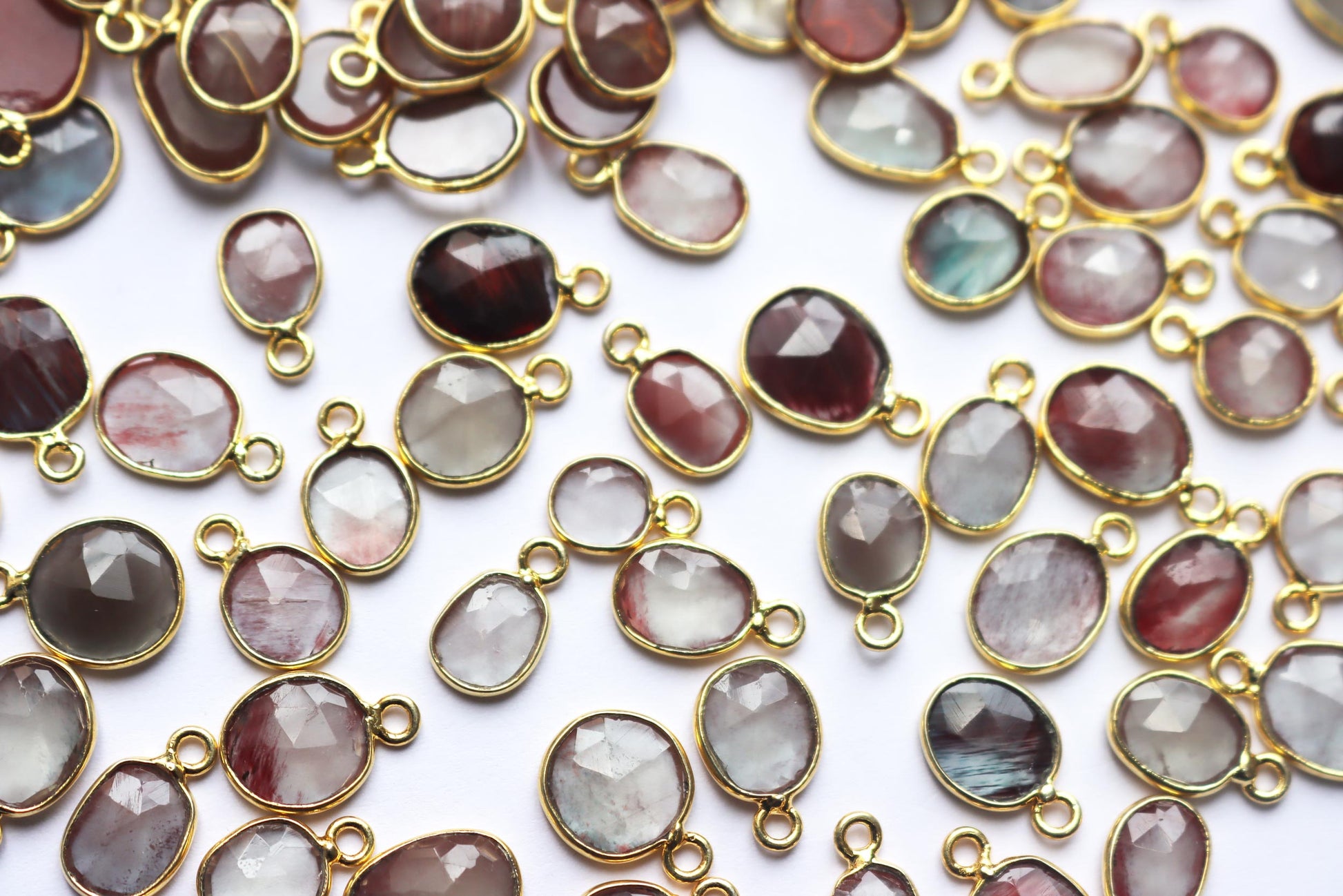 Natural Andesine Labradorite Faceted Slice Shape Connector , Sold By Piece , 7 - 11 mm , RB-7272