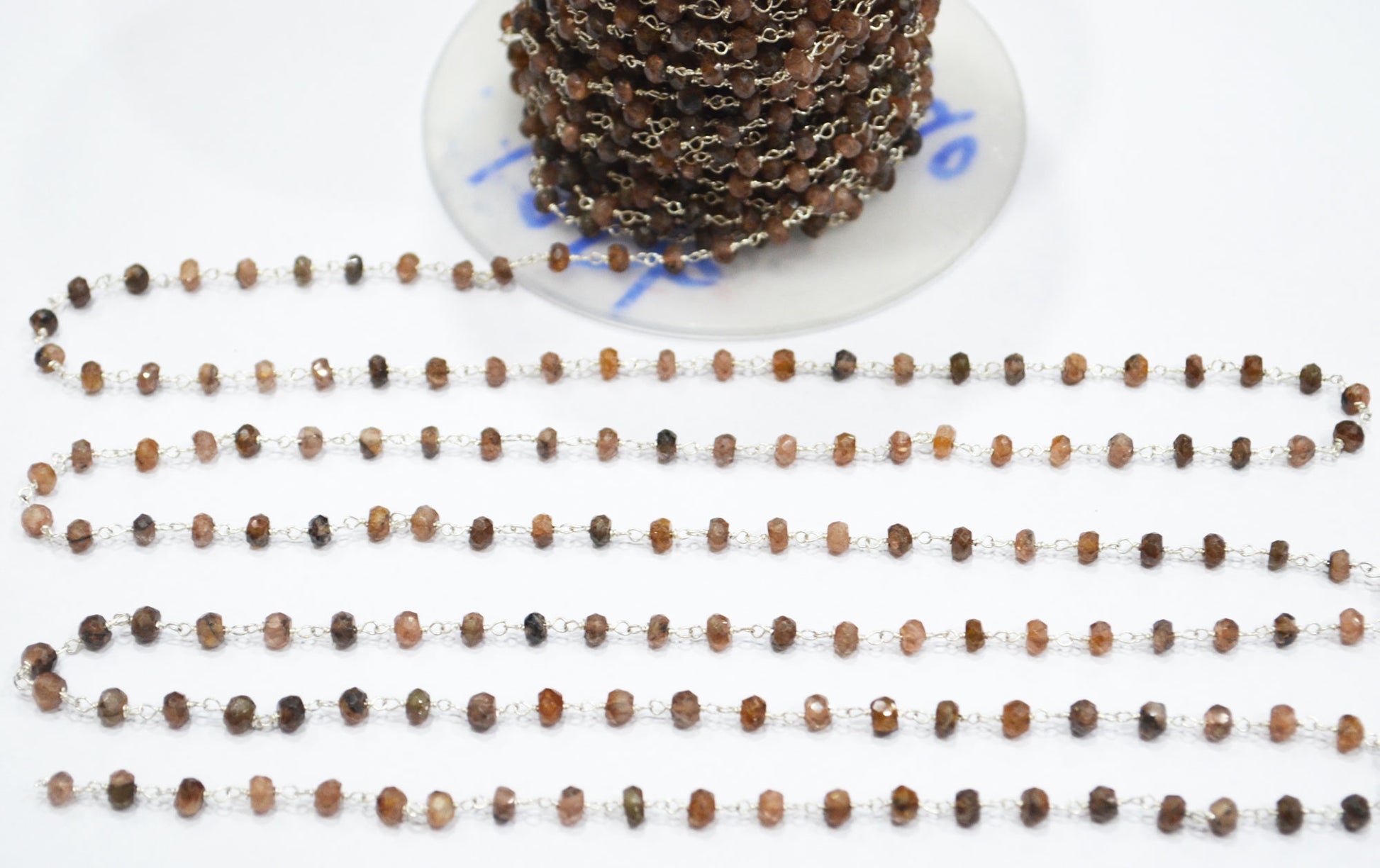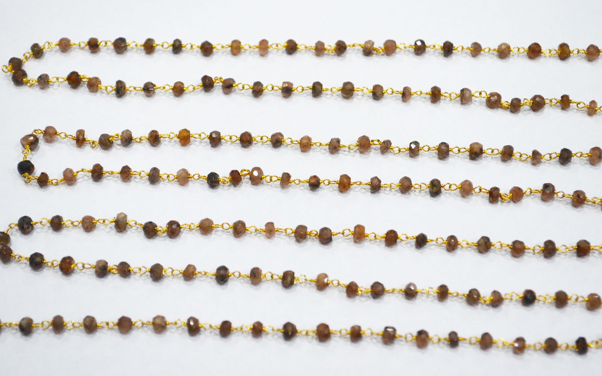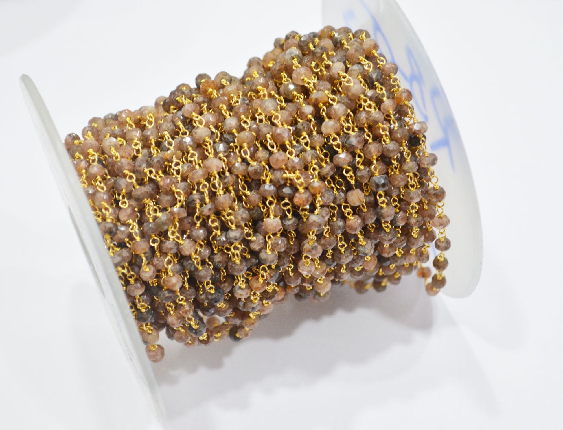 Natural Andusalite Faceted Rondelle Shape Rosary Beaded Chain , Natural Andusalite Wire Wrapped Chain , Sold By Foot , 3.50 - 4 mm , RB-6306