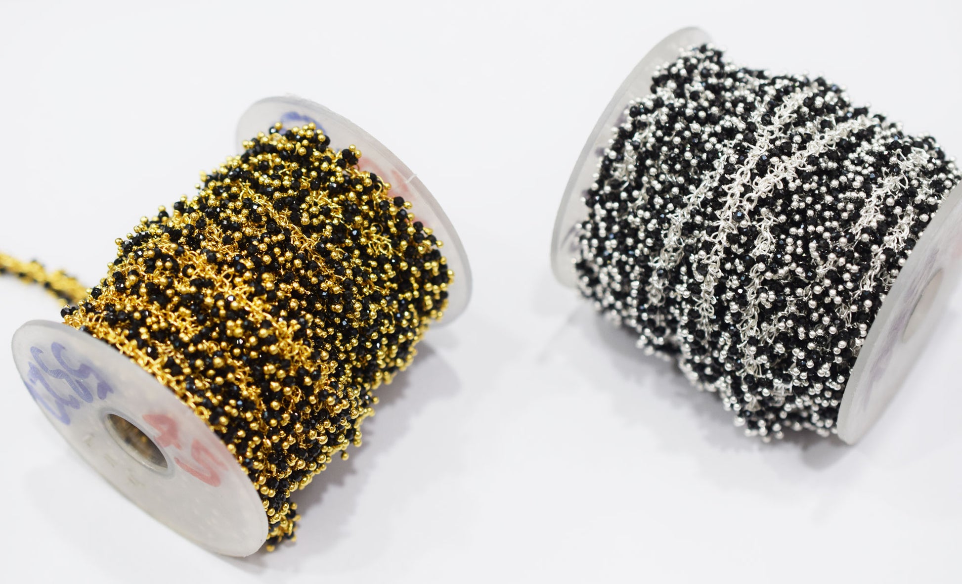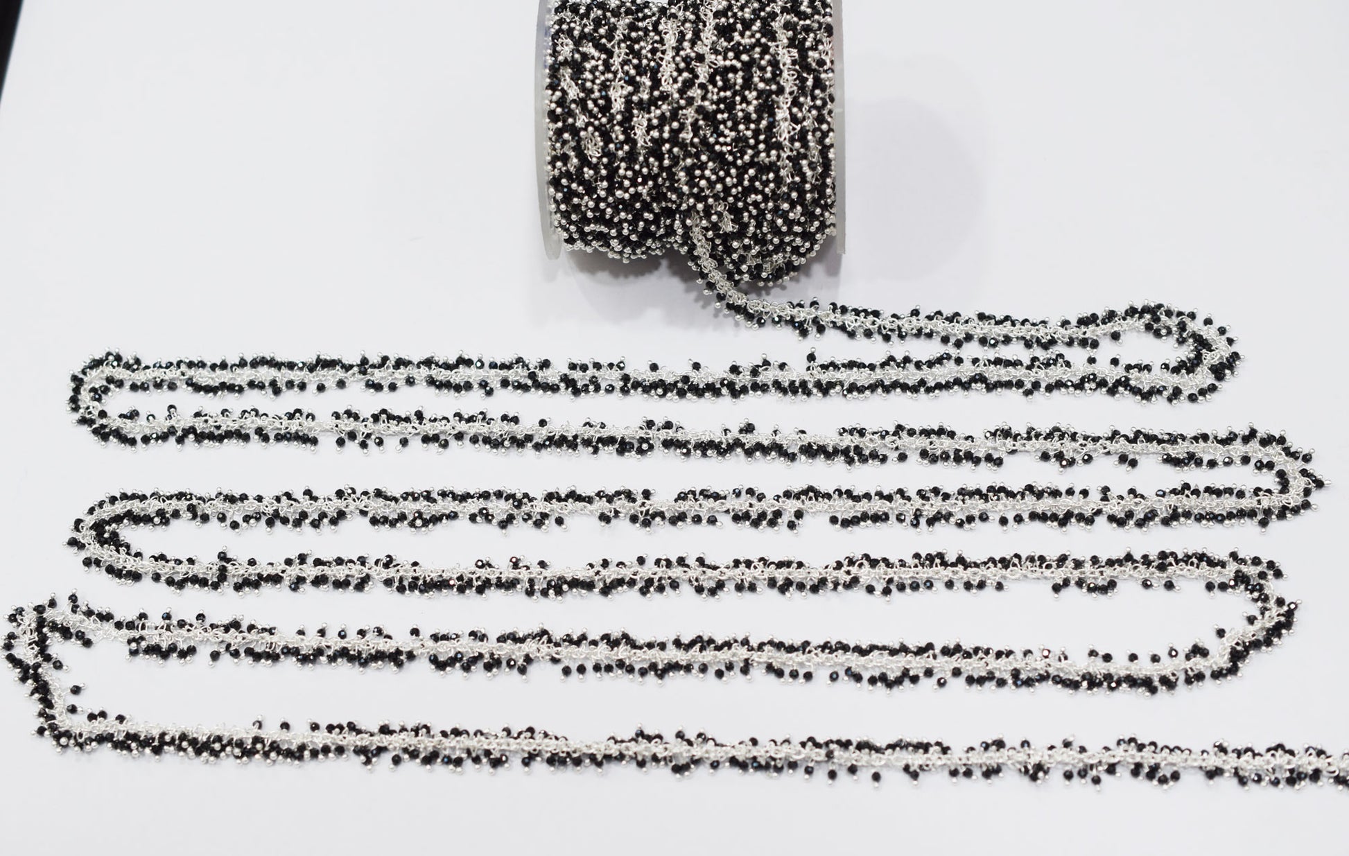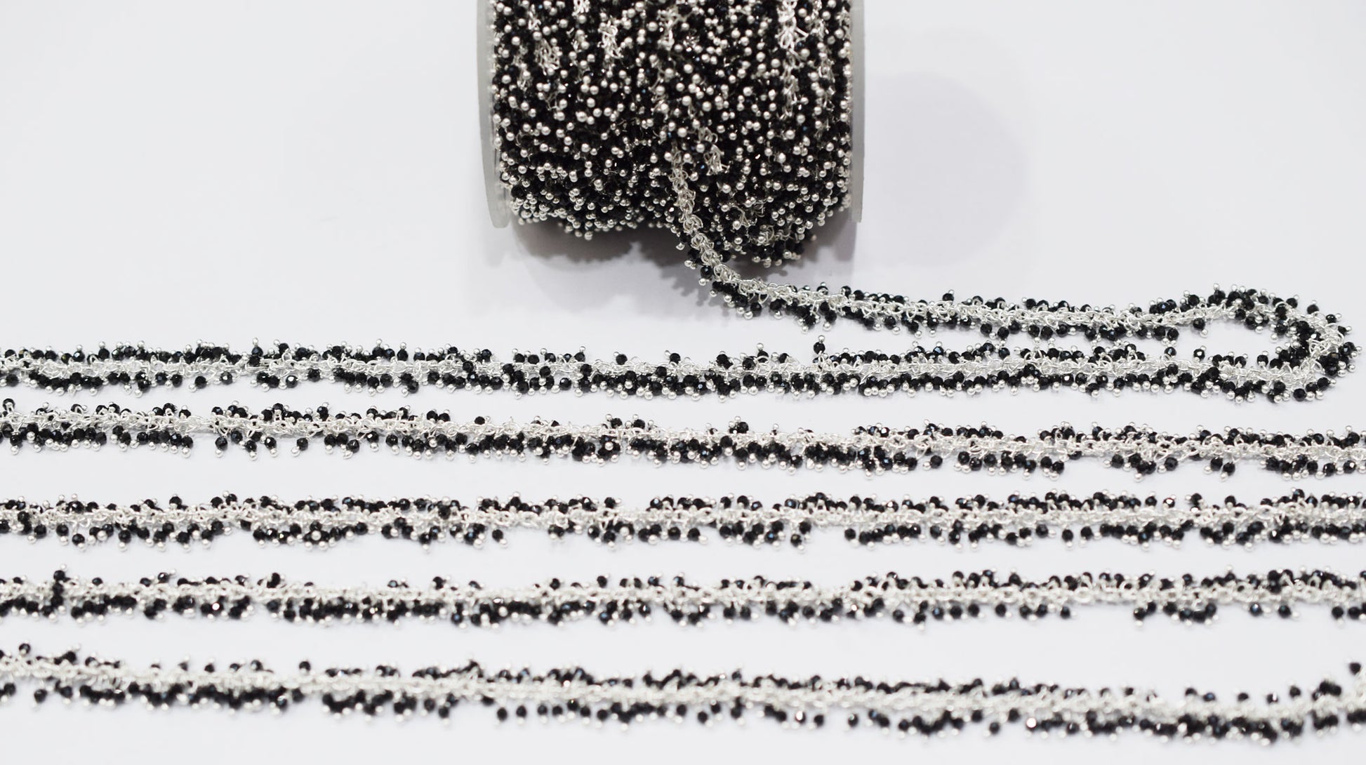 Natural Black Spinel Faceted Round Shape Dangling Chain , Black Spinel Grape Chain , 3 mm , RB-6685Β