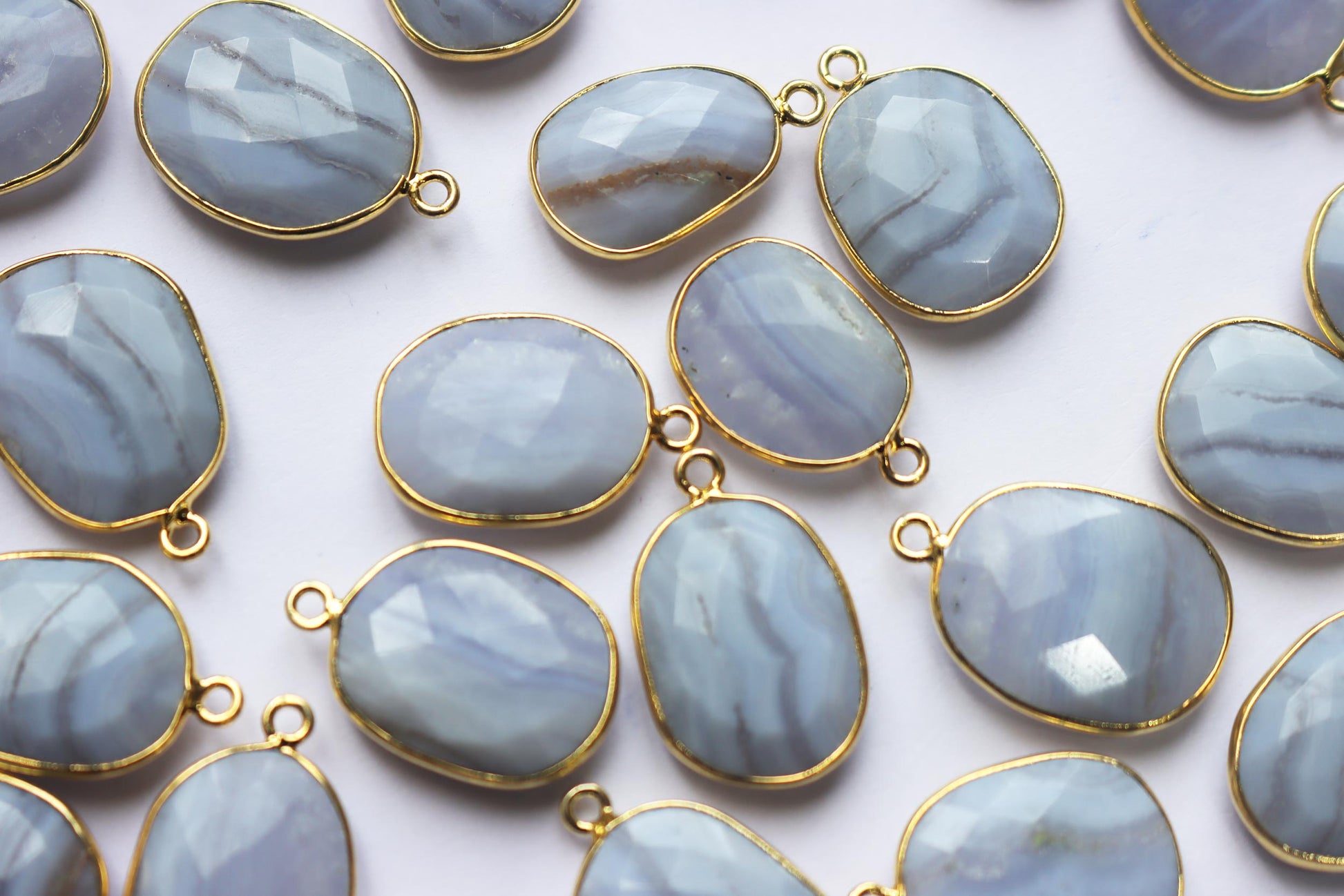 Natural Blue Lace Agate Faceted Slice Shape Connector , Natural Blue Lace Agate Free Form Shape Single Bail Connector , Sold By Piece , 18 - 21 mm , RB-7279