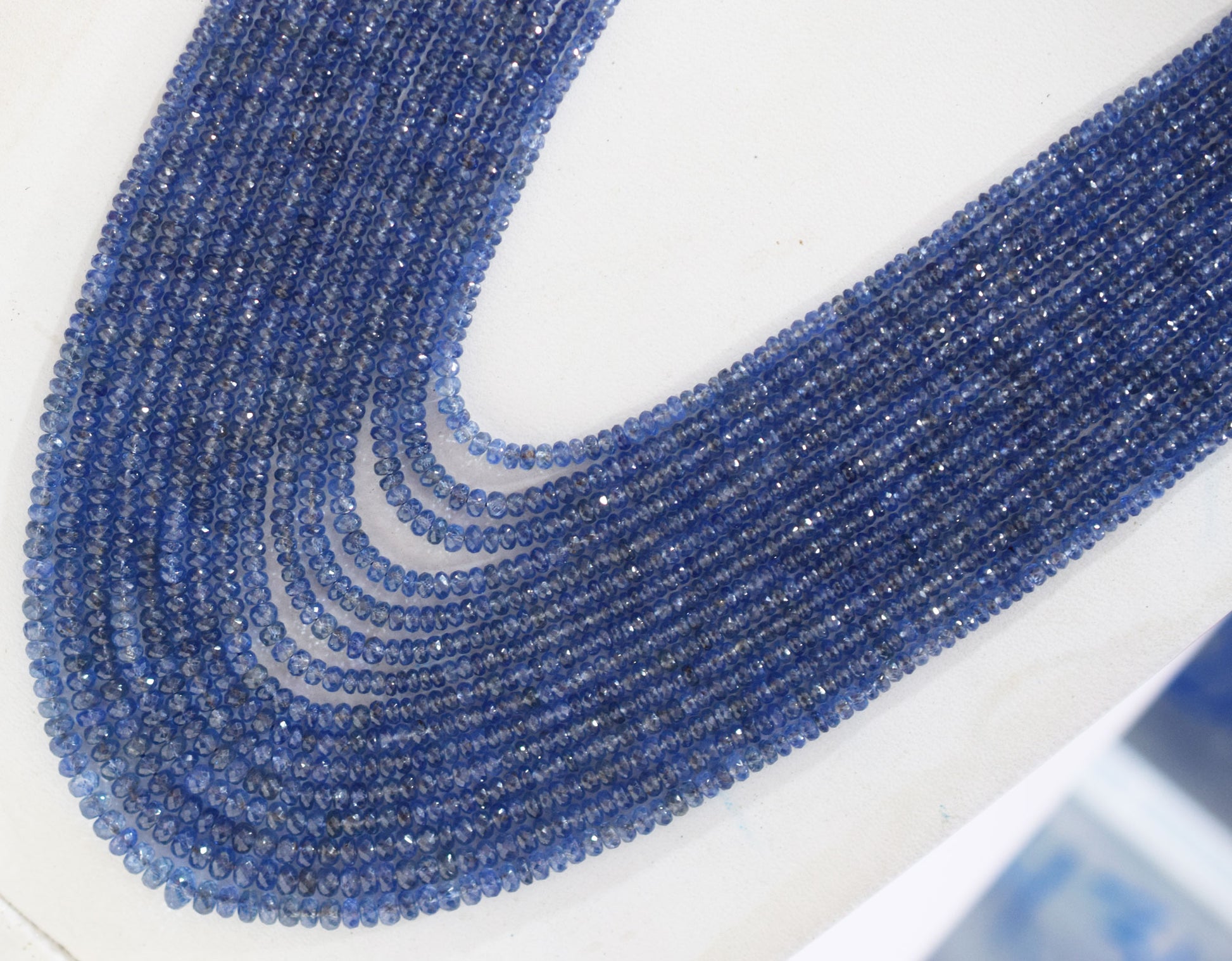 Natural Blue Sapphire Faceted Rondelle Shape Necklace , Blue Sapphire 15 Line Necklace 18 - 25 Inches Long With Adjustable Tussle , 2.75 - 6.50 mm , N-02