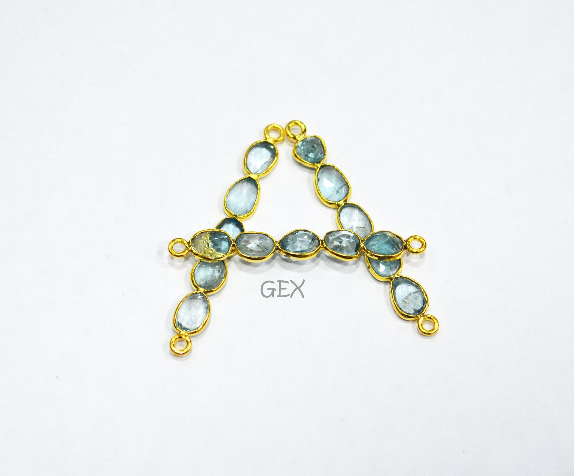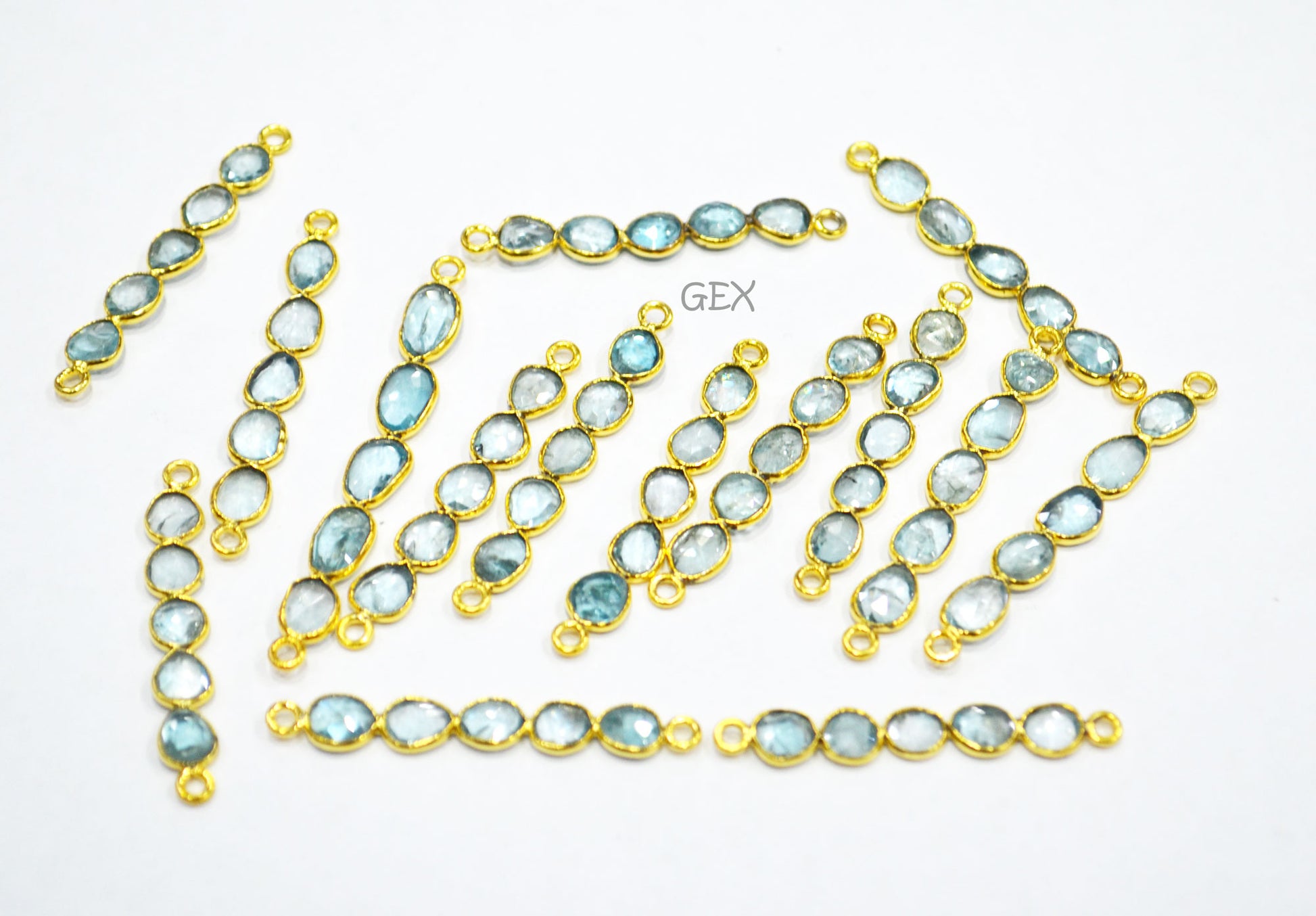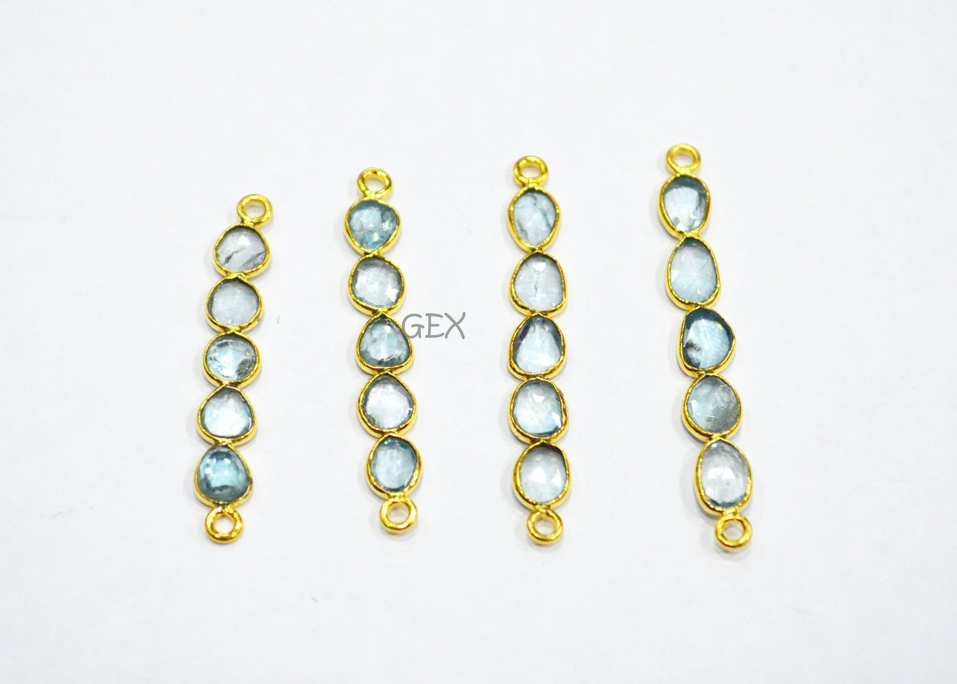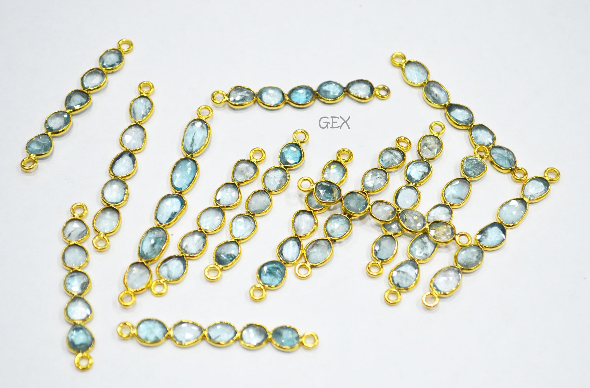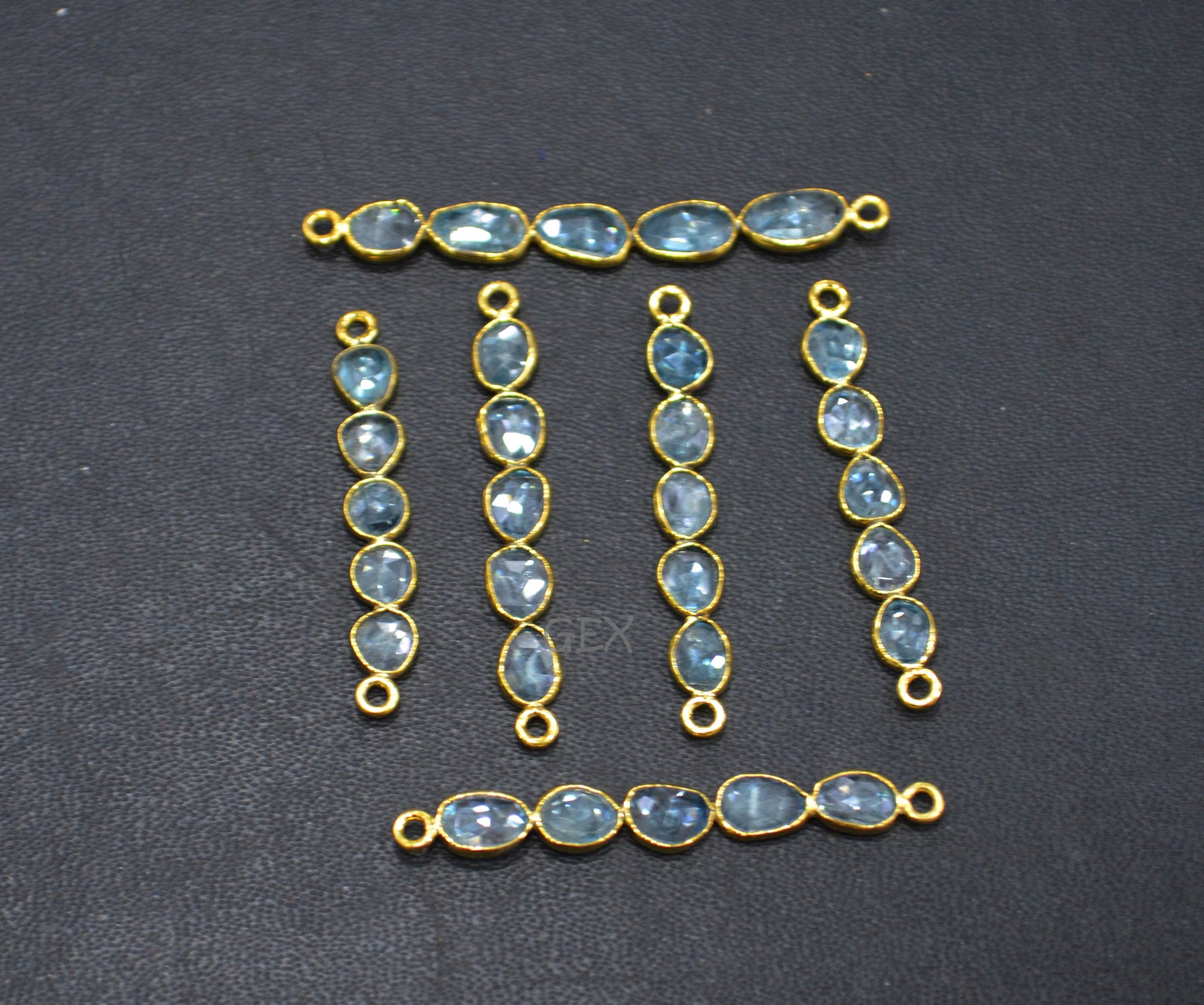 Natural Blue Zircon Faceted Bar Connector , Natural Blue Zircon Double Bail Bezel Charm Connector , Sold By Piece , 33 - 45 mm , R-006