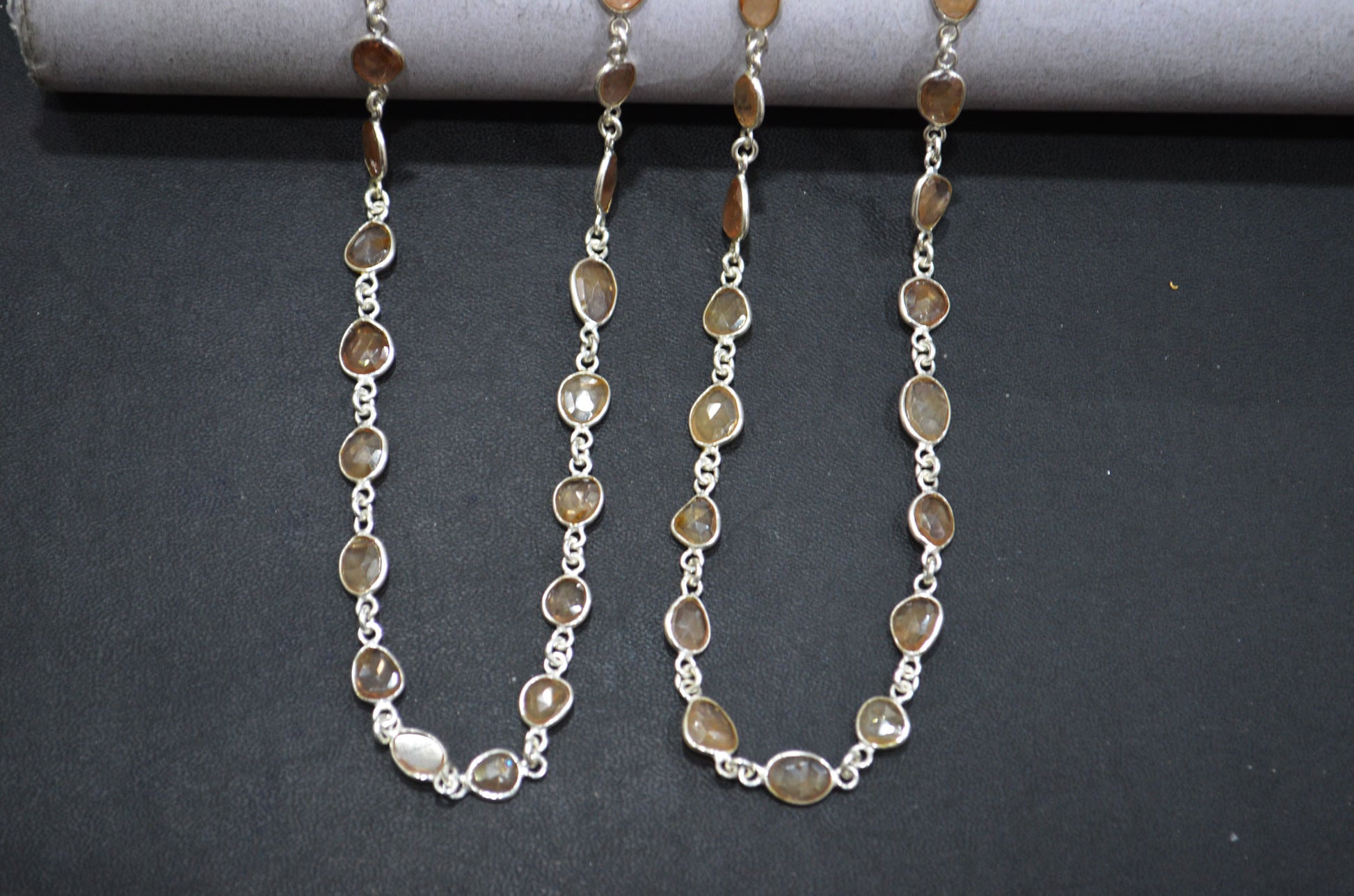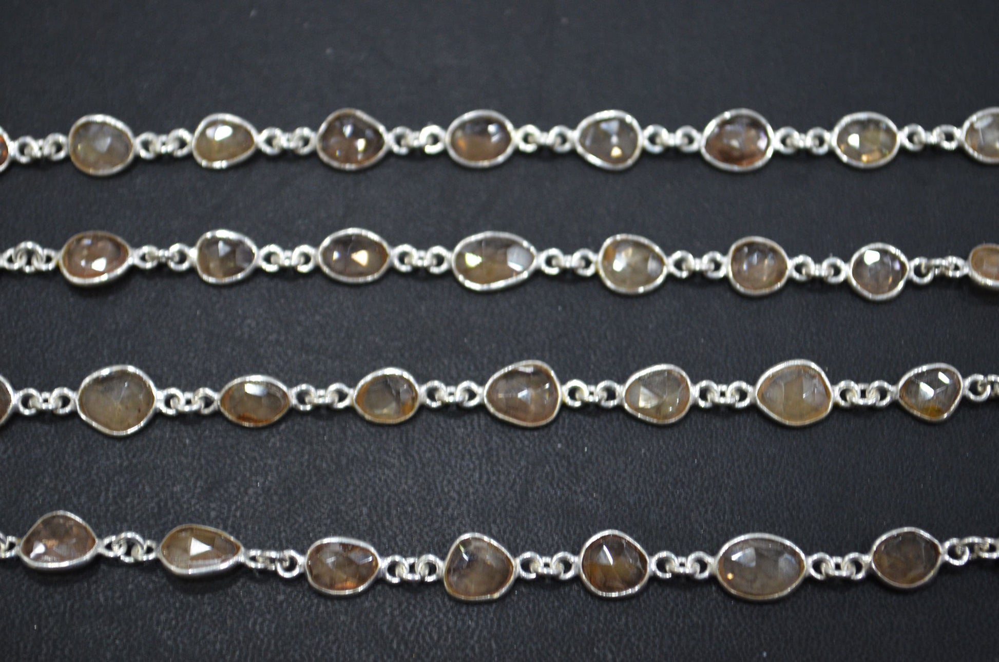 Natural Champagne Zircon Faceted Free Form Shape Connector Chain , Champagne Zircon Slice Shape Bezel Link Chain , 5 - 7 mm , RB-5911