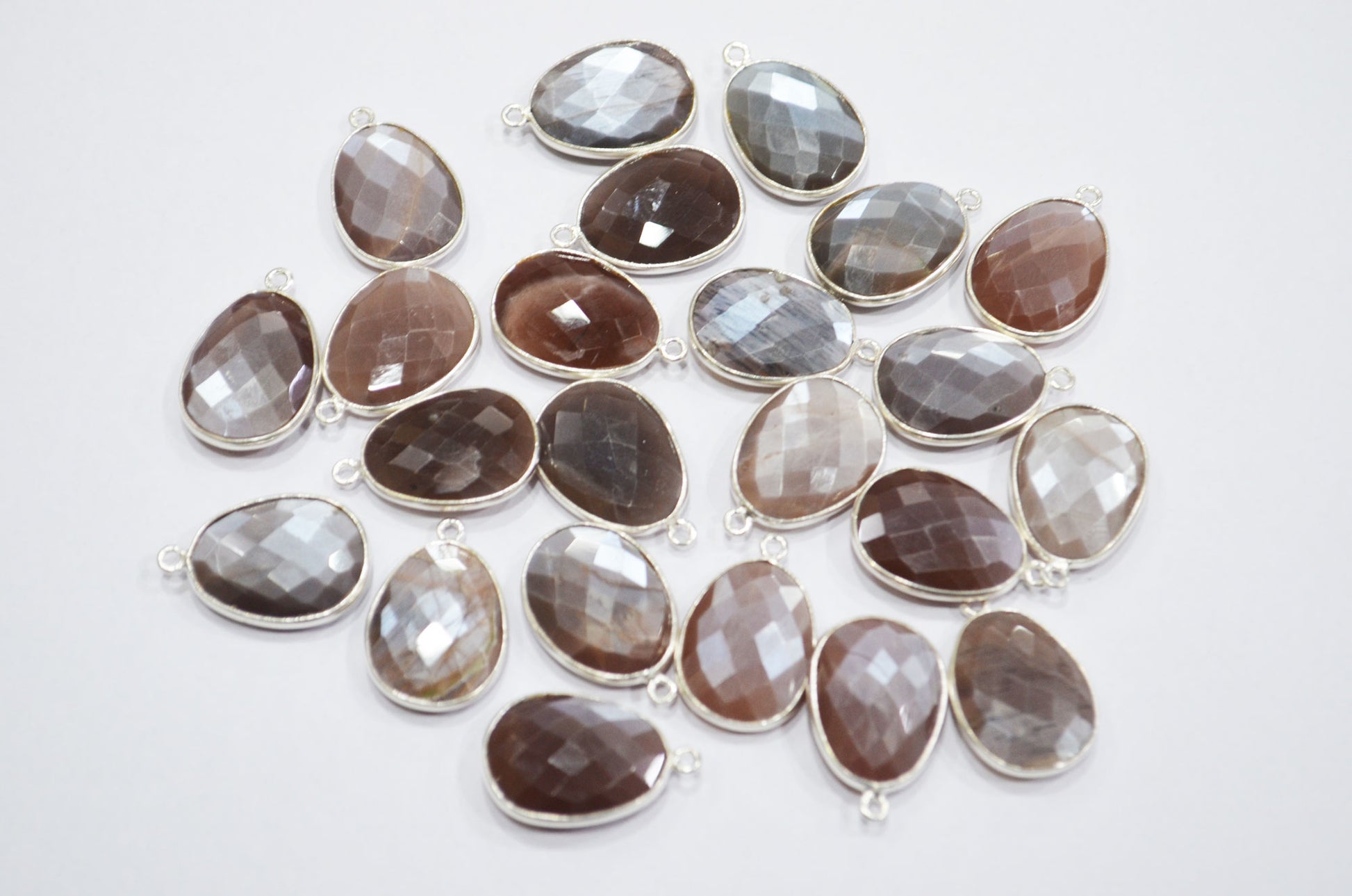 Natural Chocolate Moonstone Sterling Silver Egg Shape Connector , Sold By Piece , 15x20 mm , RB-6057