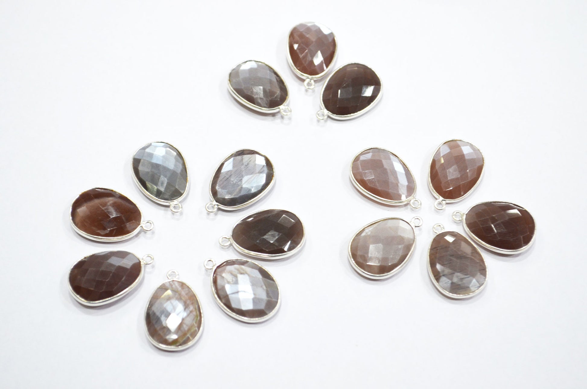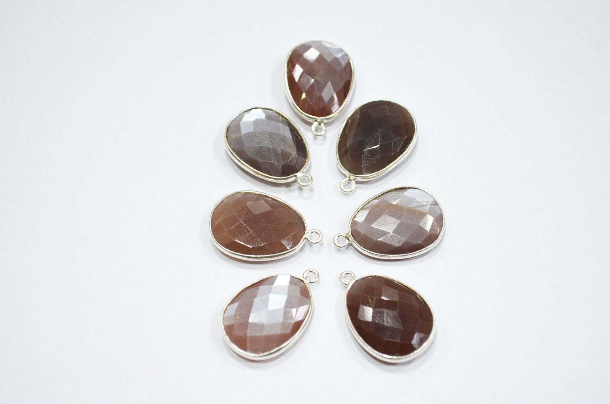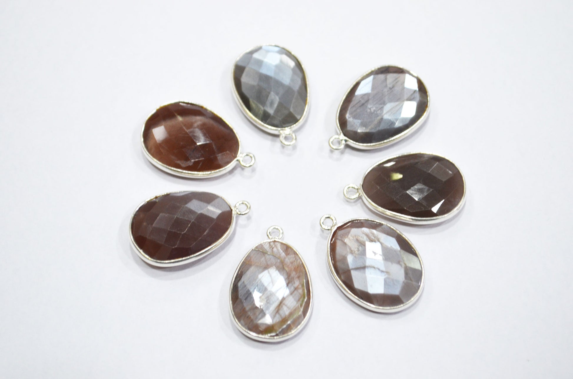 Natural Chocolate Moonstone Sterling Silver Egg Shape Connector , Natural Chocolate Moonstone Single Bail Connector , Sold By Piece , 15x20 mm , RB-6057