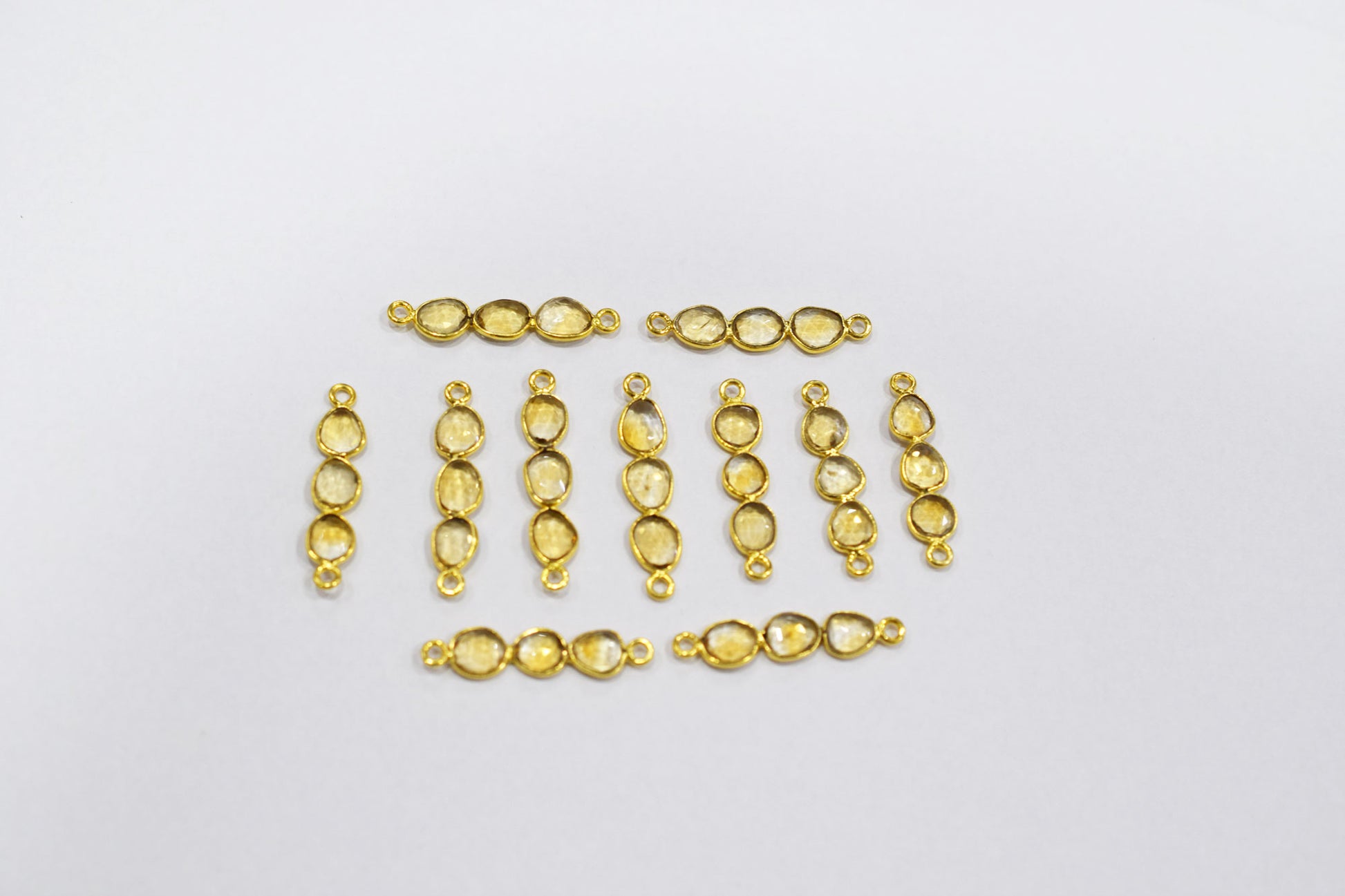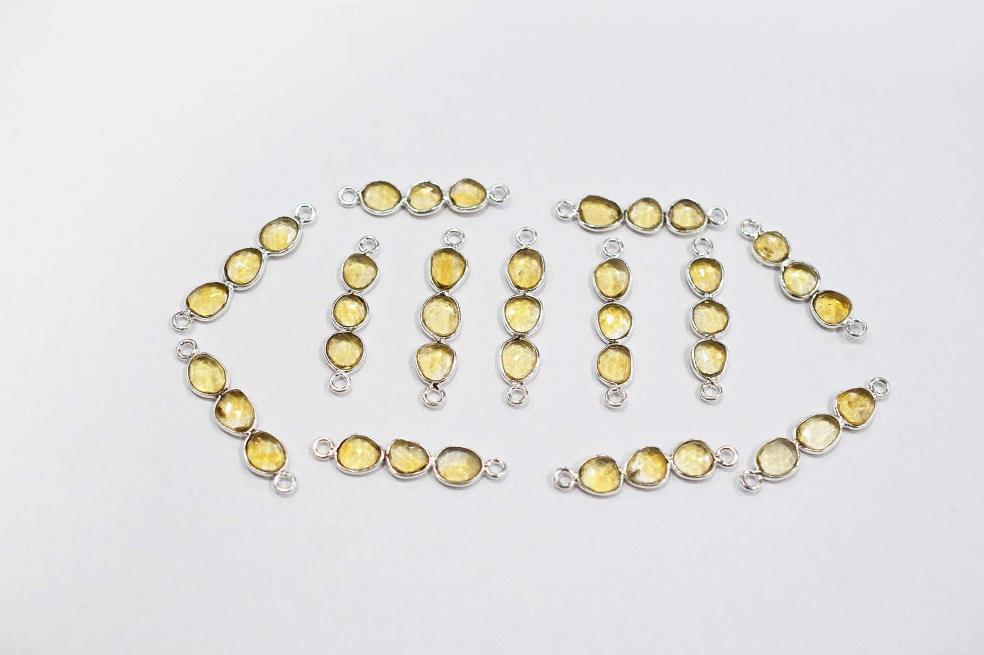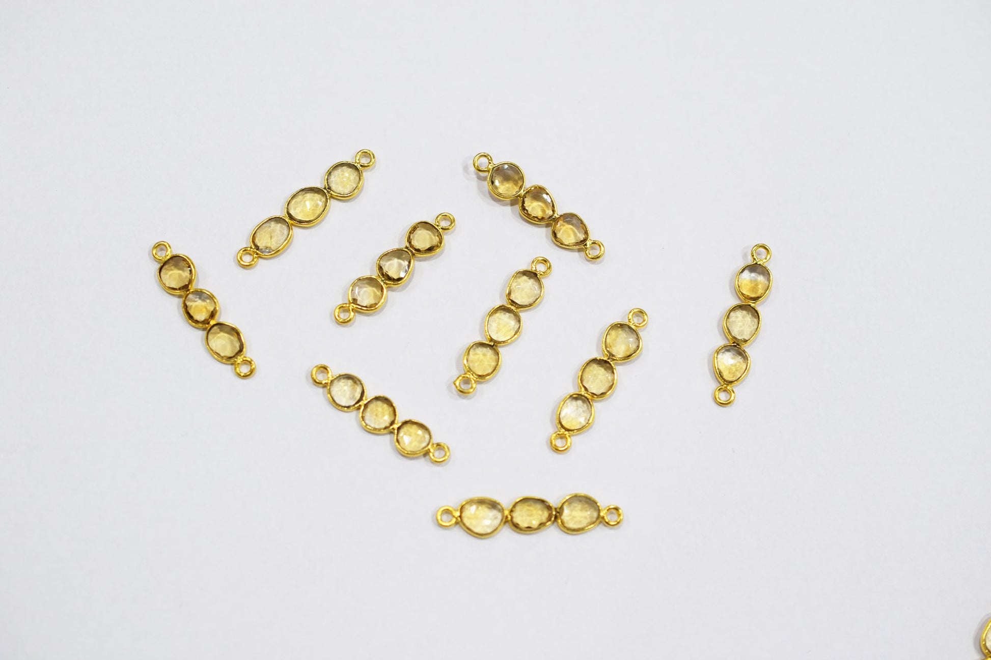 Natural Citrine Faceted 3 Stone In 1 Piece Bar Connector , Natural Citrine Double Bail Bezel Charm Connector , Sold By Piece , 25 - 30 mm , 7301