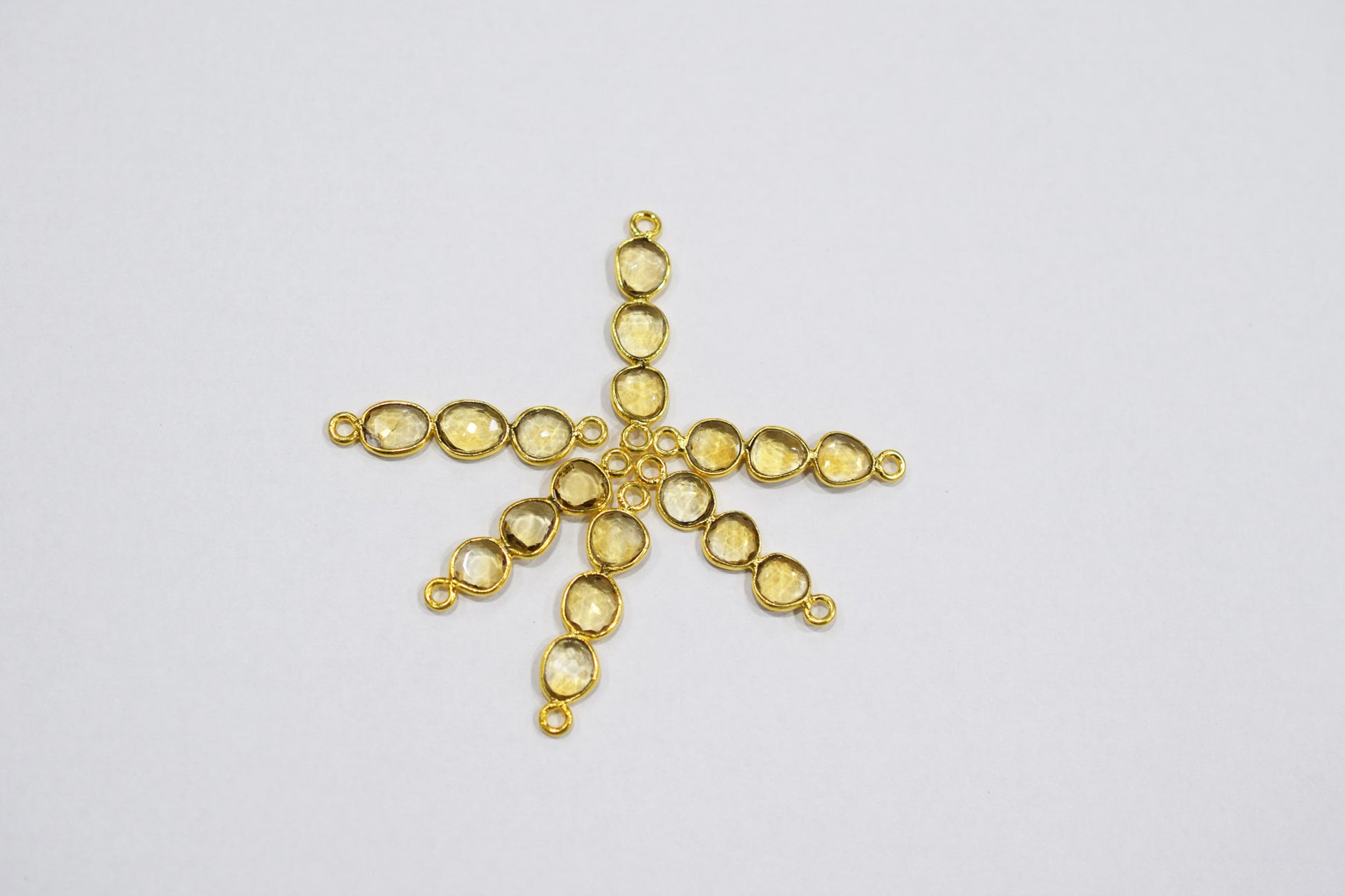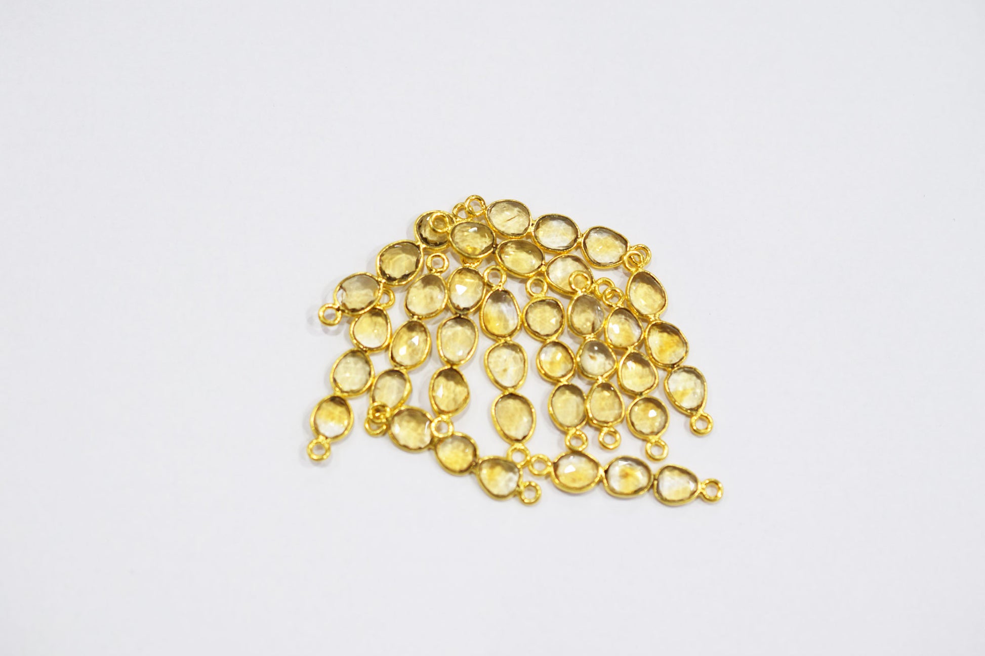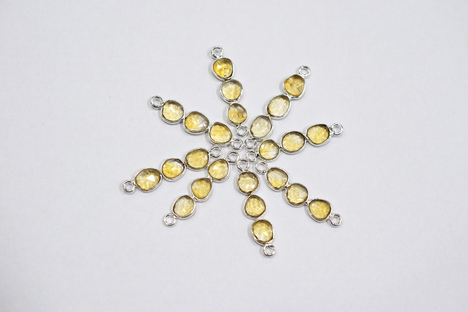 Natural Citrine Faceted 3 Stone In 1 Piece Bar Connector , Natural Citrine Double Bail Bezel Charm Connector , Sold By Piece , 25 - 30 mm , 7301