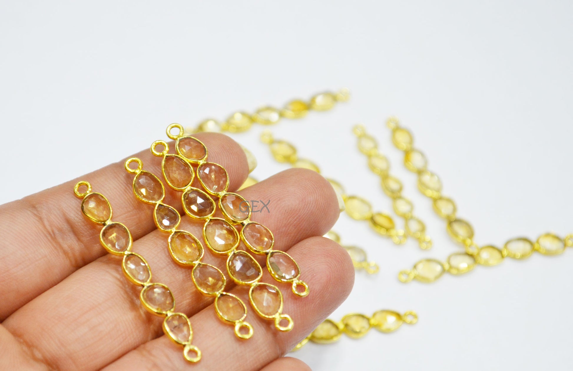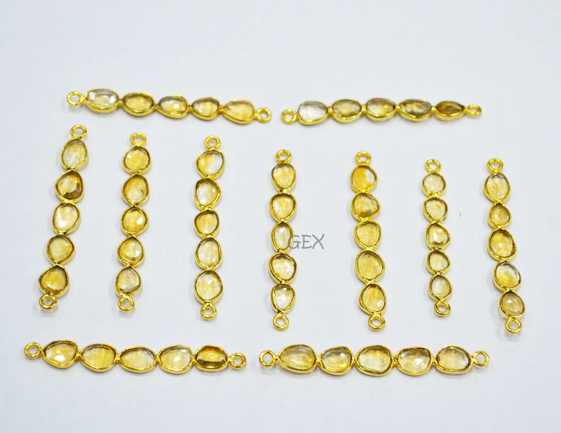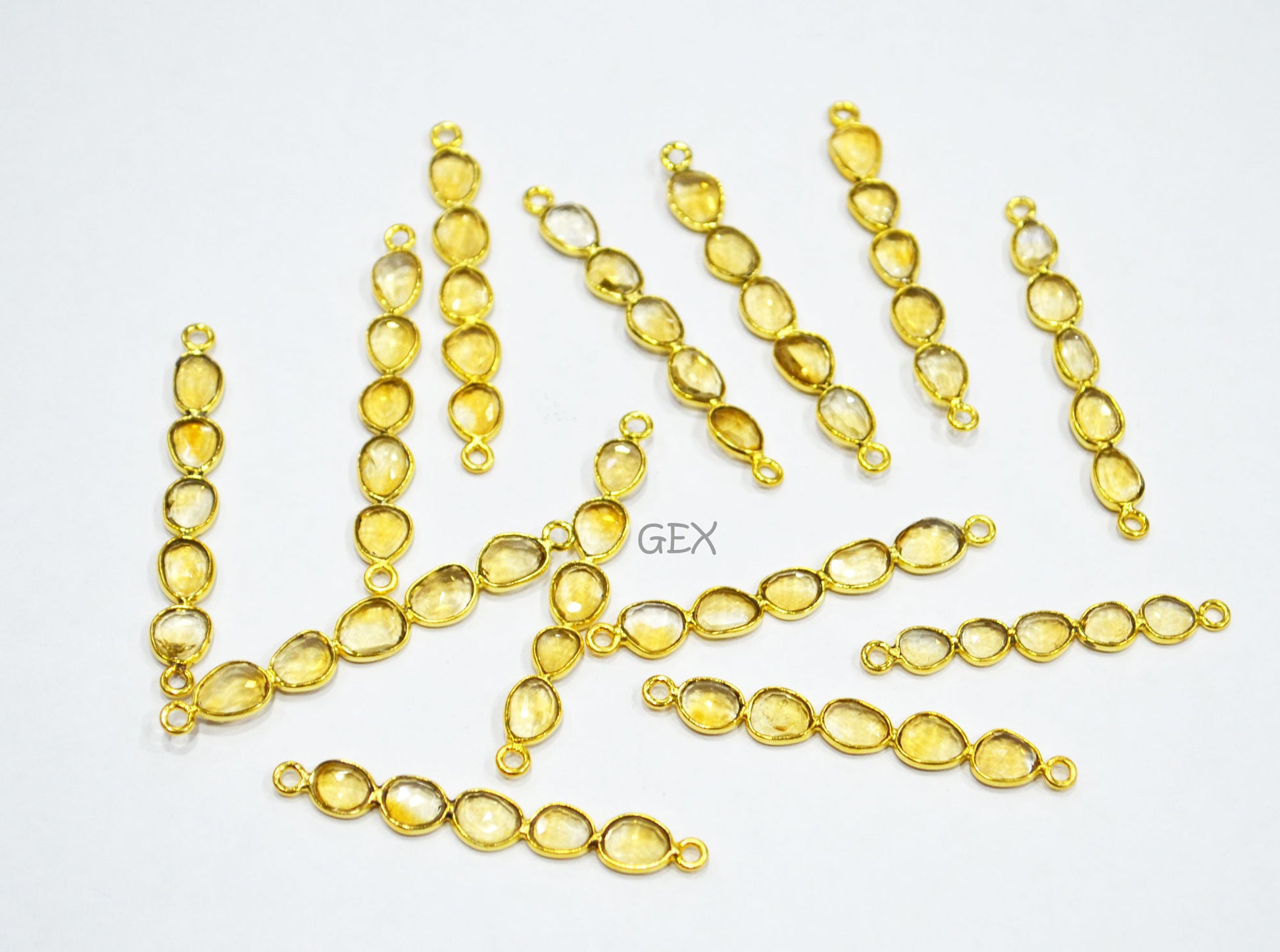 Natural Citrine Faceted Bar Connector , Natural Citrine Double Bail Bezel Charm Connector , Sold By Piece , 39 - 47 mm , R-010