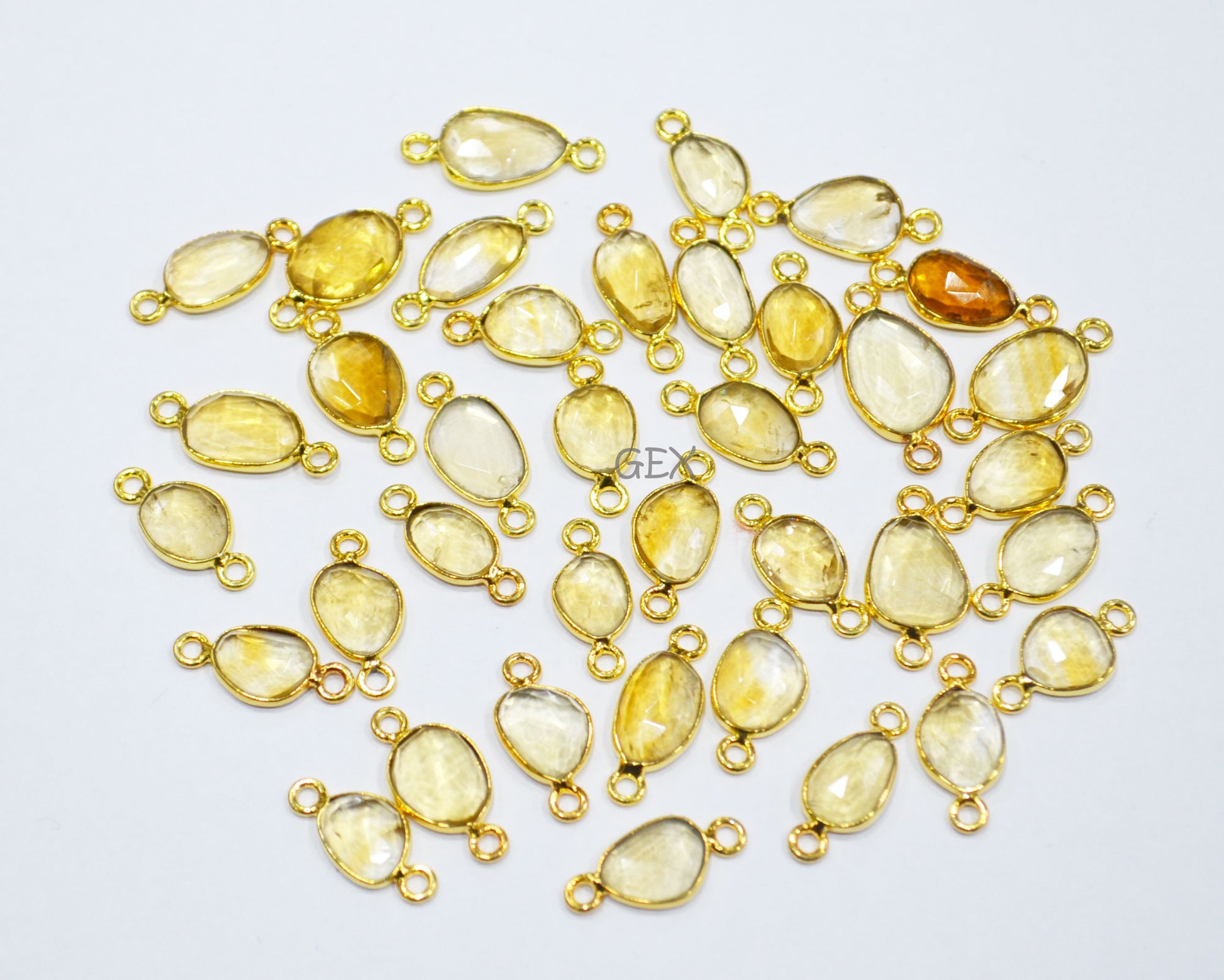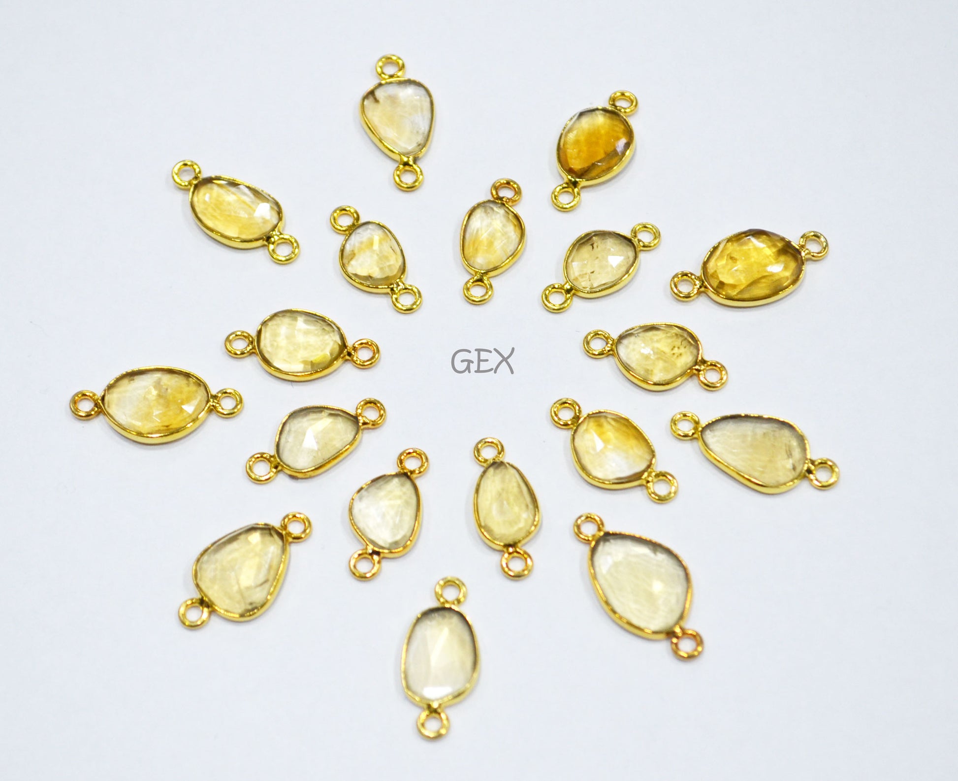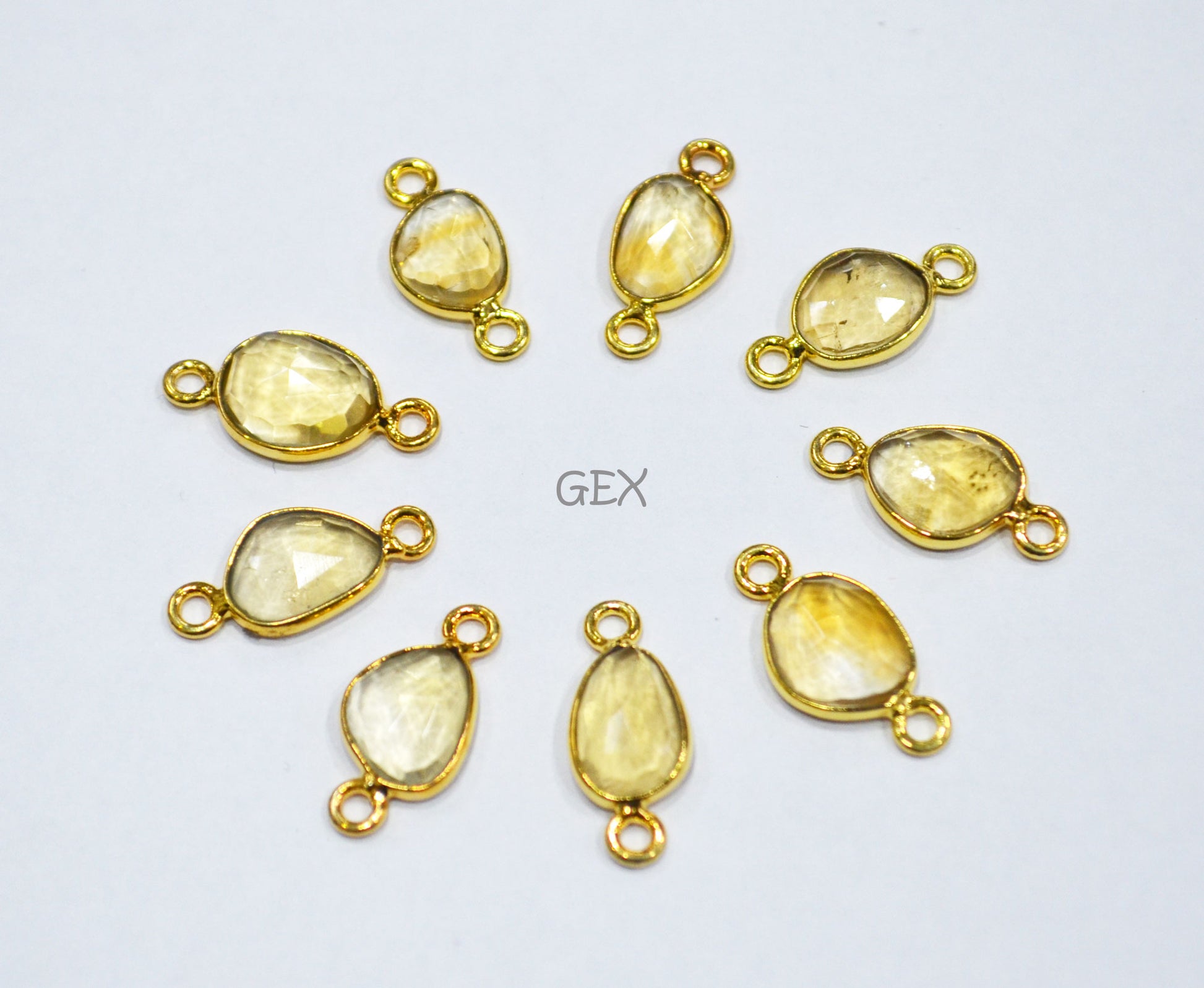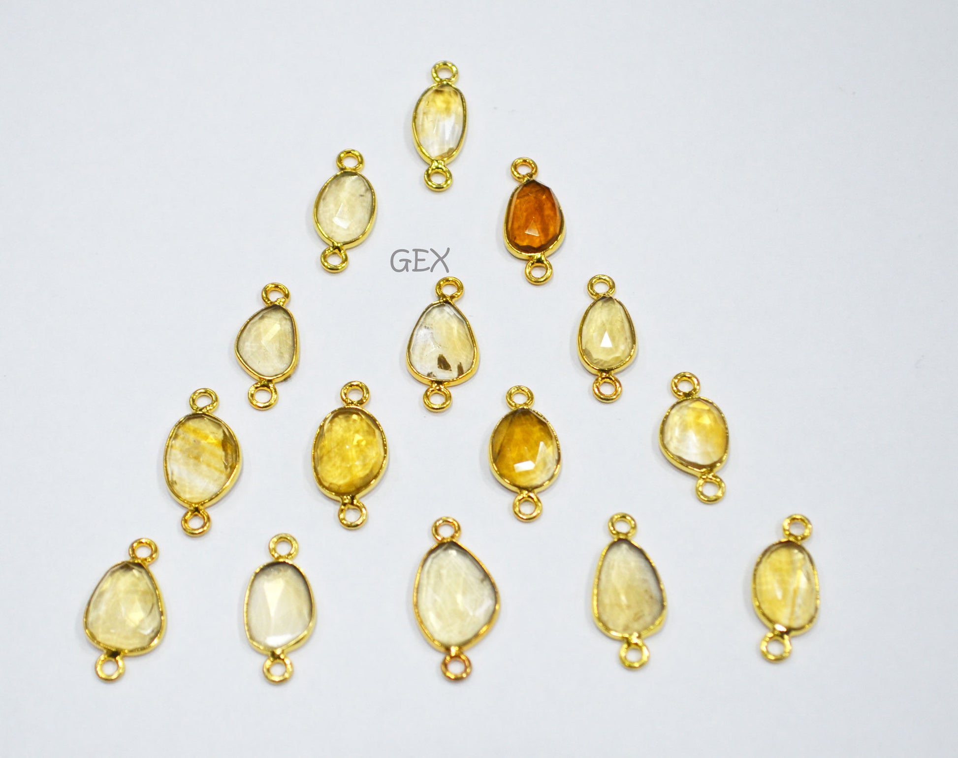 Natural Citrine Faceted Free Form Shape Connector , Natural Citrine Slice Shape Double Bail Bezel Connector , Sold By Piece , 7x9 - 10x14 mm , RB-7227