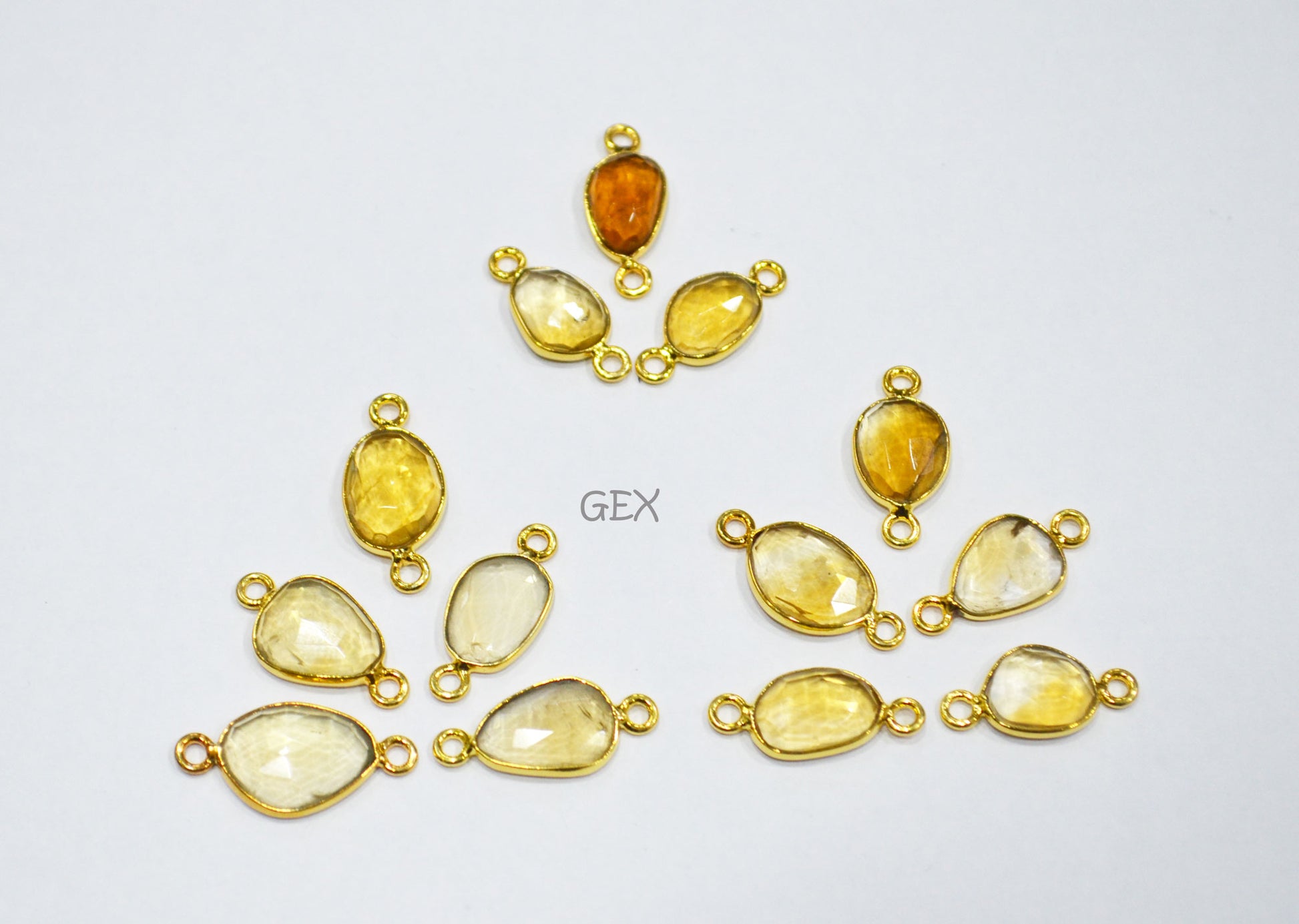 Natural Citrine Faceted Free Form Shape Connector , Sold By Piece , 7x9 - 10x14 mm , RB-7227