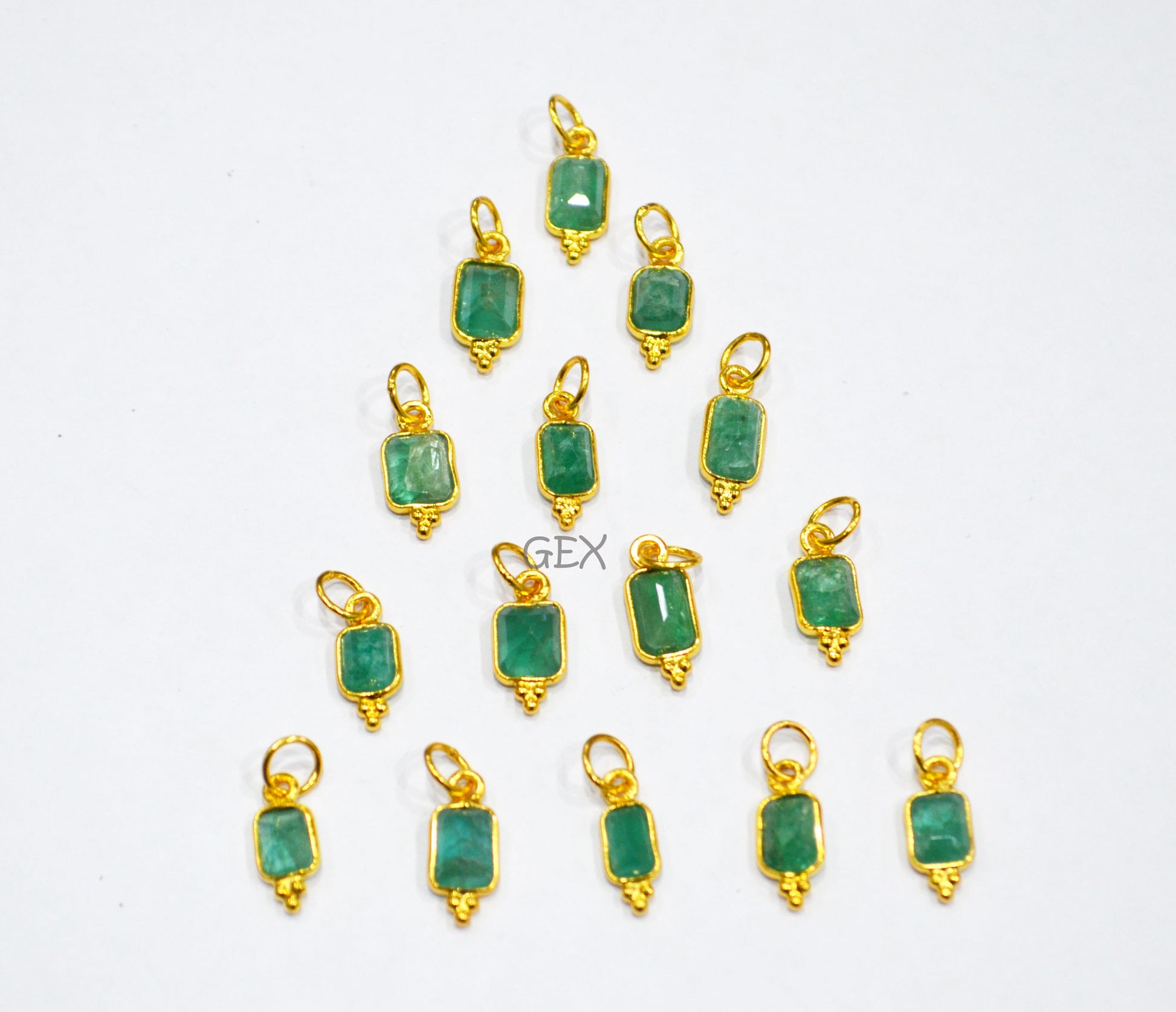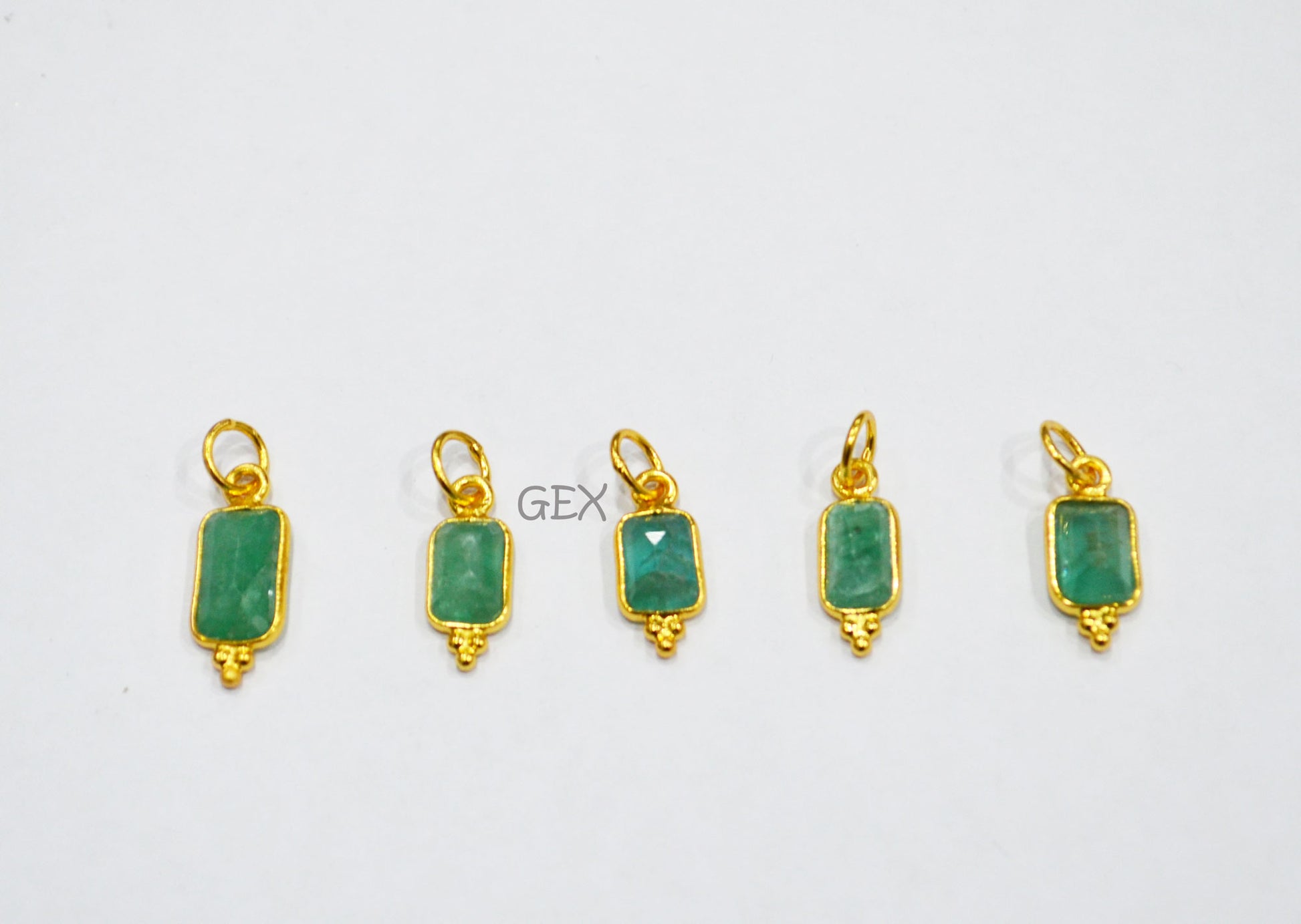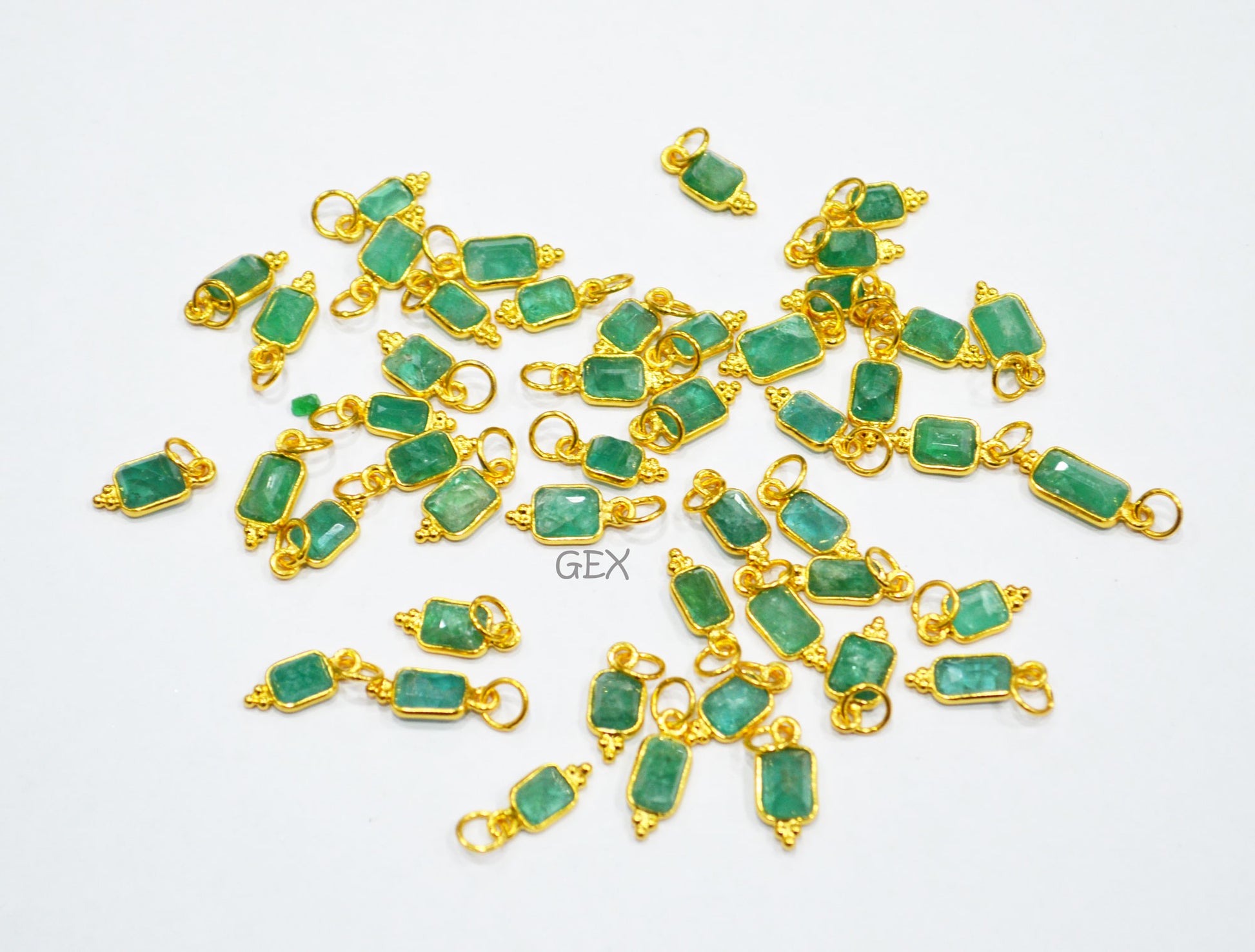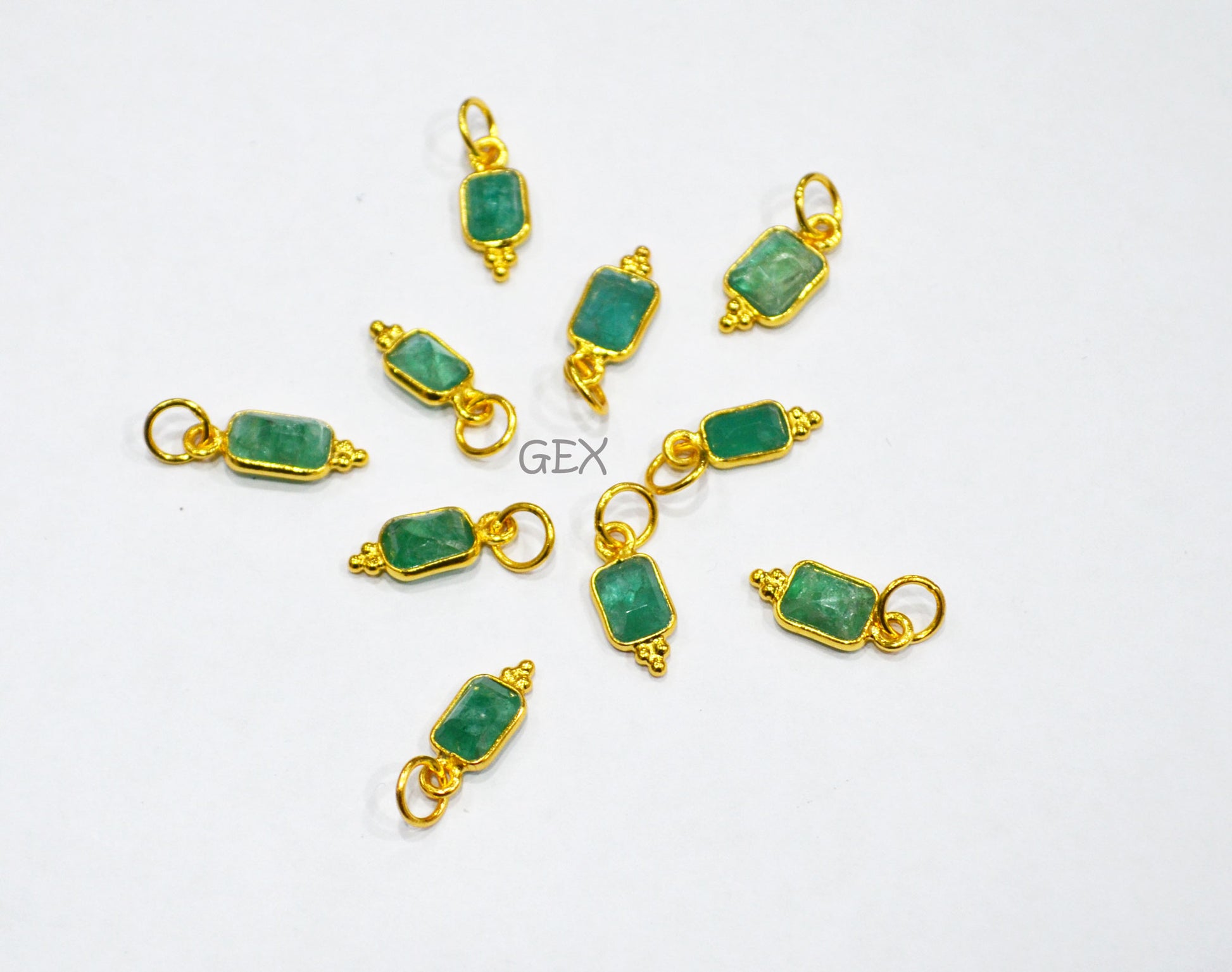 Natural Emerald Cut Baguette Shape Single Bail Connector , Natural Emerald Bezel Pendant , Sold By Piece , 7 - 10 mm , RB-7263