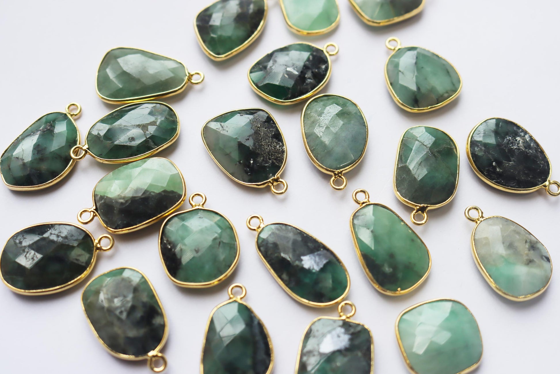 Natural Emerald Faceted Slice Shape Connector , Sold By Piece , 14 - 20 mm , RB-7289