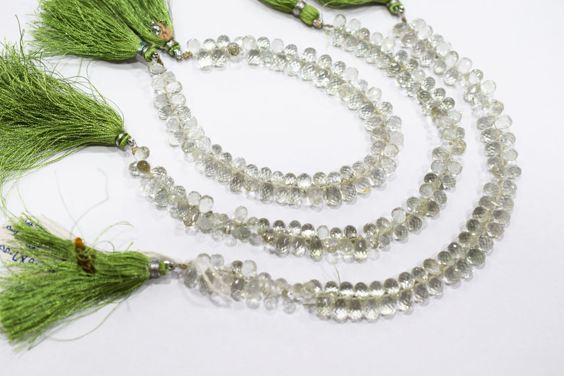 Natural Green Amethyst Faceted Gemstone , Green Amethyst Tear Drops Shape Briolettes , Sold By Strand , 4.50x7 - 4.50x8 mm , 8" , BL- 6706