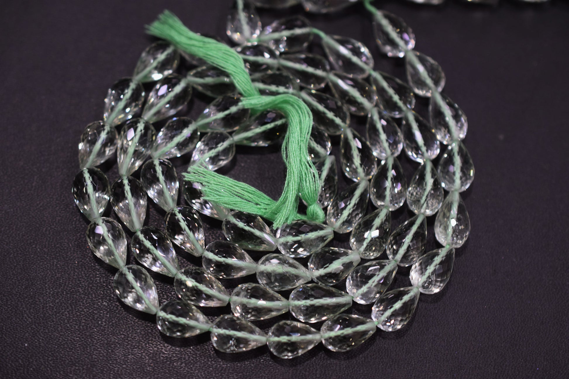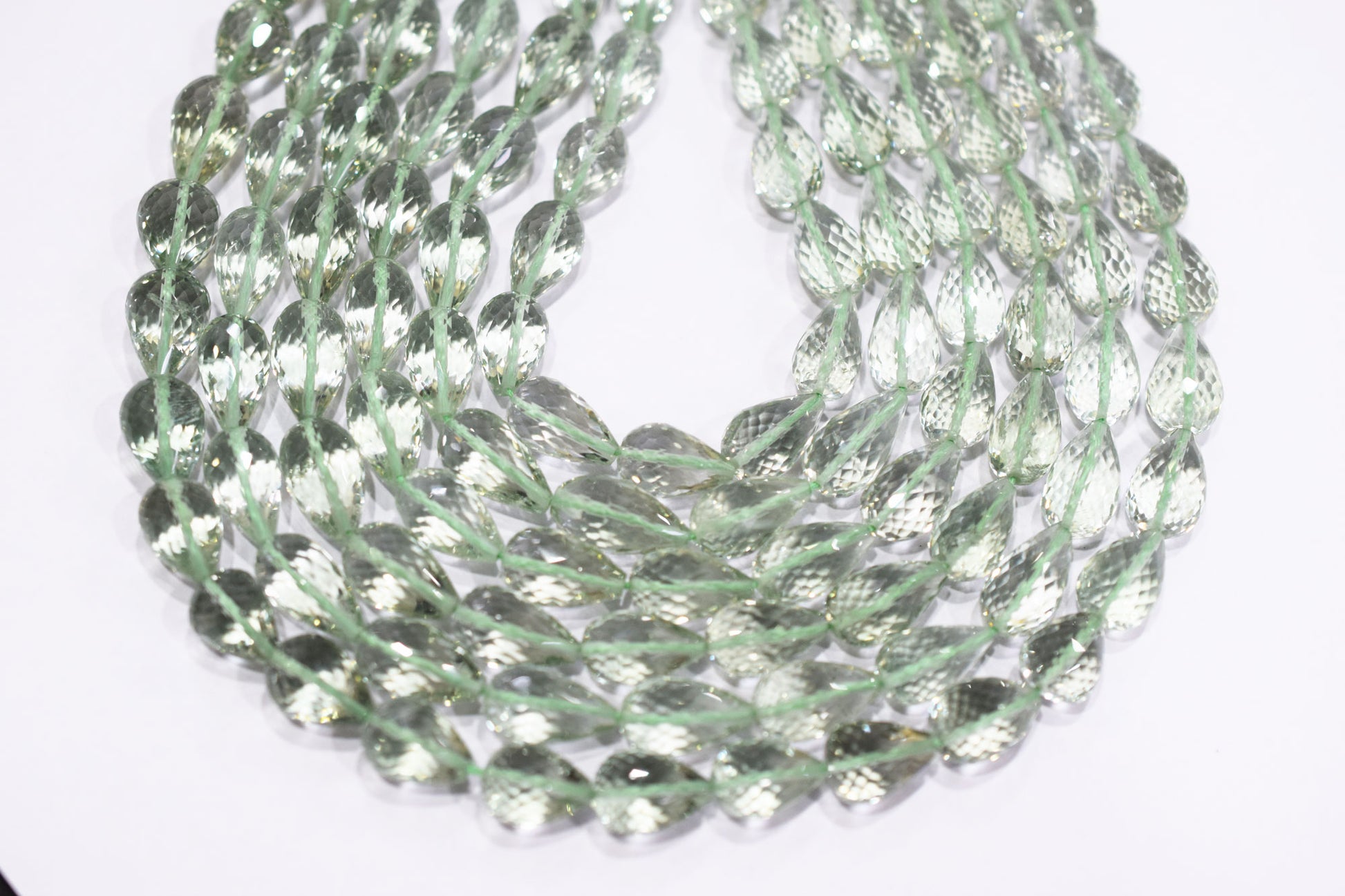 Natural Green Amethyst Straight Drill Tear Drops Shape Beads , Green Amethyst Faceted Beads , Sold By Strand , 8x12 - 8.50x14 mm , 15" , 19853