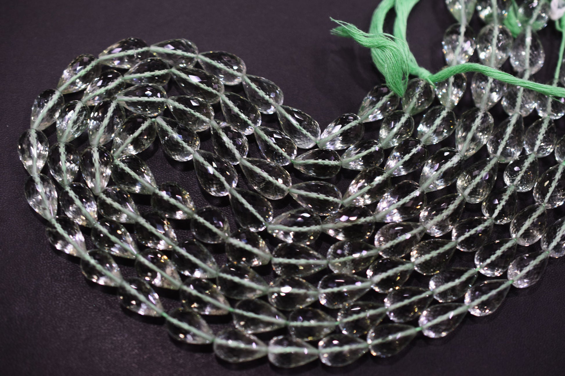 Natural Green Amethyst Straight Drill Tear Drops Shape Beads , Green Amethyst Faceted Beads , Sold By Strand , 9x13.50 - 9.50x17 mm , 15", 19854