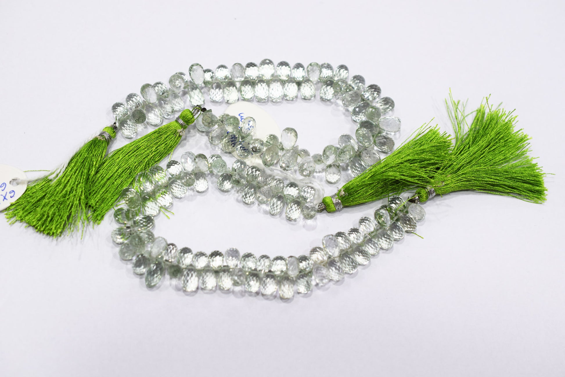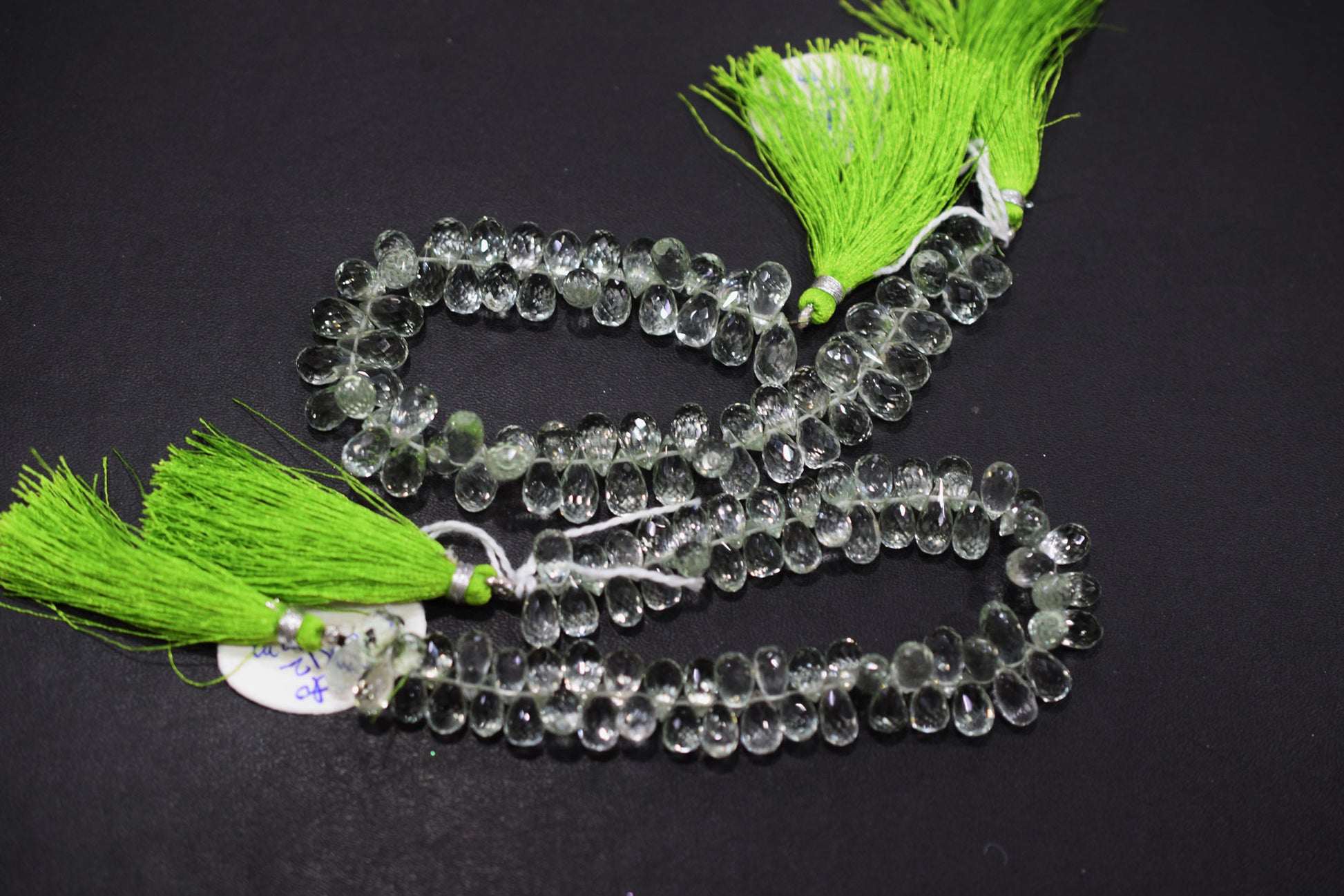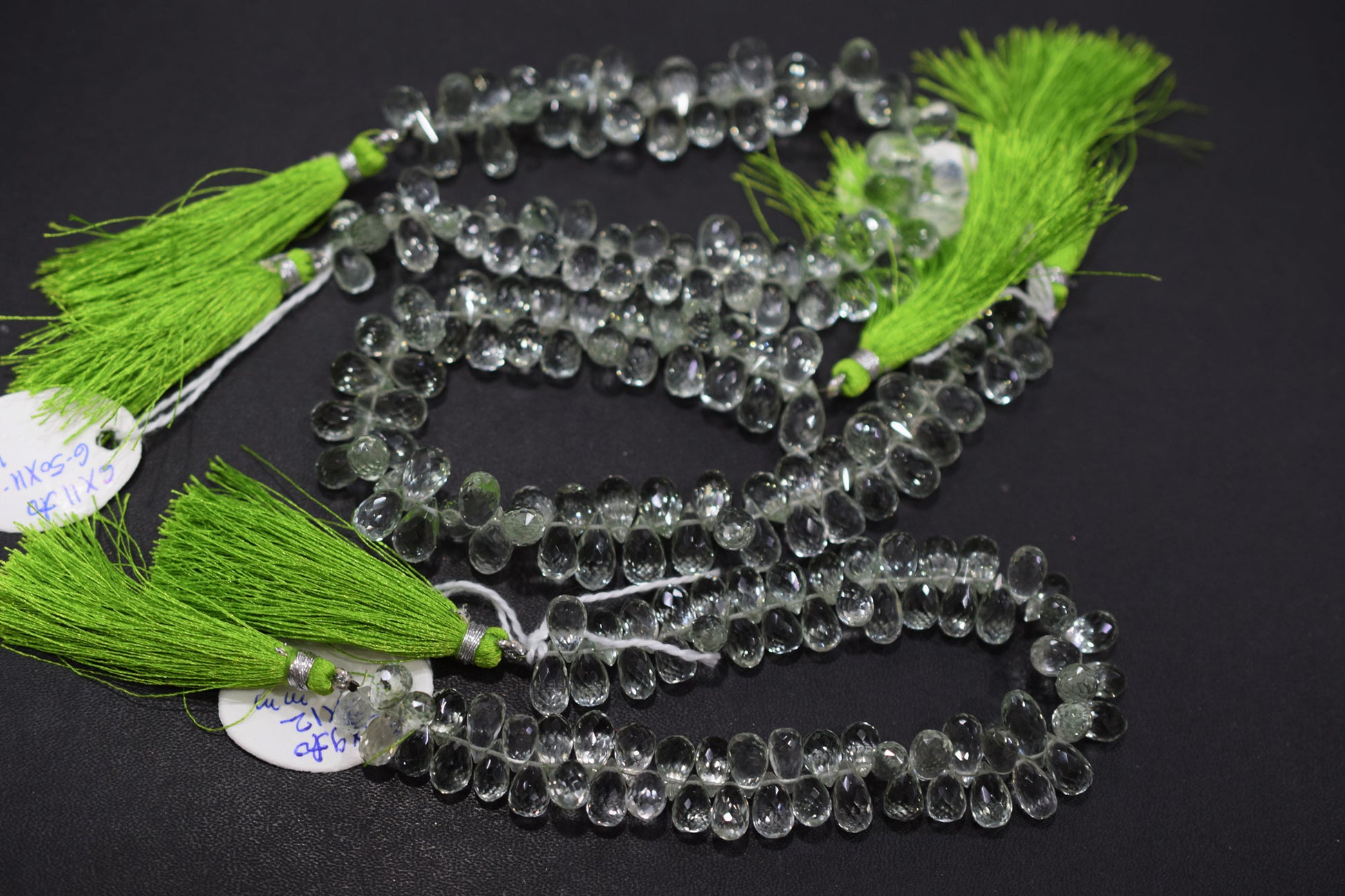Natural Green Amethyst Tear Drops Shape Beads , Green Amethyst Faceted Briolettes , Sold By Strand ,Β 5x10 - 6x11 mm , 8" , 19852
