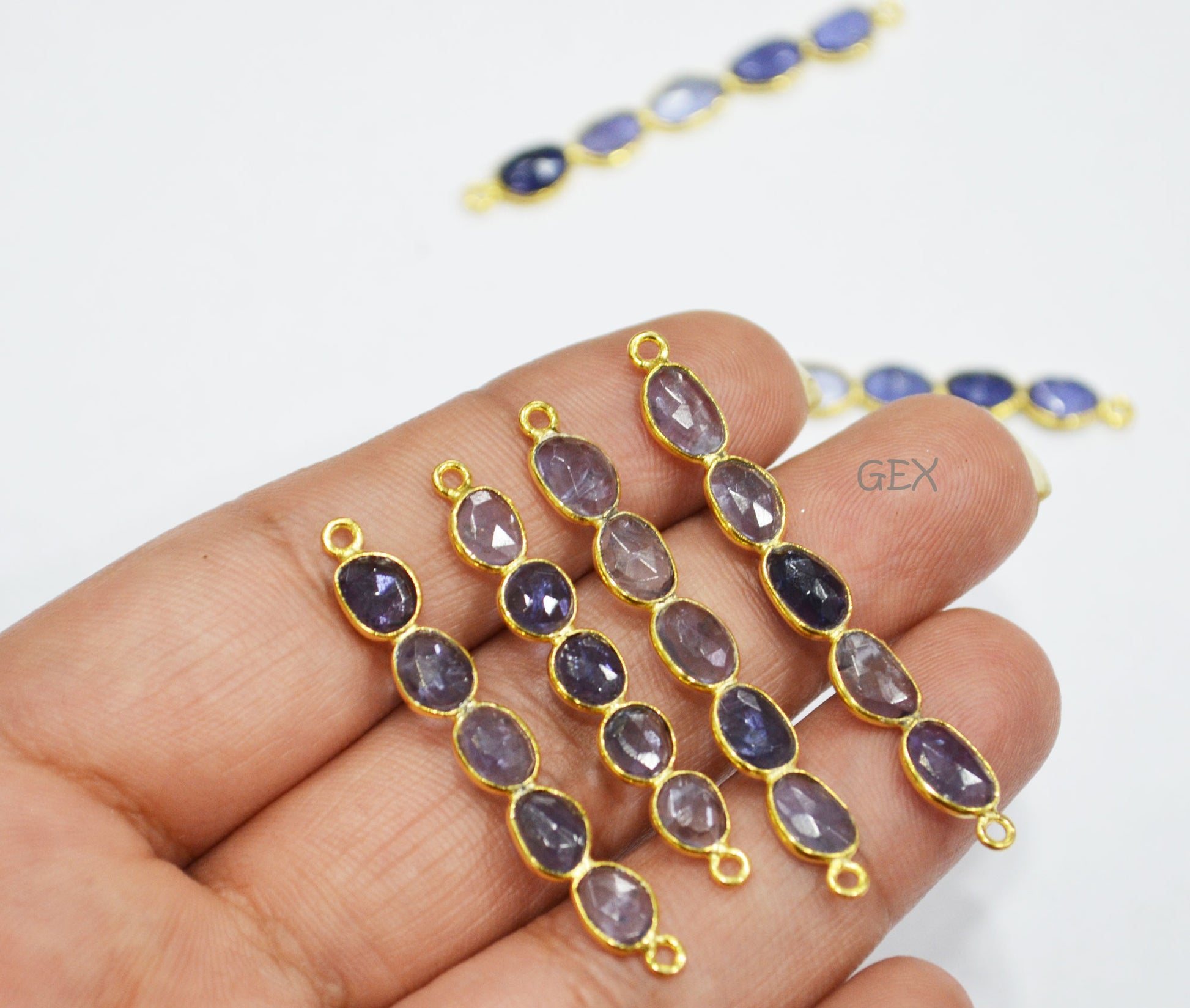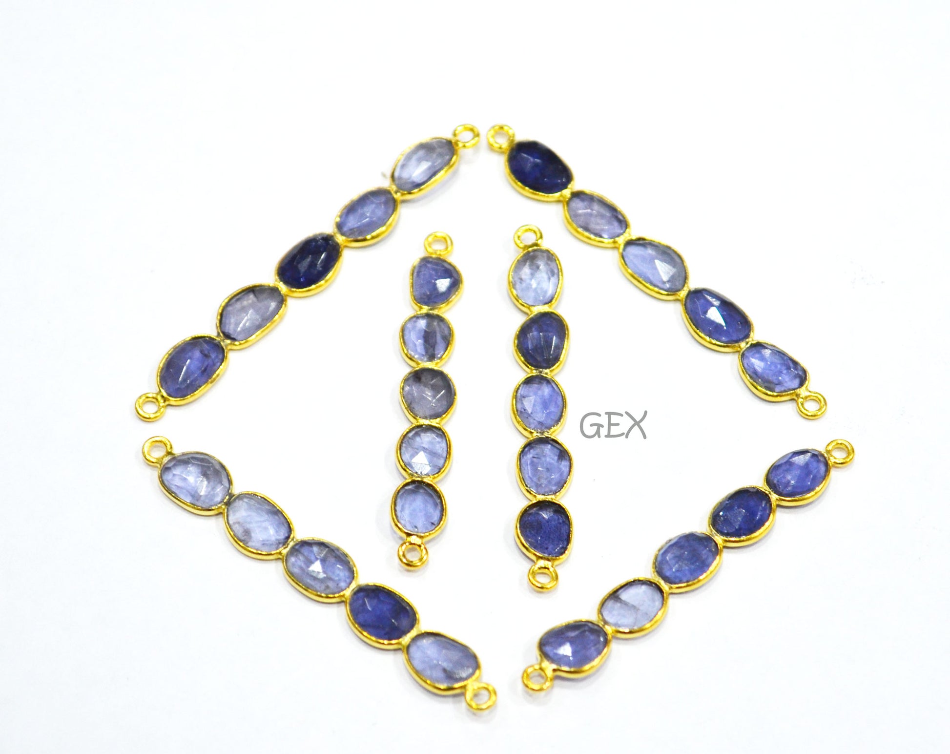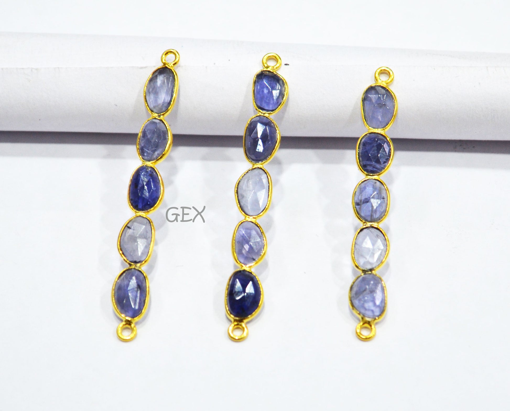 Natural Iolite Faceted Bar Connector , Natural Iolite Double Bail Bezel Charm Connector , Sold By Piece , 36 - 47 mm , R-008