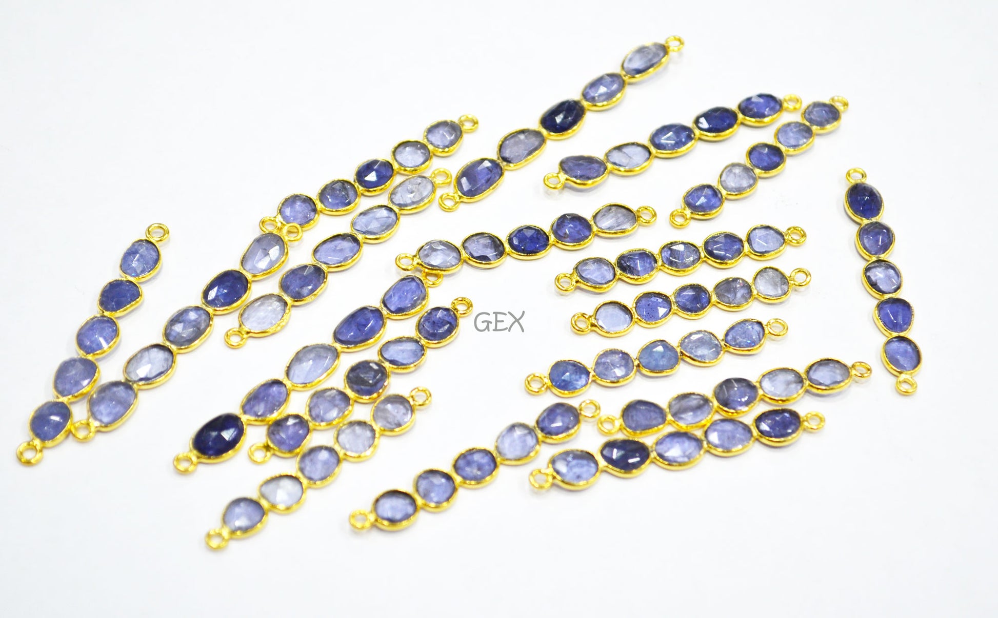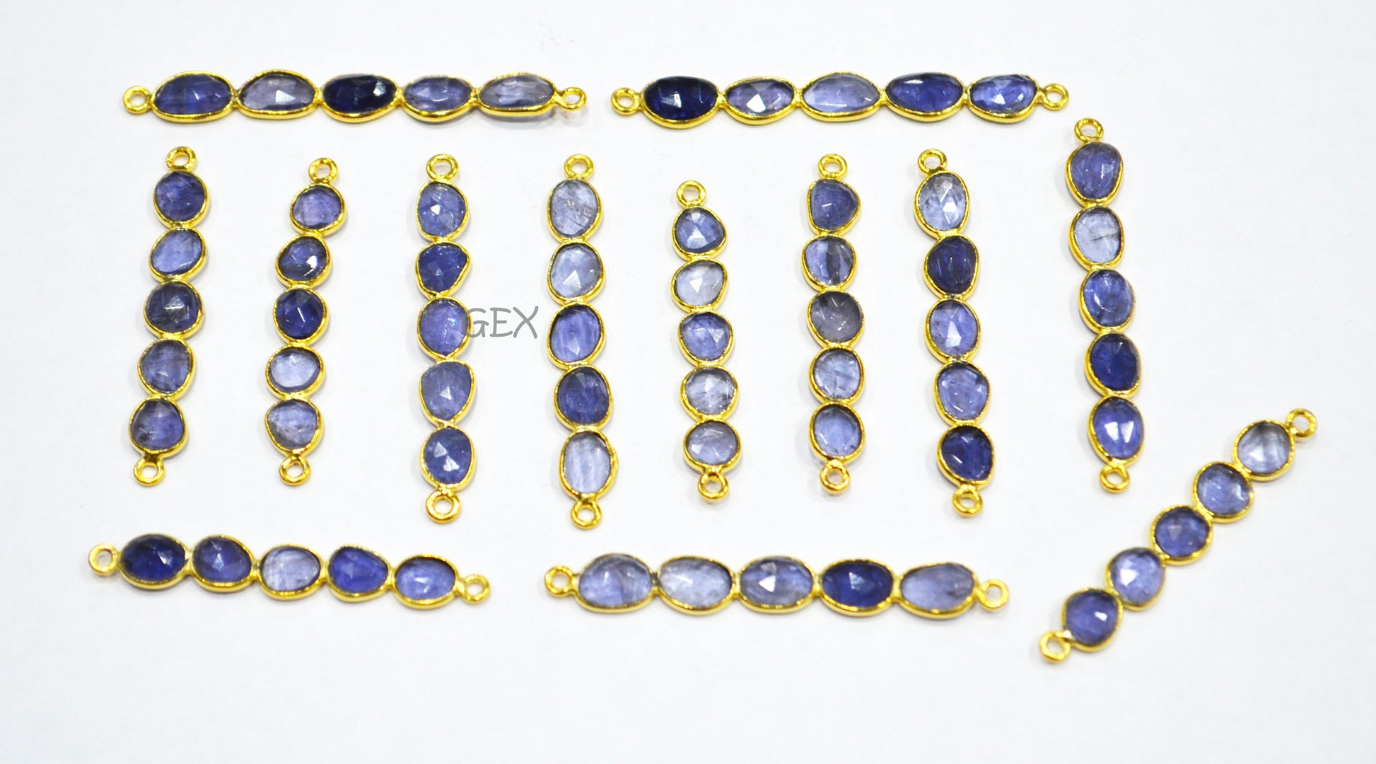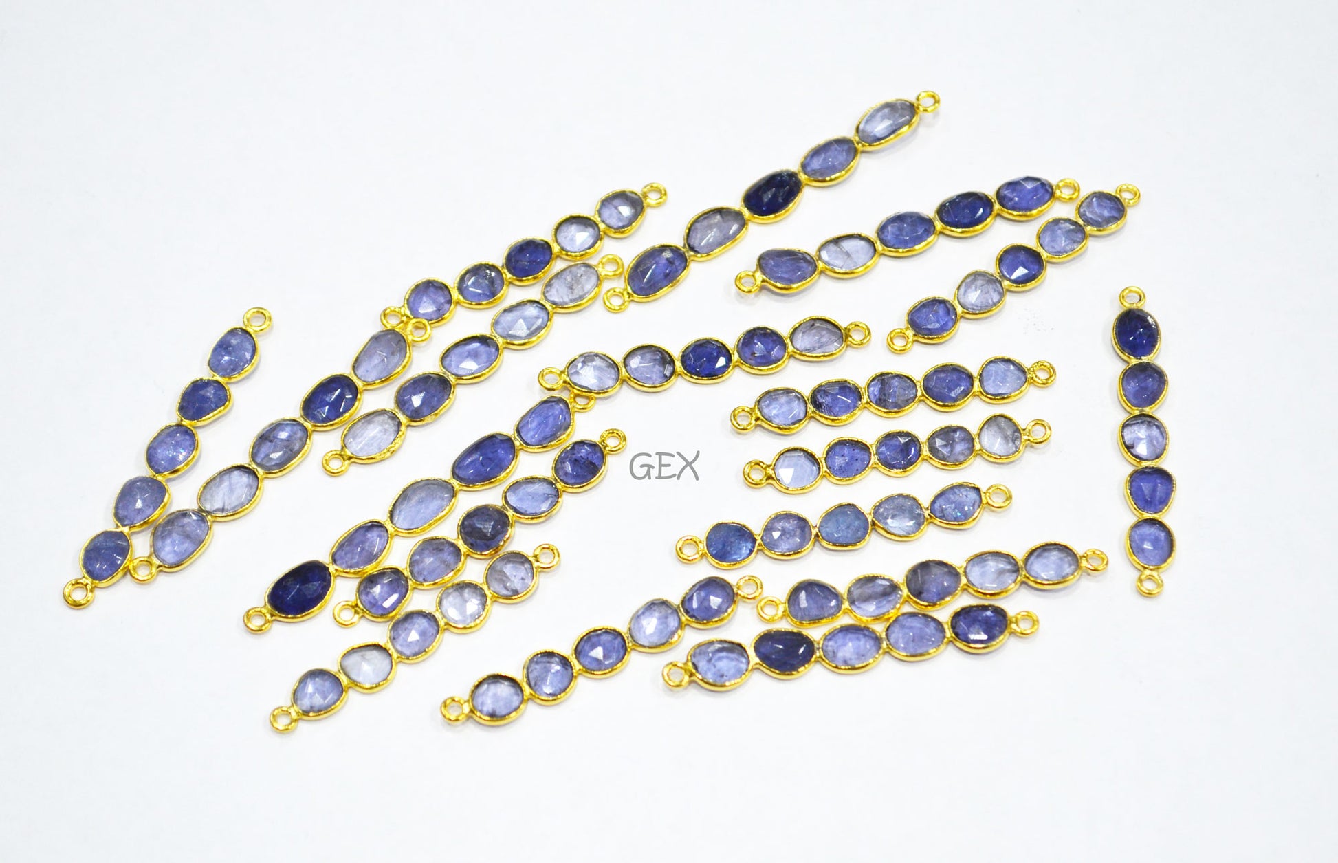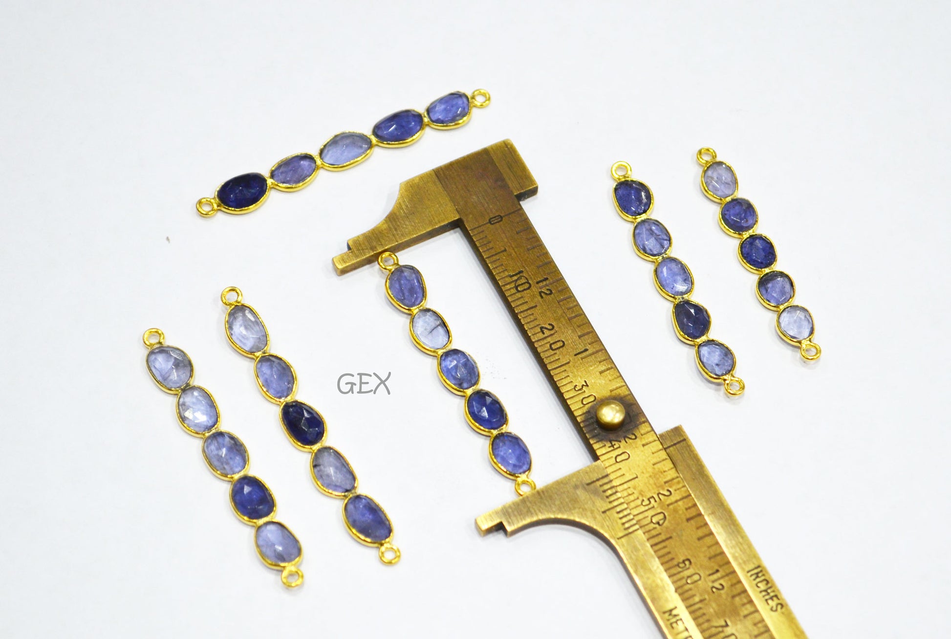 Natural Iolite Faceted Bar Connector , Natural Iolite Double Bail Bezel Charm Connector , Sold By Piece , 36 - 47 mm , R-008