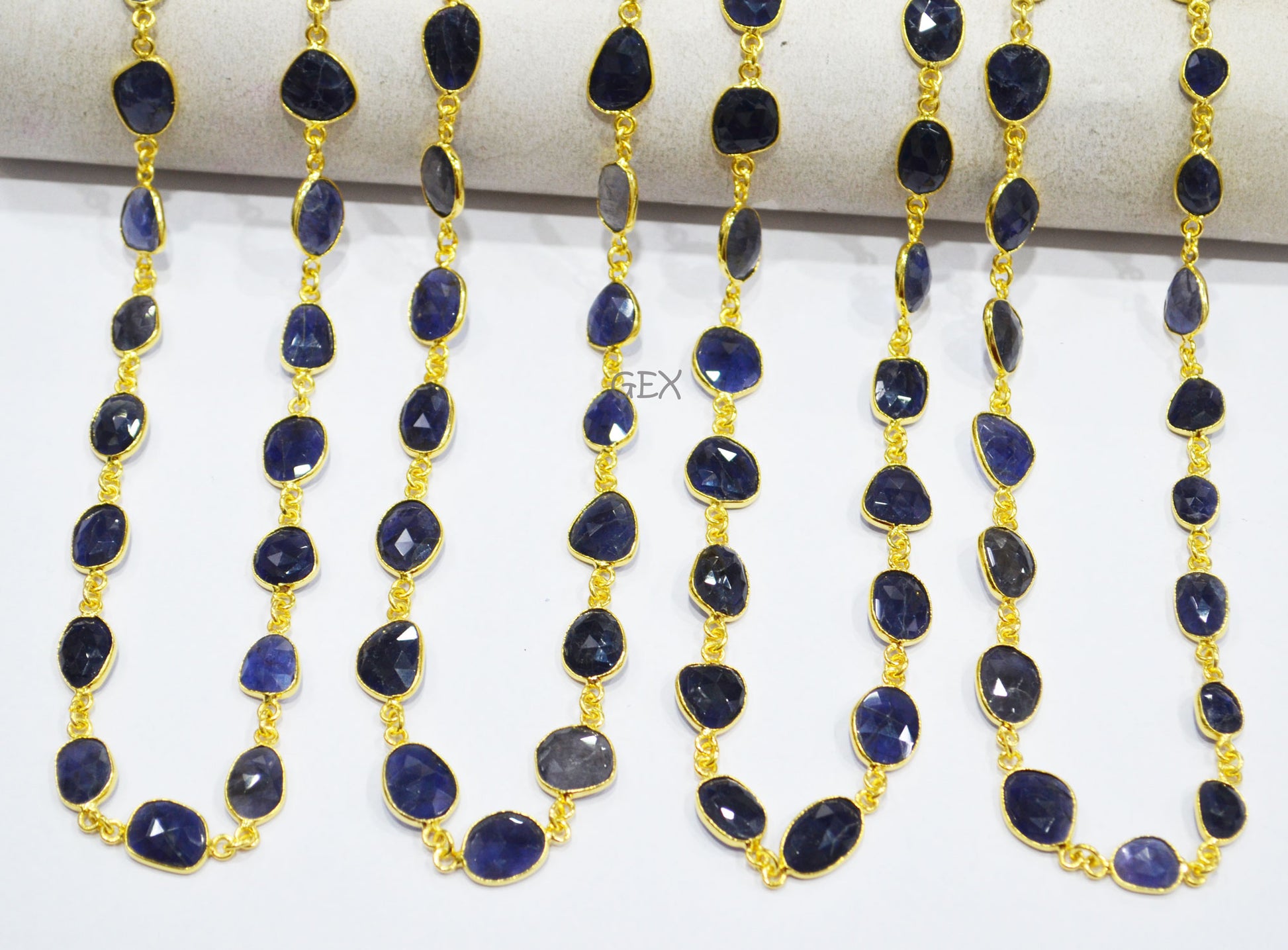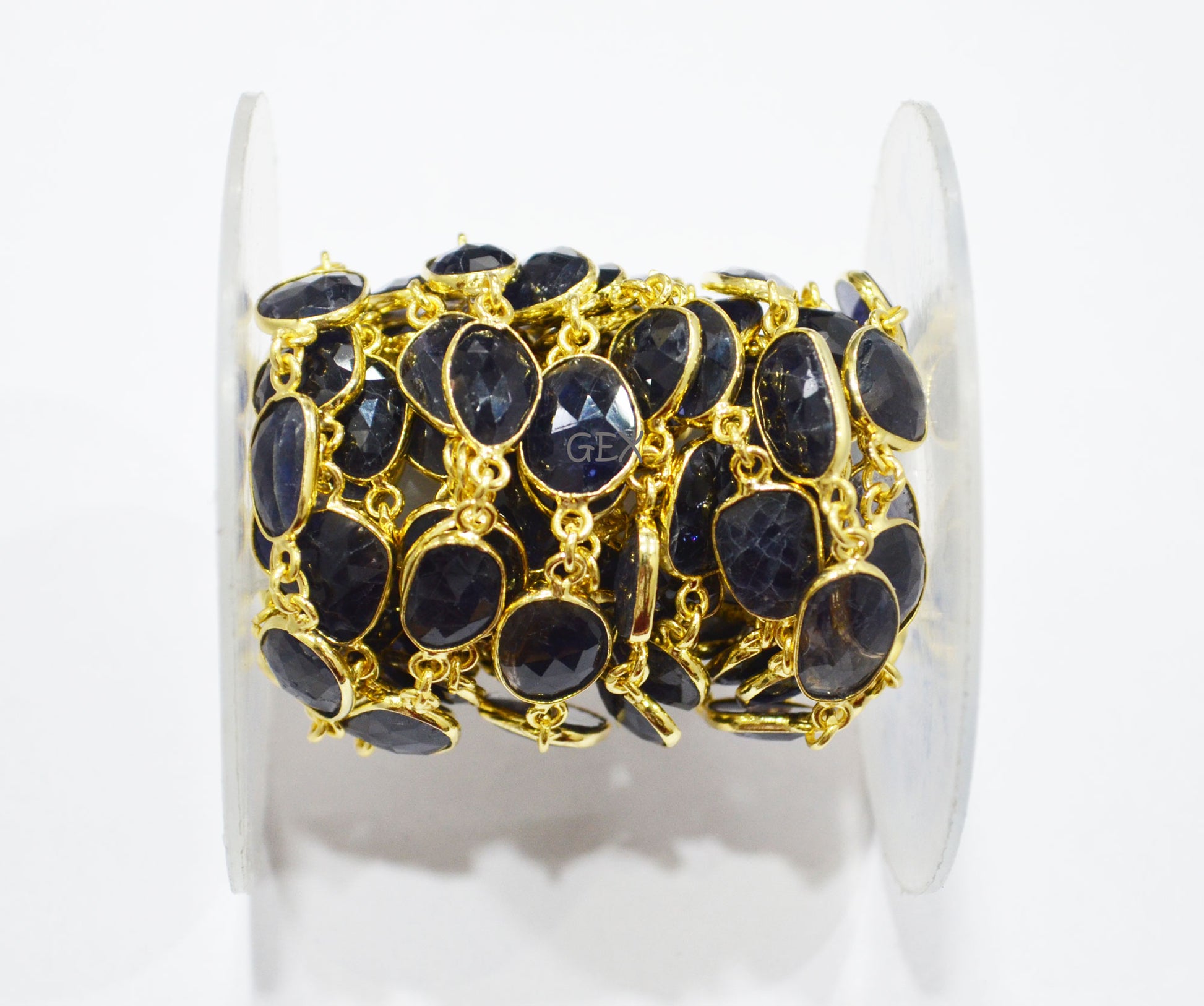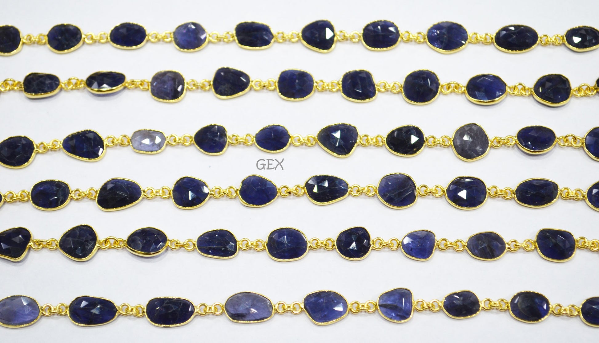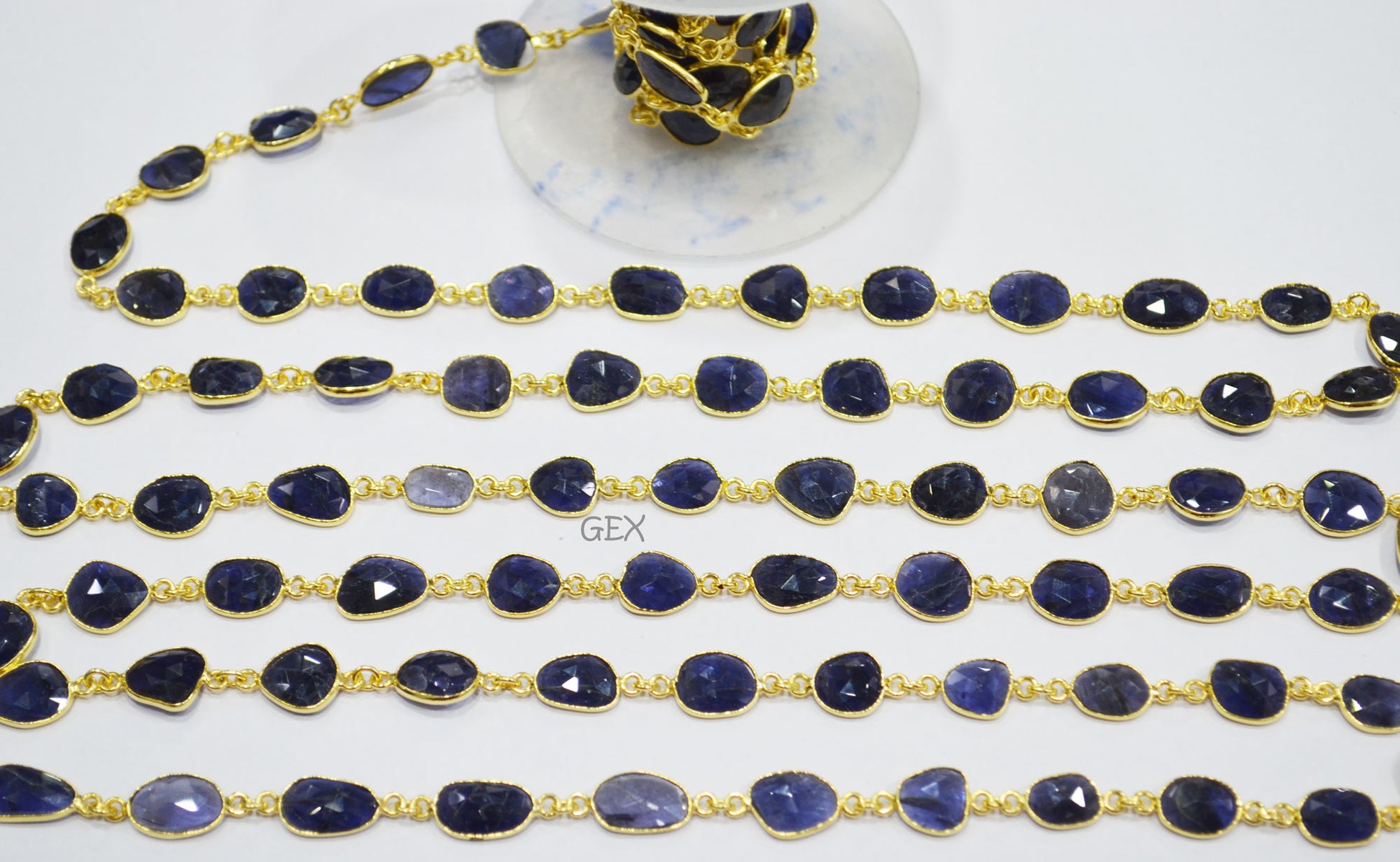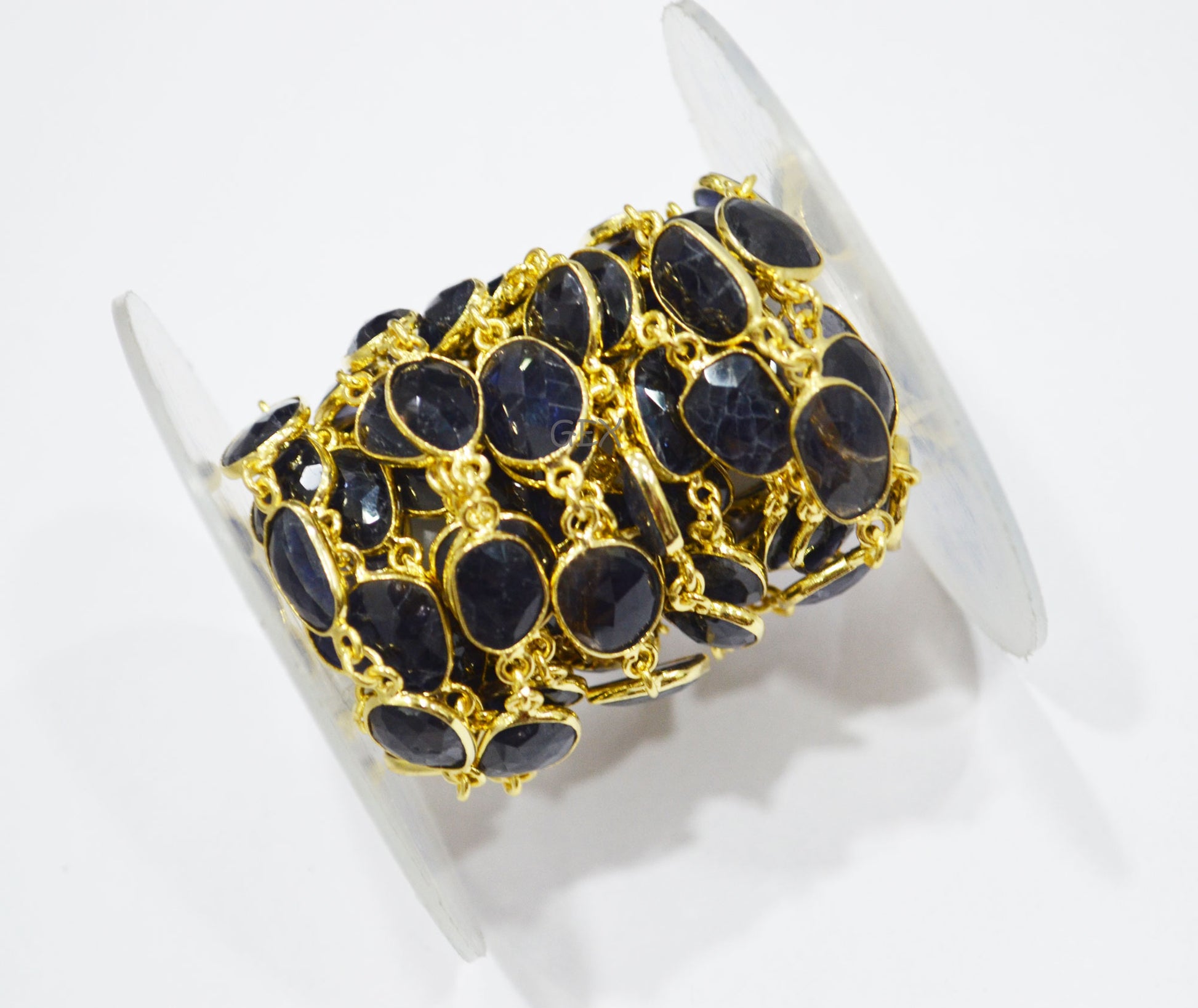 Natural Iolite Faceted Slice Shape Connector Chain , 9x10 - 10x16 mm , RB-7191