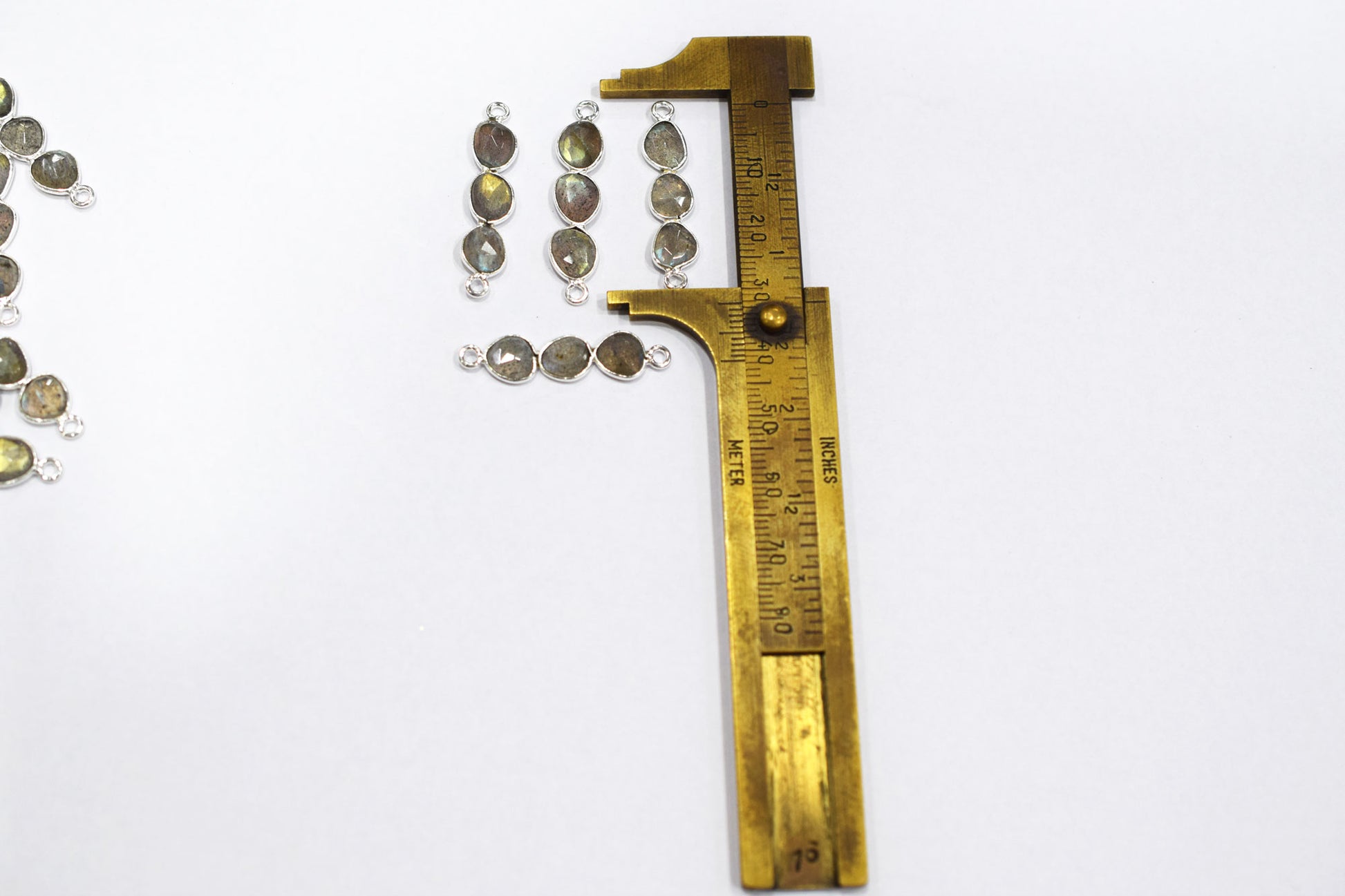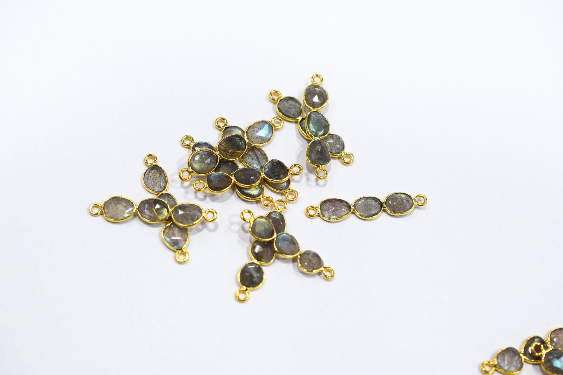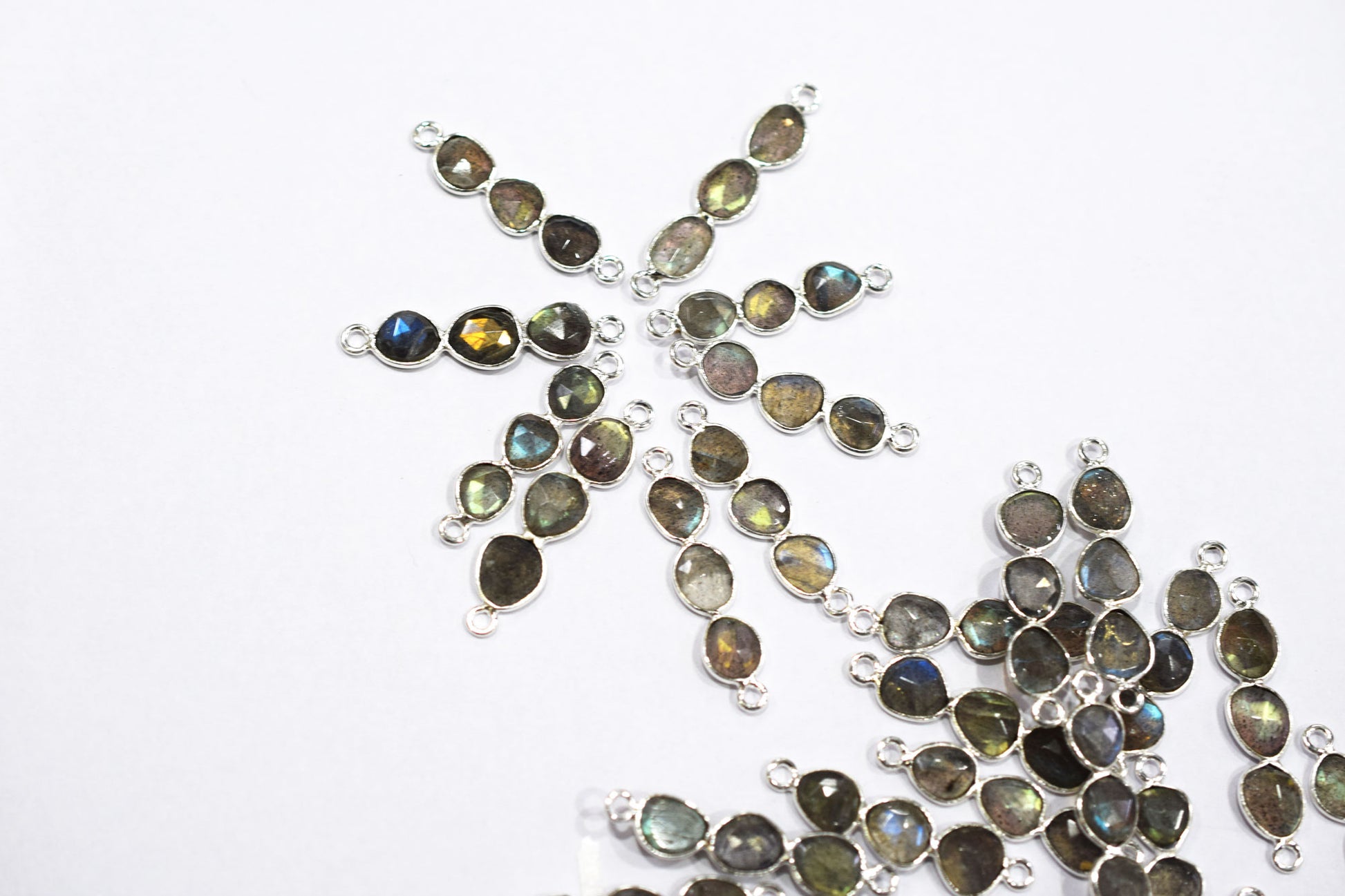 Natural Labradorite Faceted 3 Stone In 1 Piece Bar Connector , Natural Labradorite Double Bail Bezel Charm Connector , Sold By Piece , 25 - 30 mm , 7306