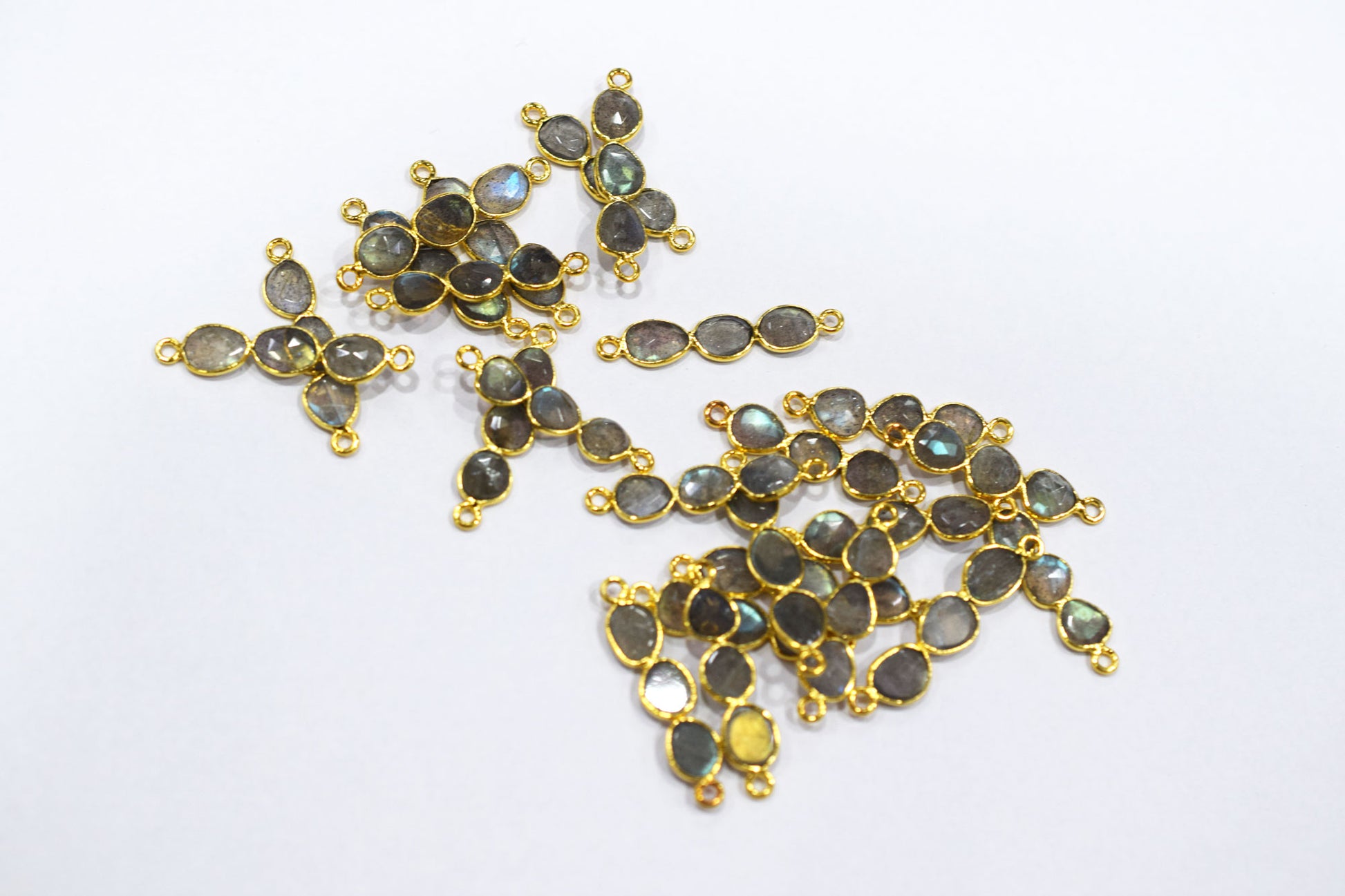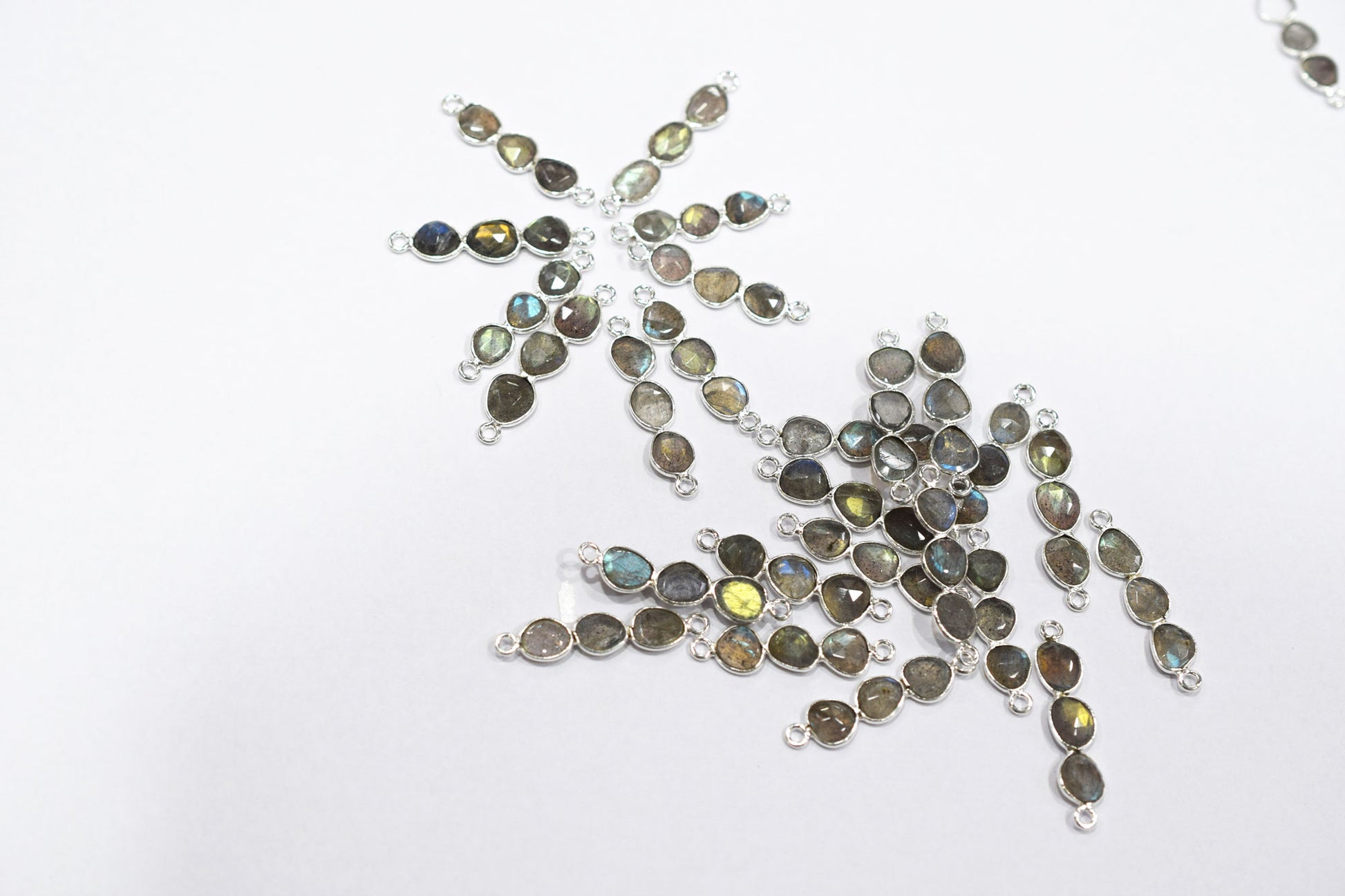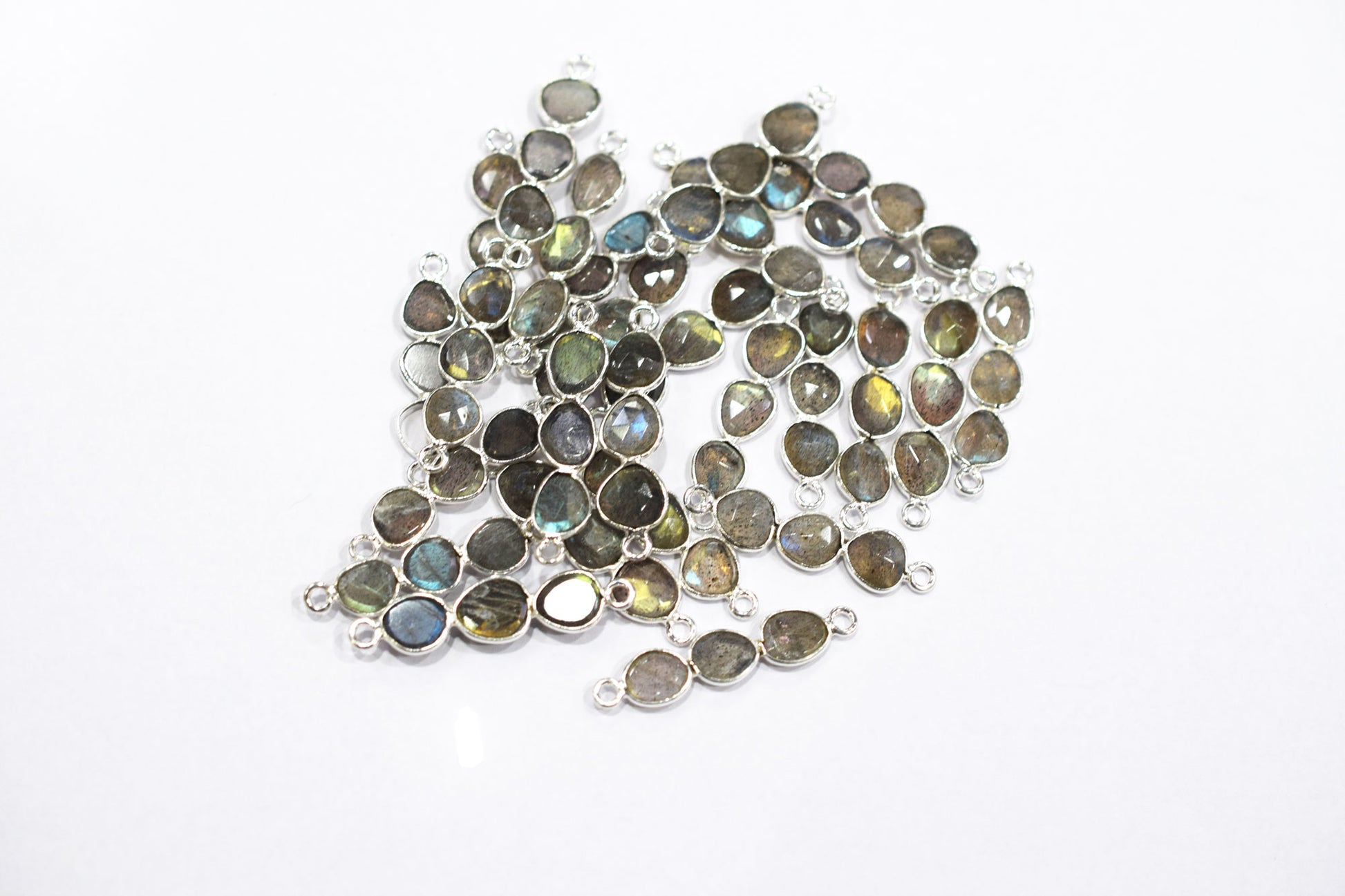 Natural Labradorite Faceted 3 Stone In 1 Piece Bar Connector , Natural Labradorite Double Bail Bezel Charm Connector , Sold By Piece , 25 - 30 mm , 7306