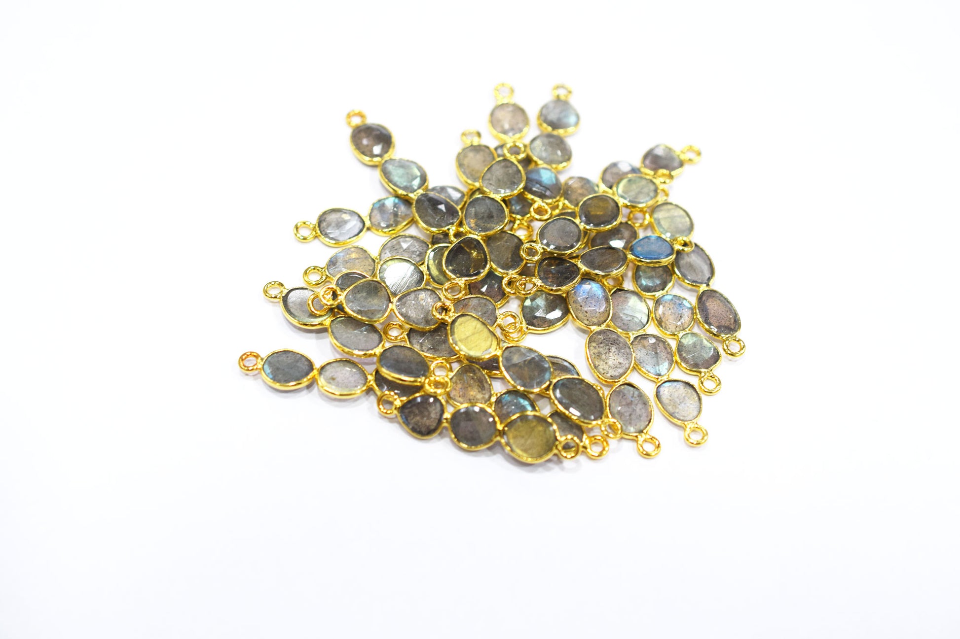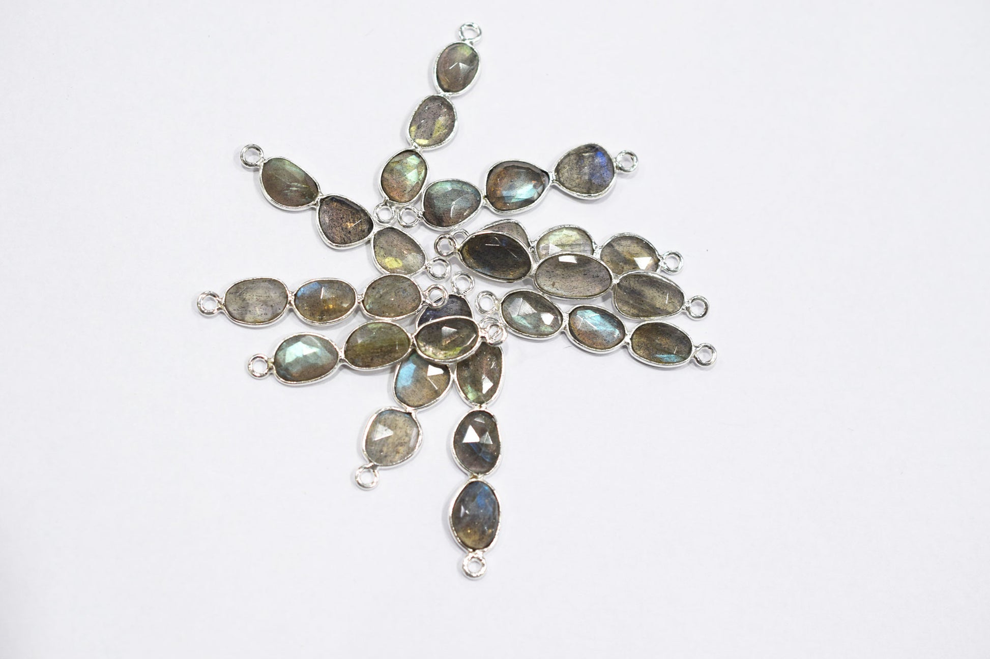 Natural Labradorite Faceted 3 Stone In 1 Piece Bar Connector , Natural Labradorite Double Bail Bezel Charm Connector , Sold By Piece , Β 37 - 40 mm , 7305