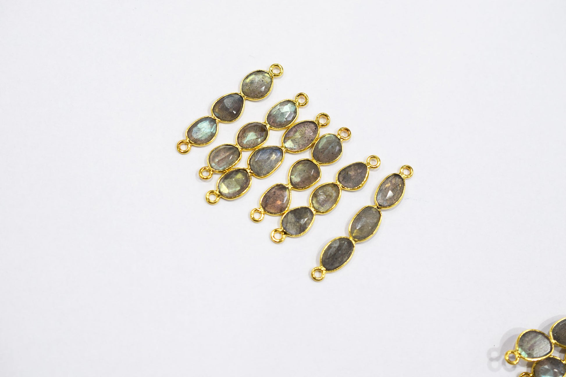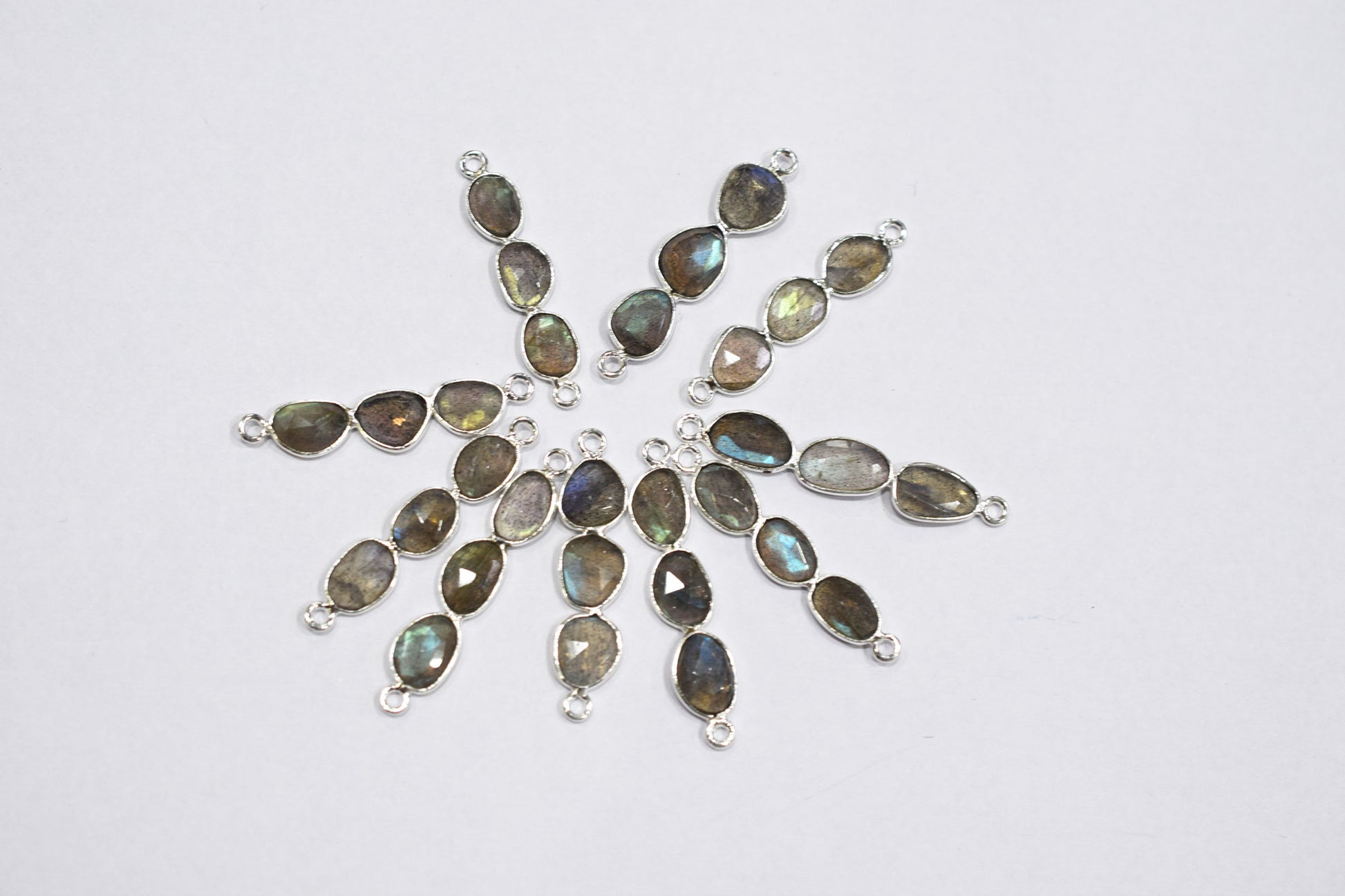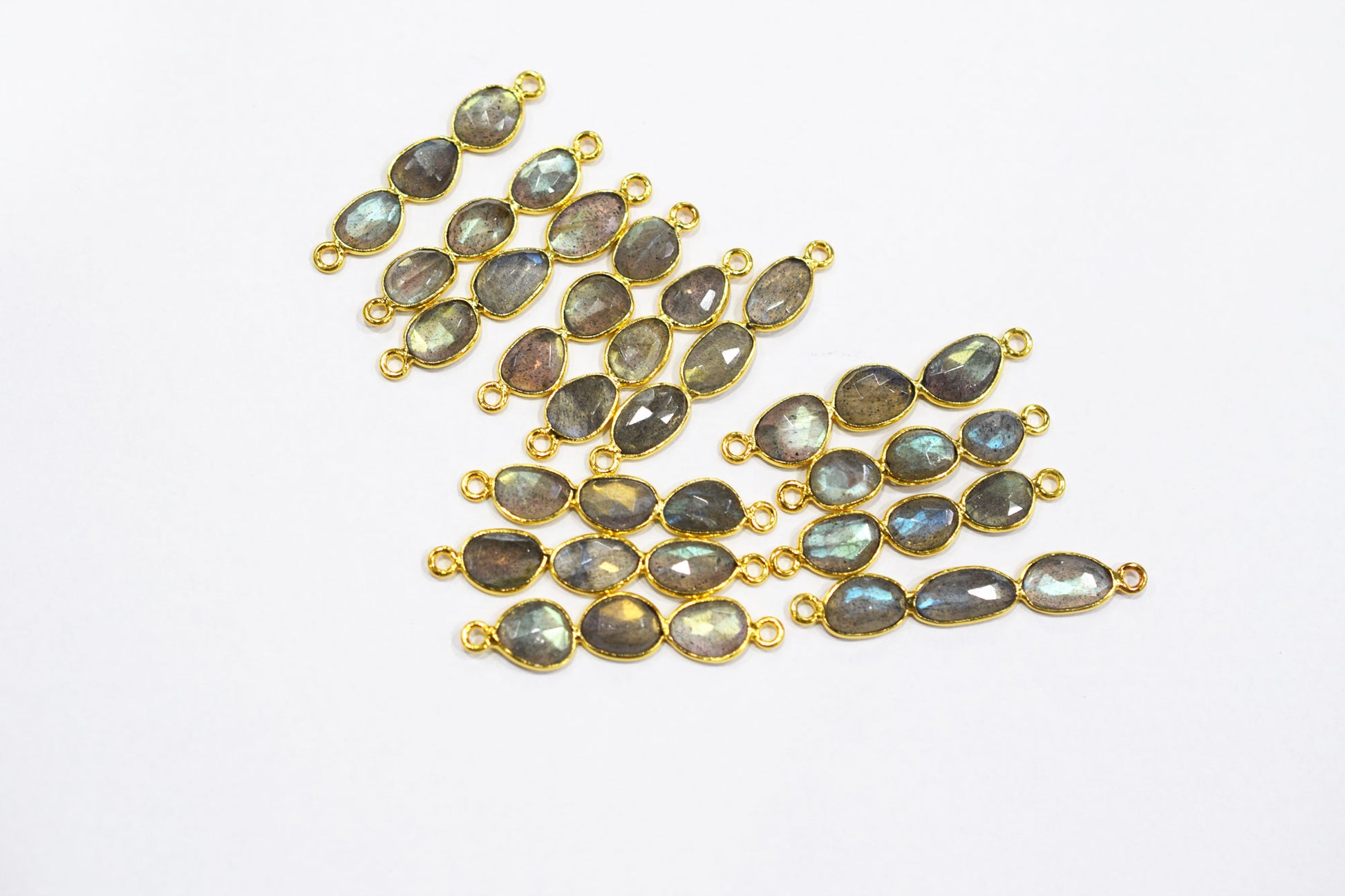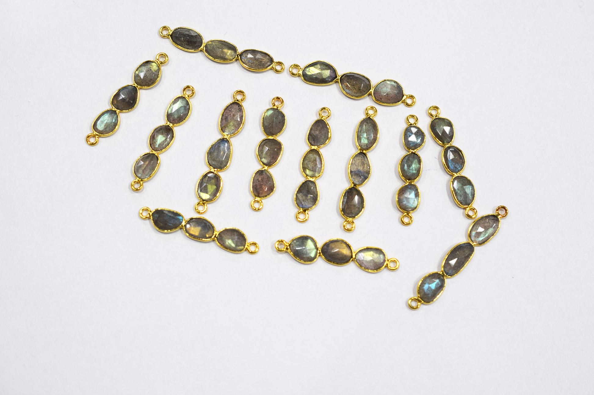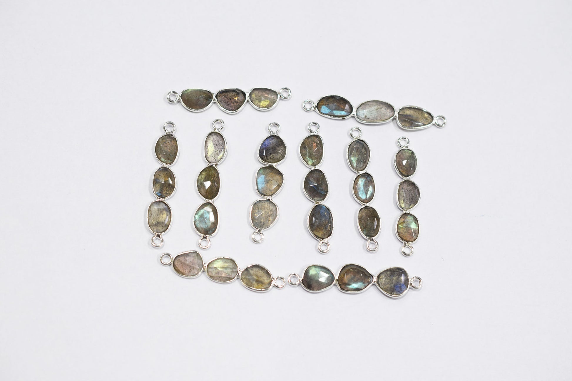 Natural Labradorite Faceted 3 Stone In 1 Piece Bar Connector , Natural Labradorite Double Bail Bezel Charm Connector , Sold By Piece , 37 - 40 mm , 7305