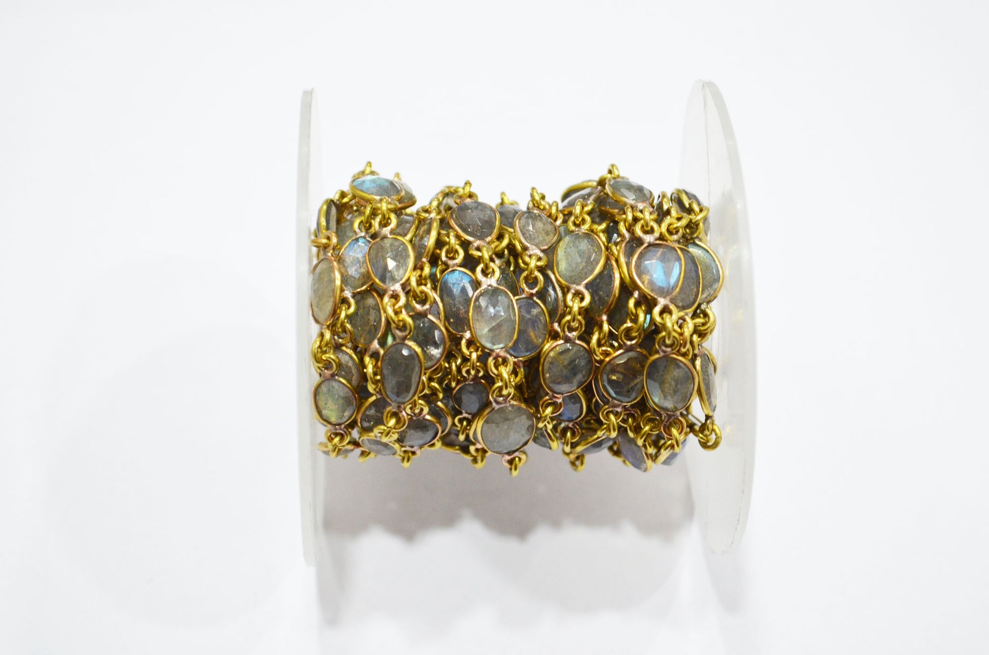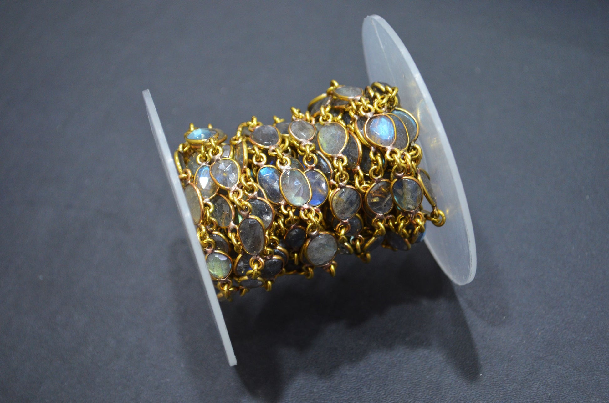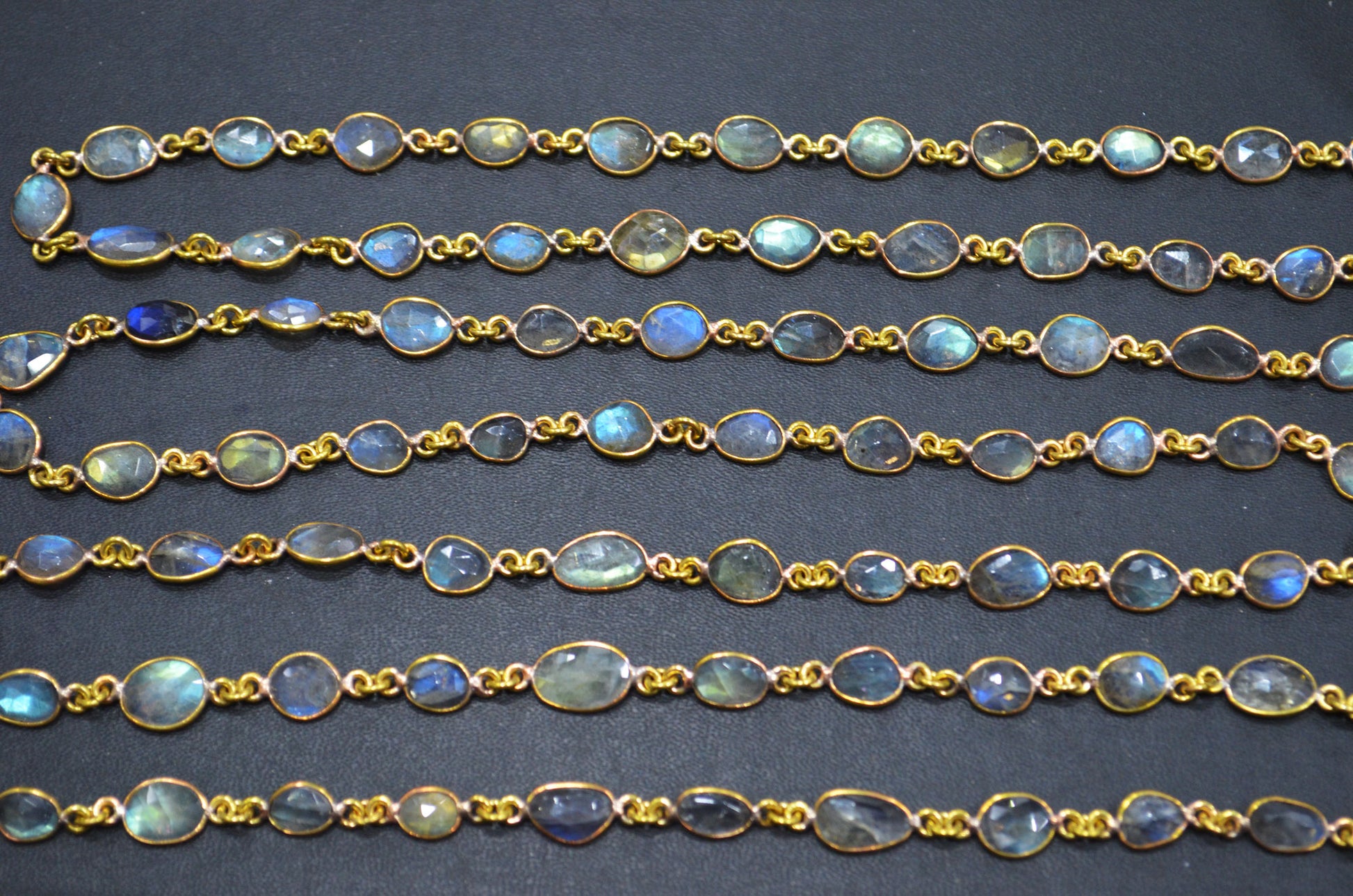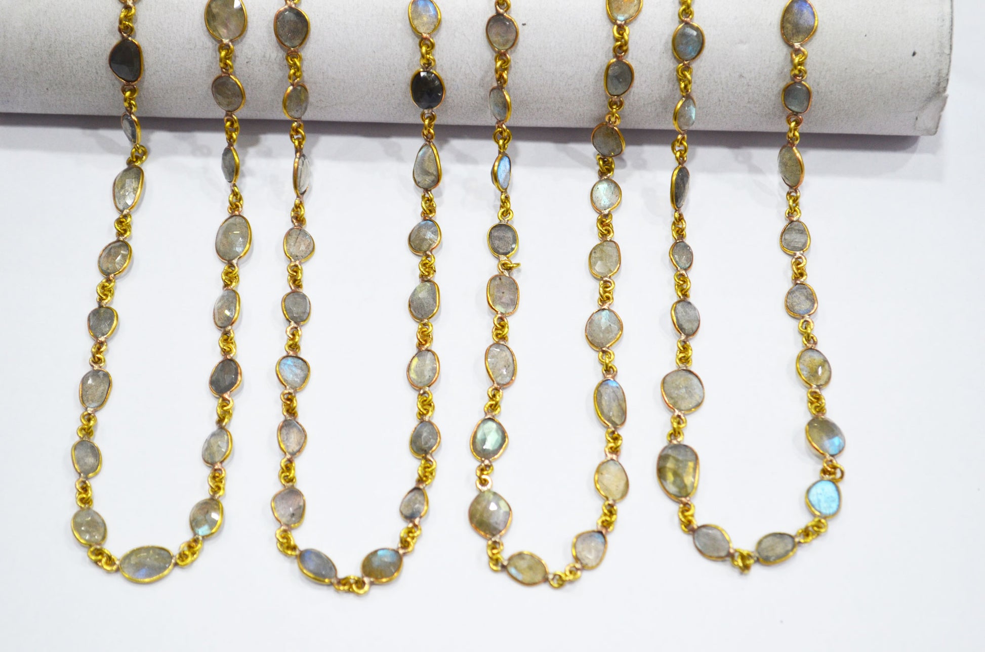 Natural Labradorite Faceted Free Form Shape Connector Chain , Labradorite Slice Shape Bezel Link Chain , 6 - 9 mm , RB-5916