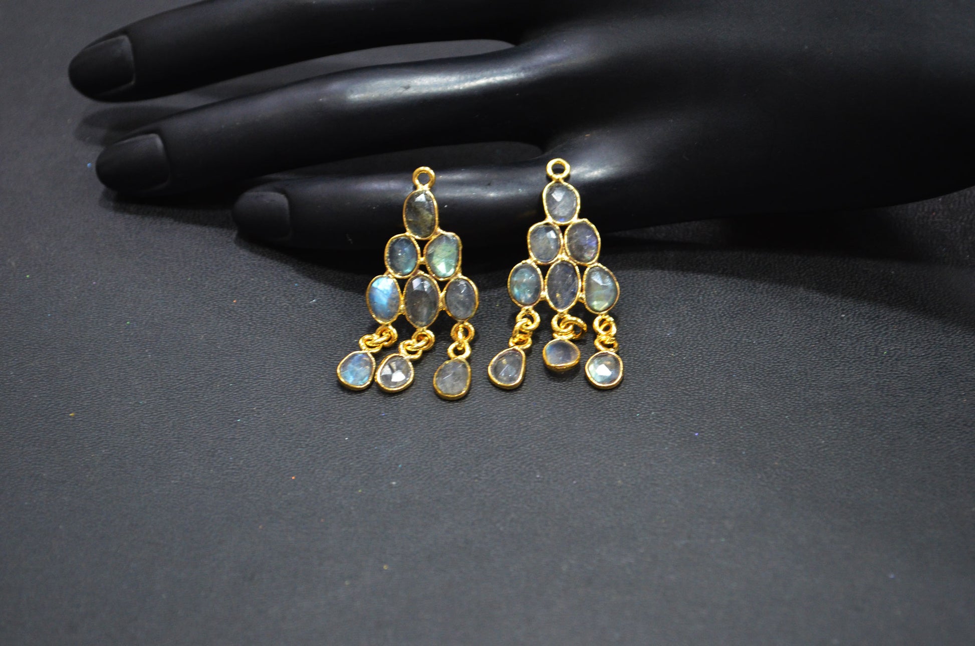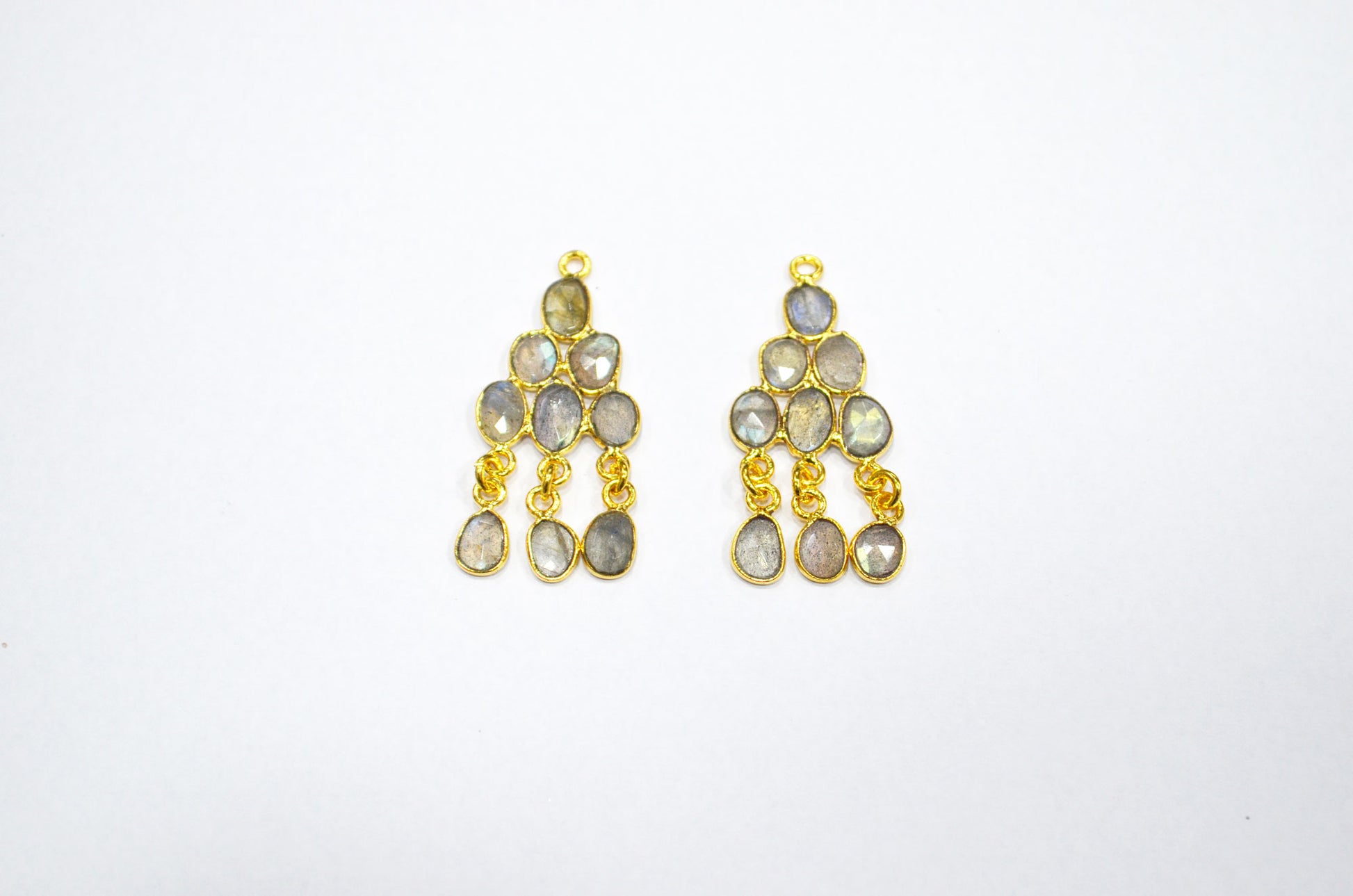 Natural Labradorite Faceted Slice Shape Fancy Connector , Natural Labradorite Single Bail Bezel Charm Connector , Sold By Pair Β , 35 - 38 mm , R-034