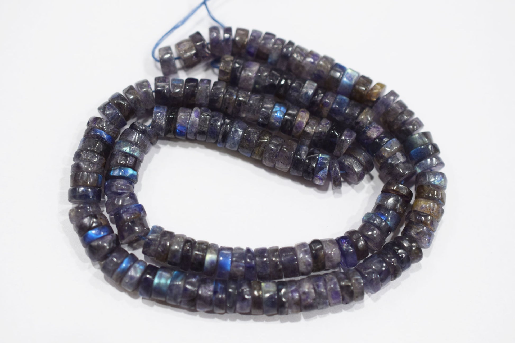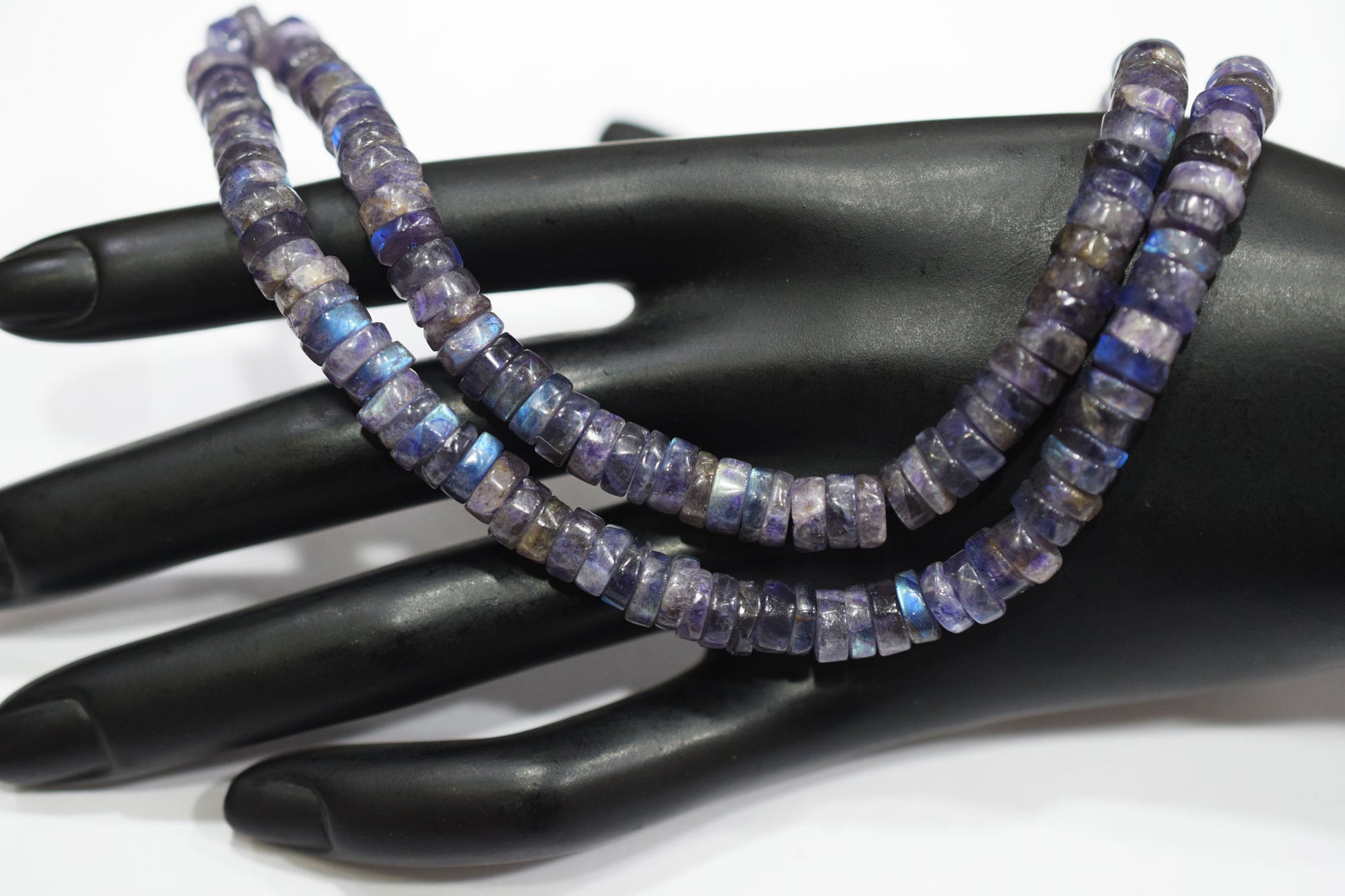 Natural Labradorite Purple Heishi Tyre Shape Beads , Labradorite Purple Heishi Smooth Beads , Sold By Strand , 7 mm , 16" , Β 20661
