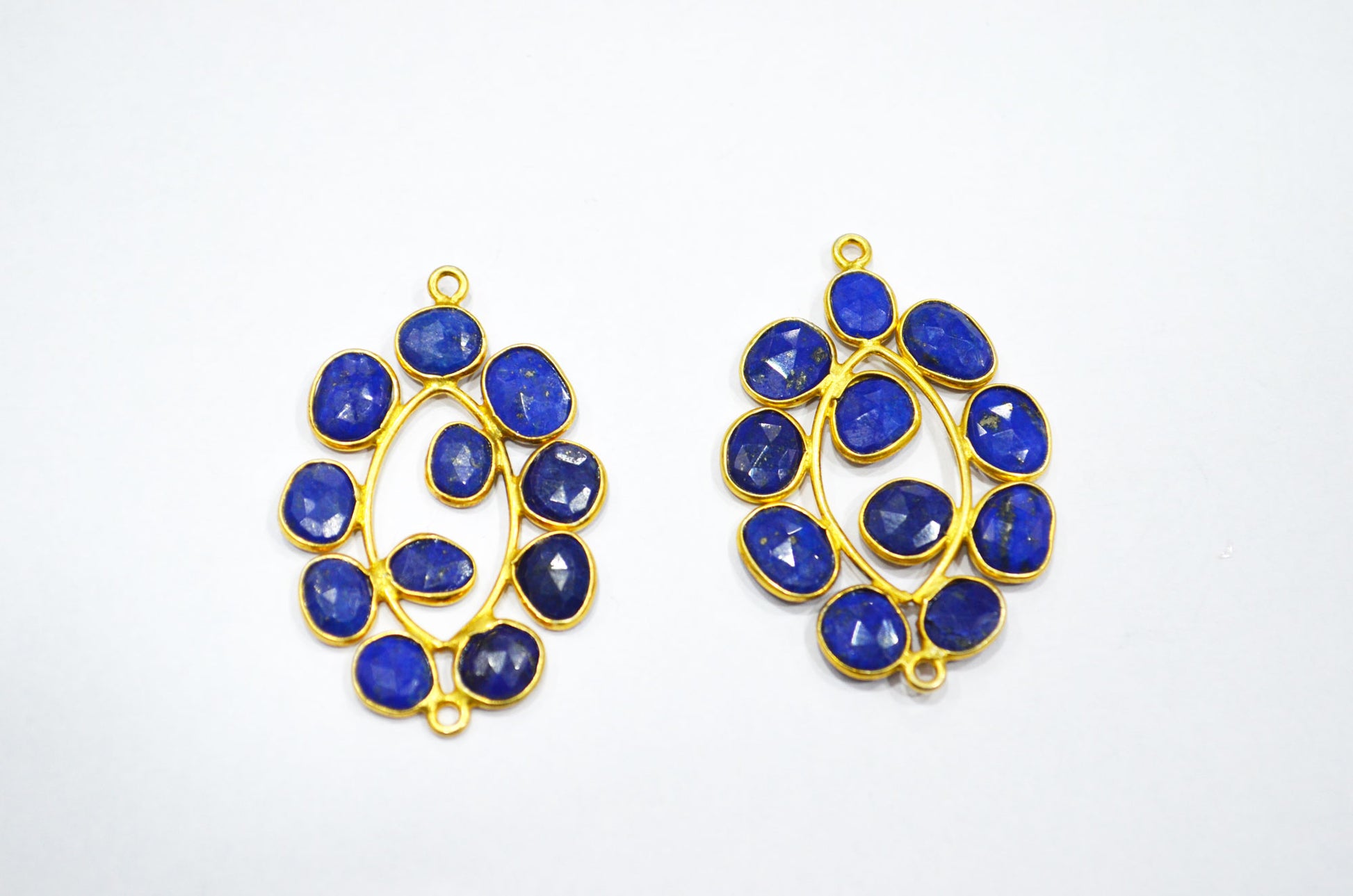 Natural Lapis Lazuli Sterling Silver Marquise Shape Connector , Natural Lapis Lazuli Faceted Double Bail Connector , Sold By Piece , 3 - 3.50 cm , RB-6079