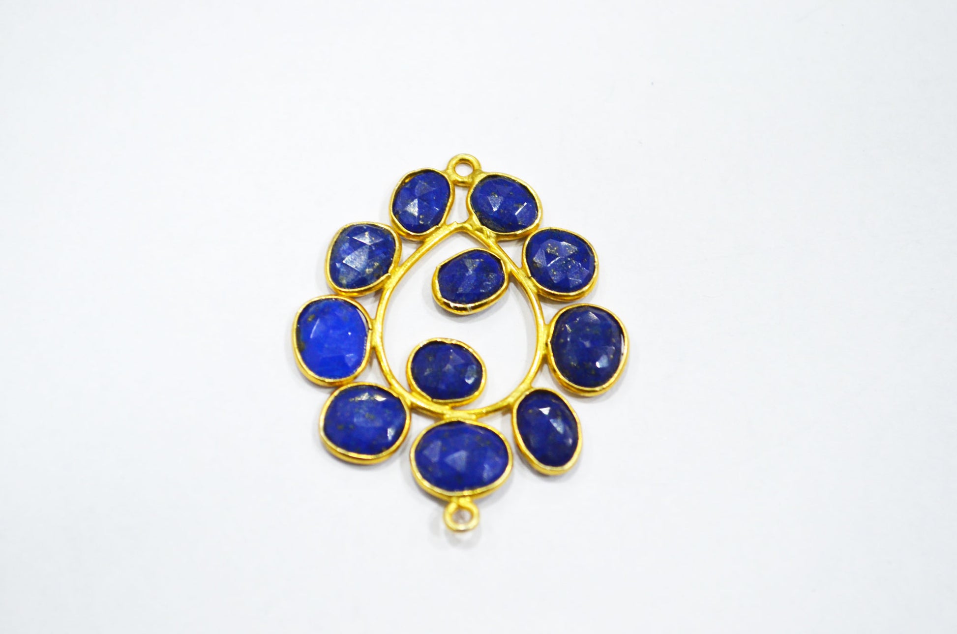 Natural Lapis Lazuli Sterling Silver Pear Shape Connector , Sold By Piece , 3 - 3.50 cm , RB-6080B
