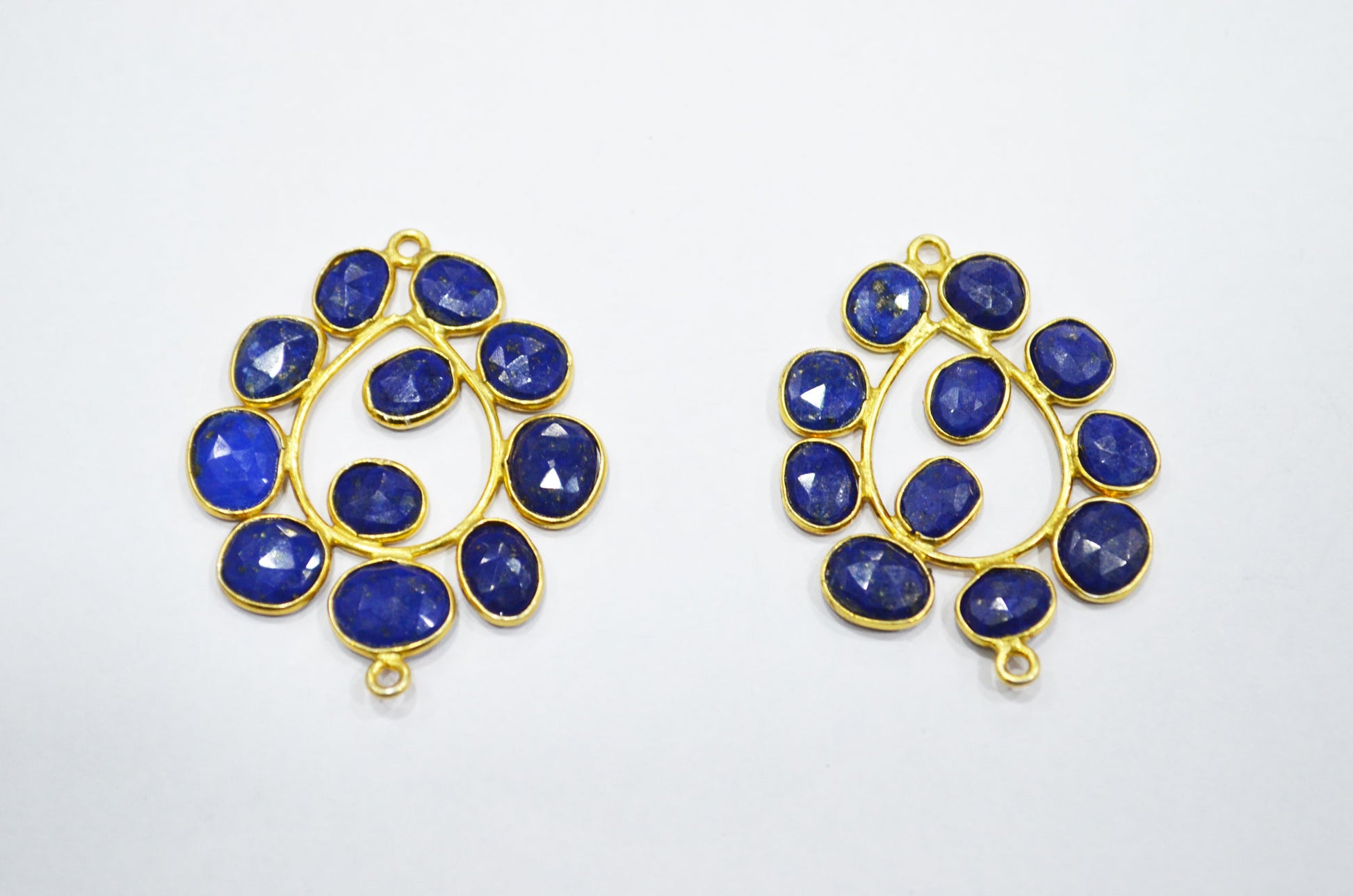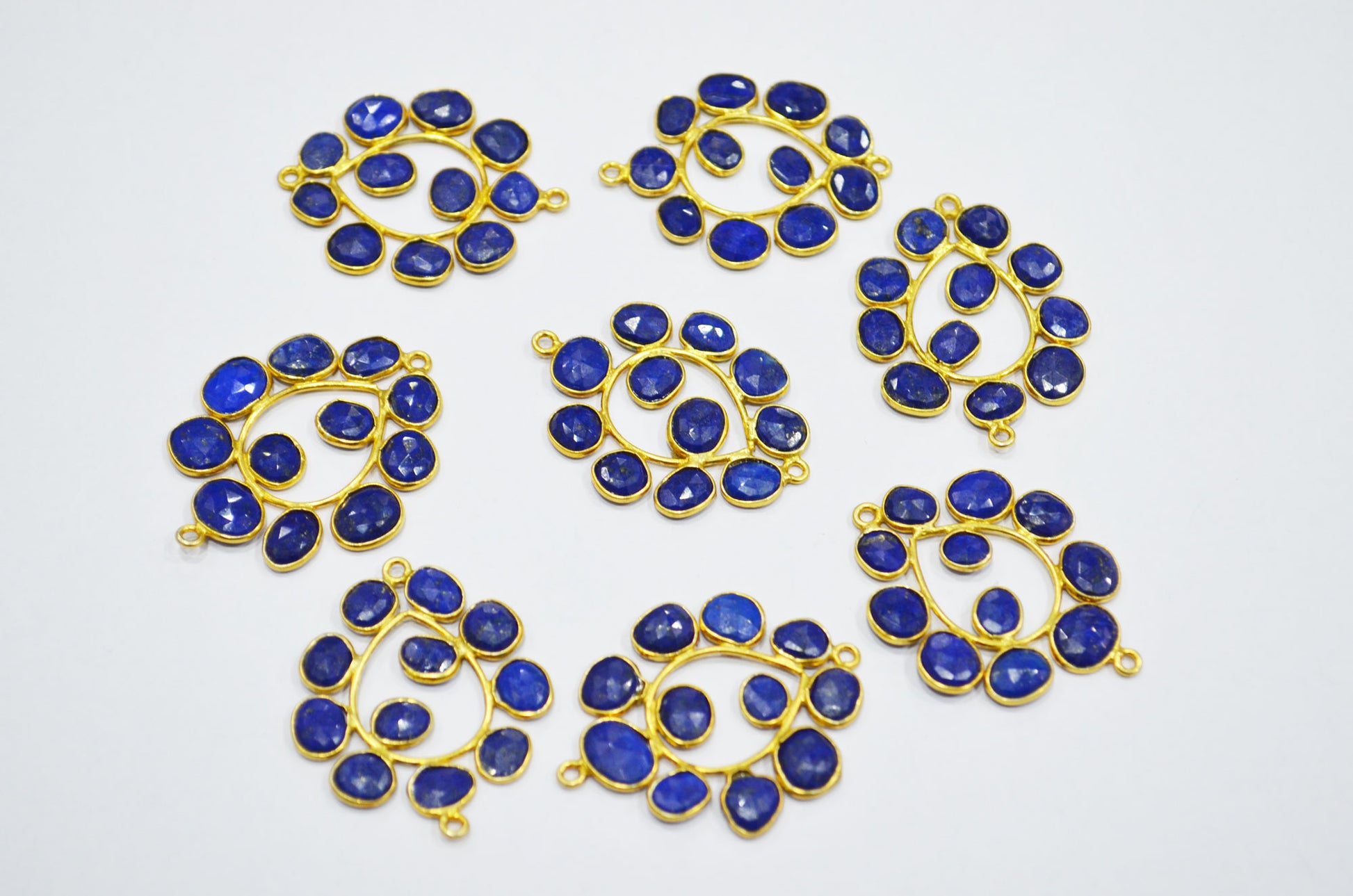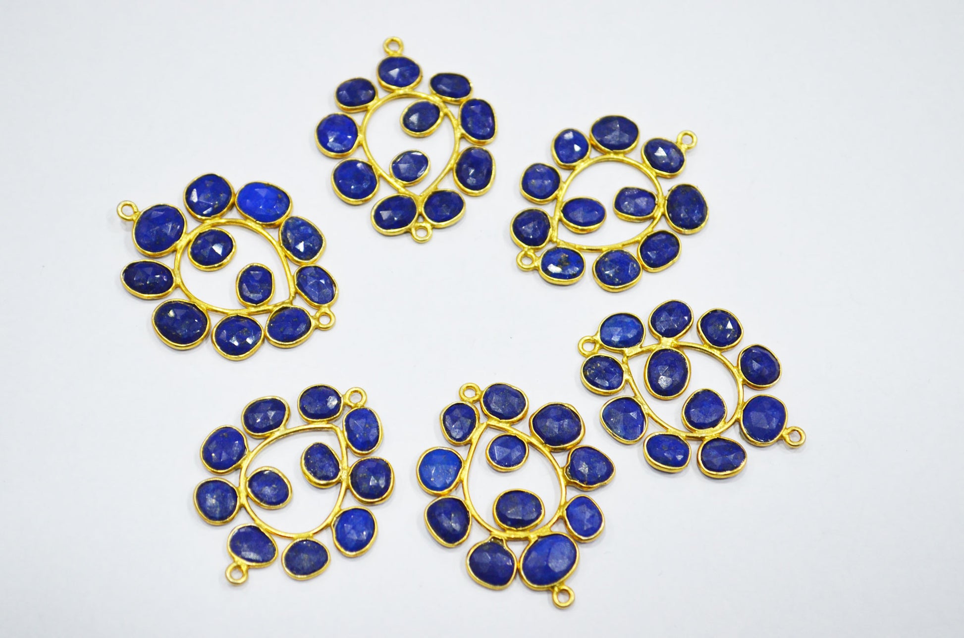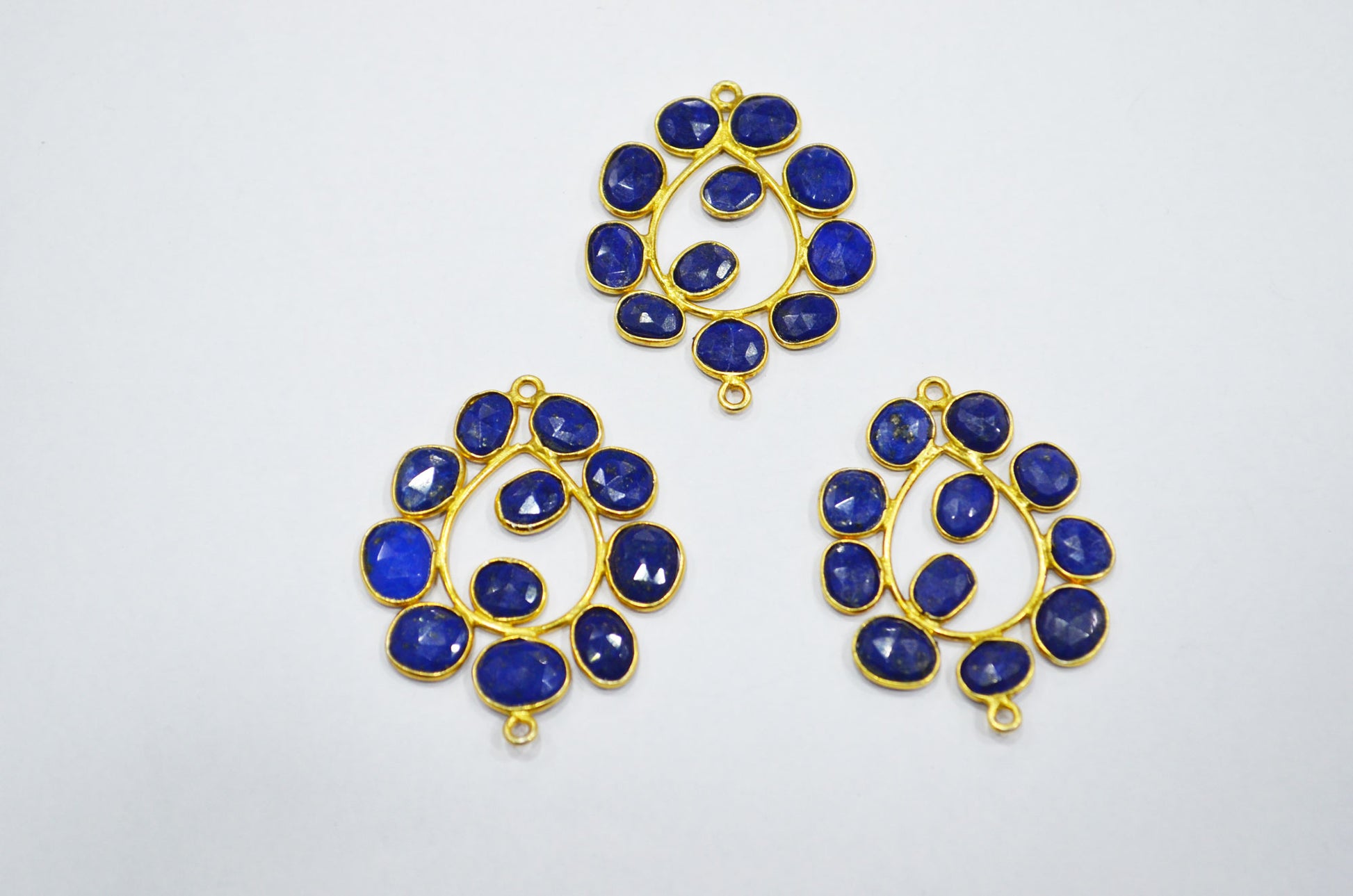 Natural Lapis Lazuli Sterling Silver Pear Shape Connector , Natural Lapis Lazuli Faceted Double Bail Connector , Sold By Piece , 3 - 3.50 cm , RB-6080B