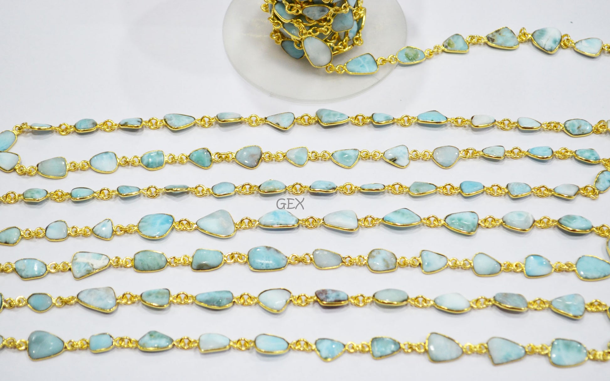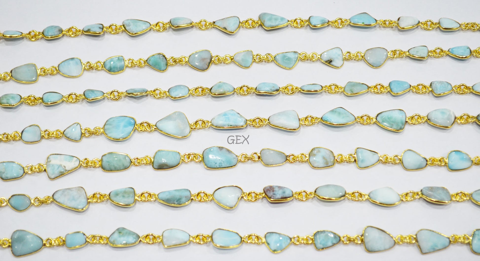 Natural Larimar Free Form Shape Smooth Connector Chain , Natural Larimar Slice Shape Bezel Link Chain , 6 - 13 mm , RB-7197
