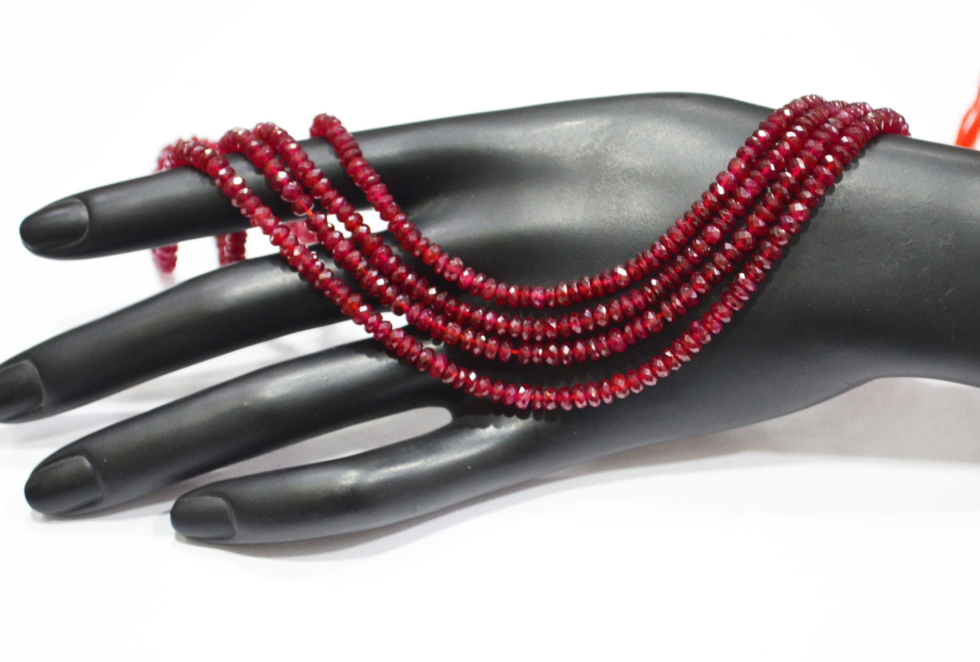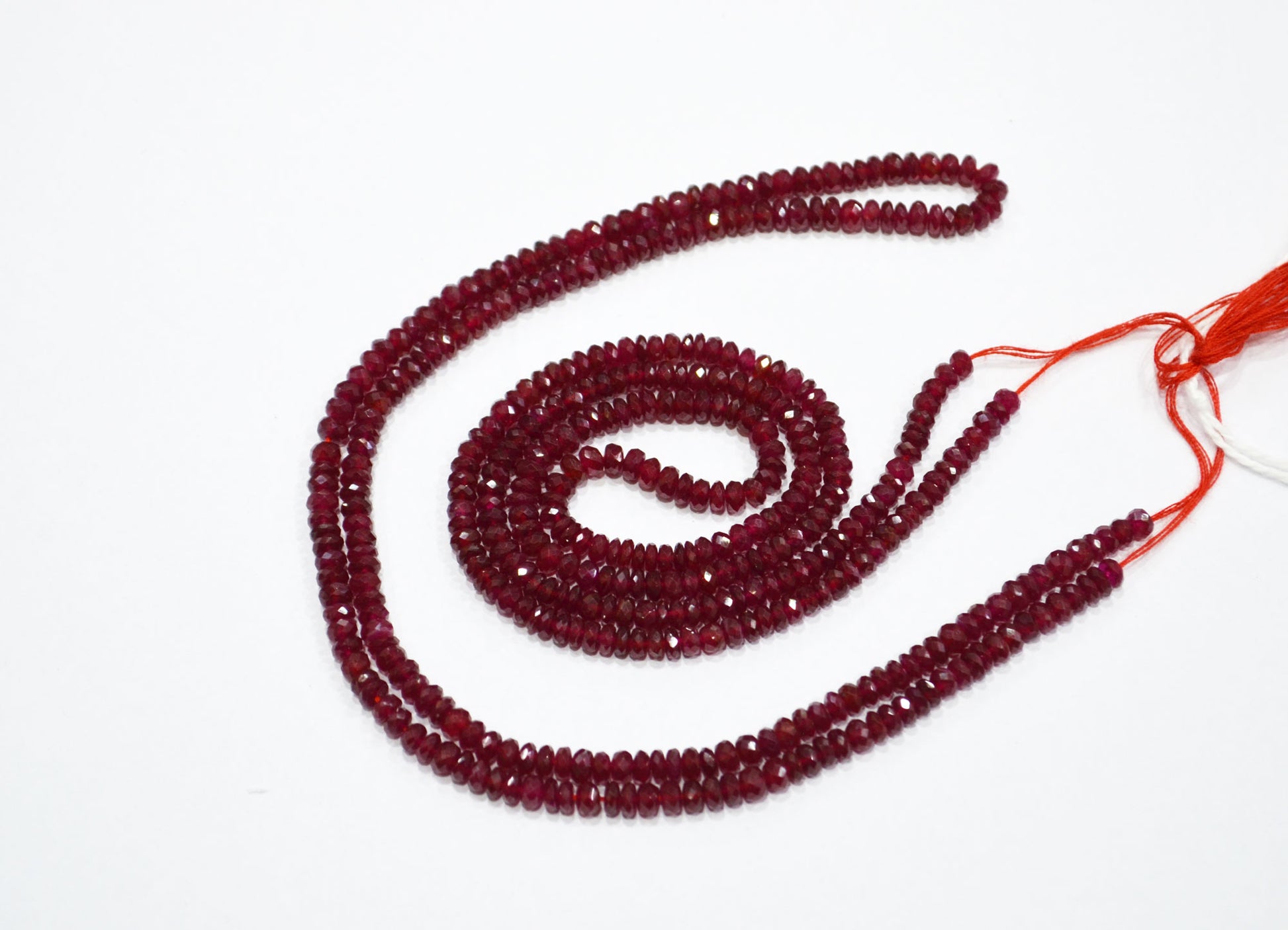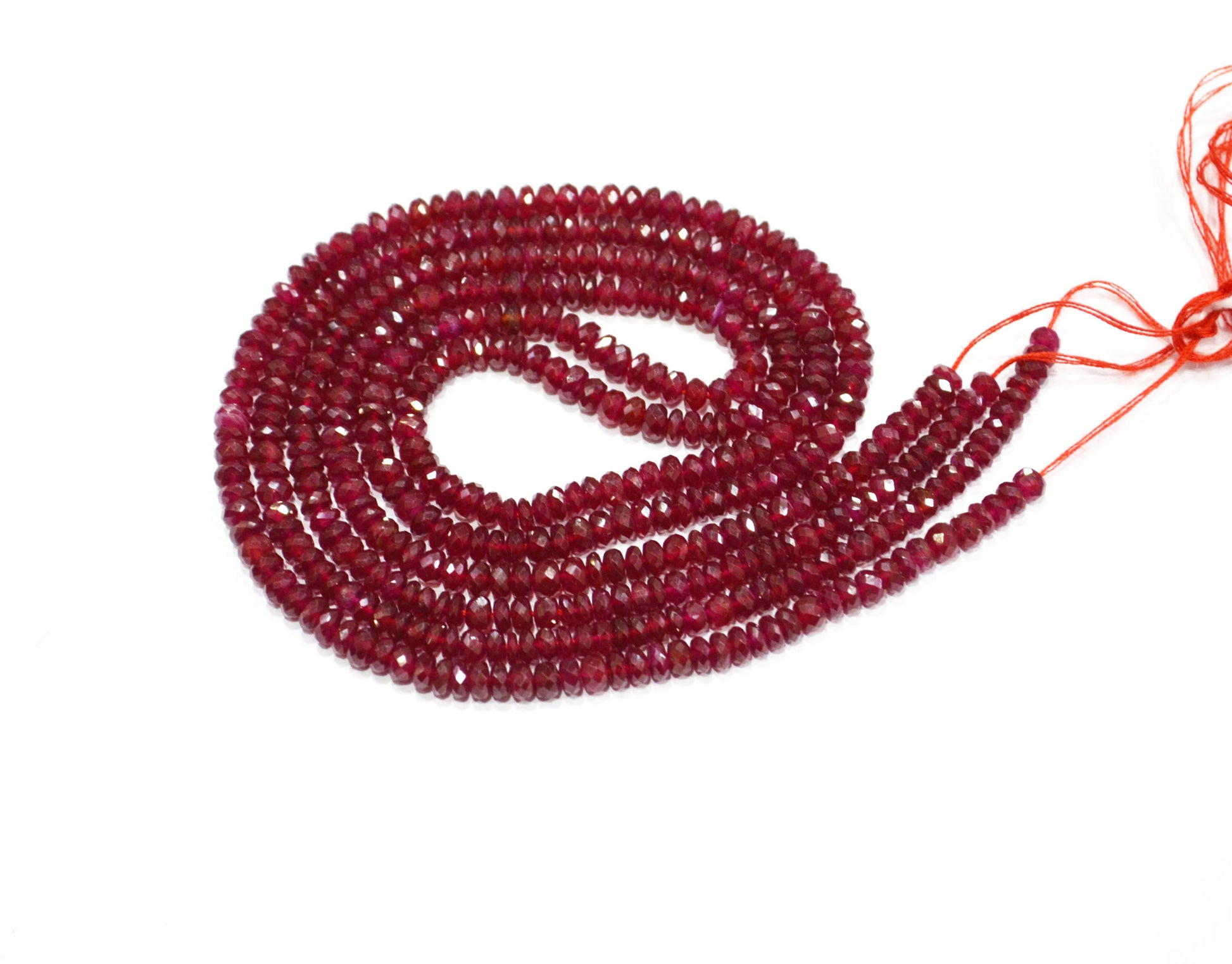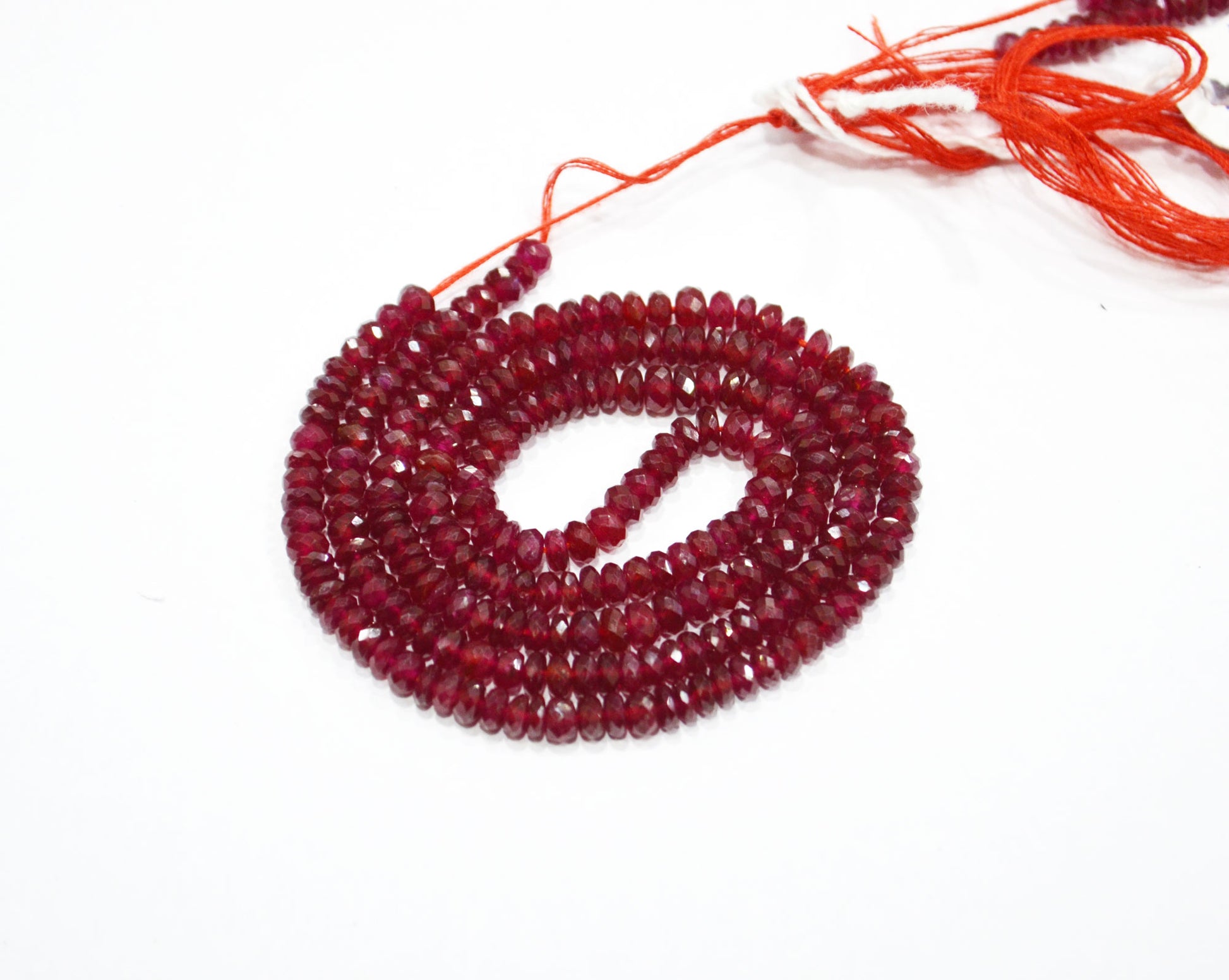 Natural Longido Ruby Faceted Rondelle Shape Beads , Longido Ruby Faceted Beads , 18 Inches , 4 mm , 32074