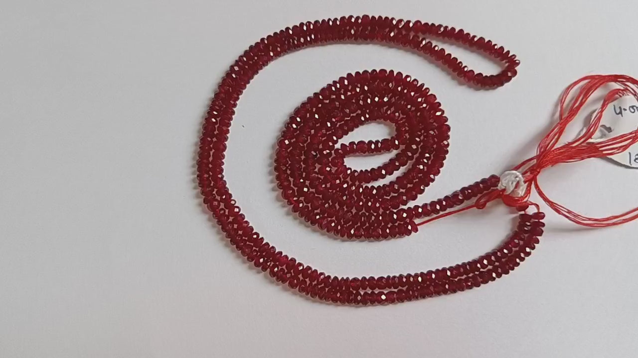 Natural Longido Ruby Faceted Rondelle Shape Beads , 18 Inches , 4 mm , 32074