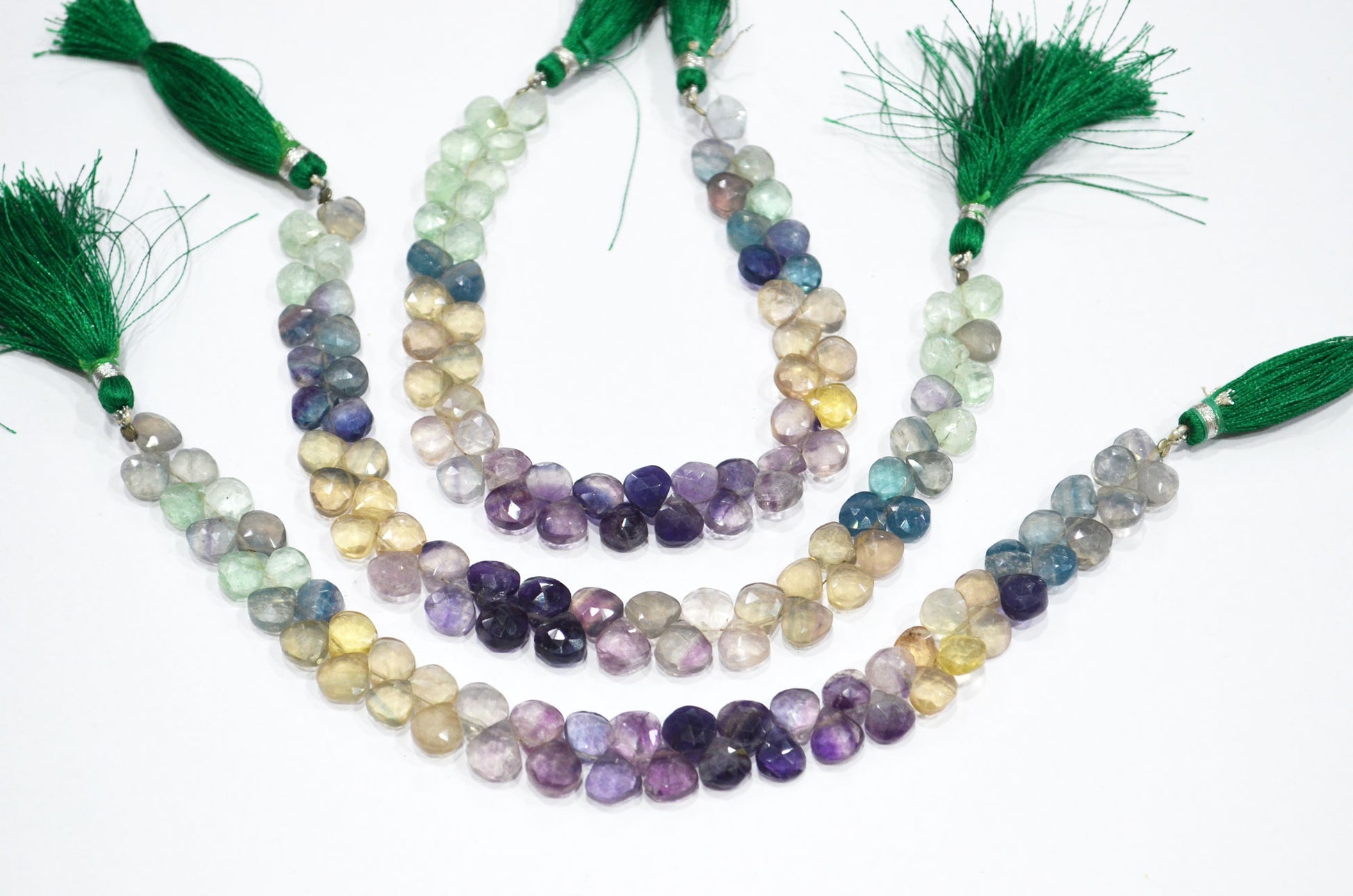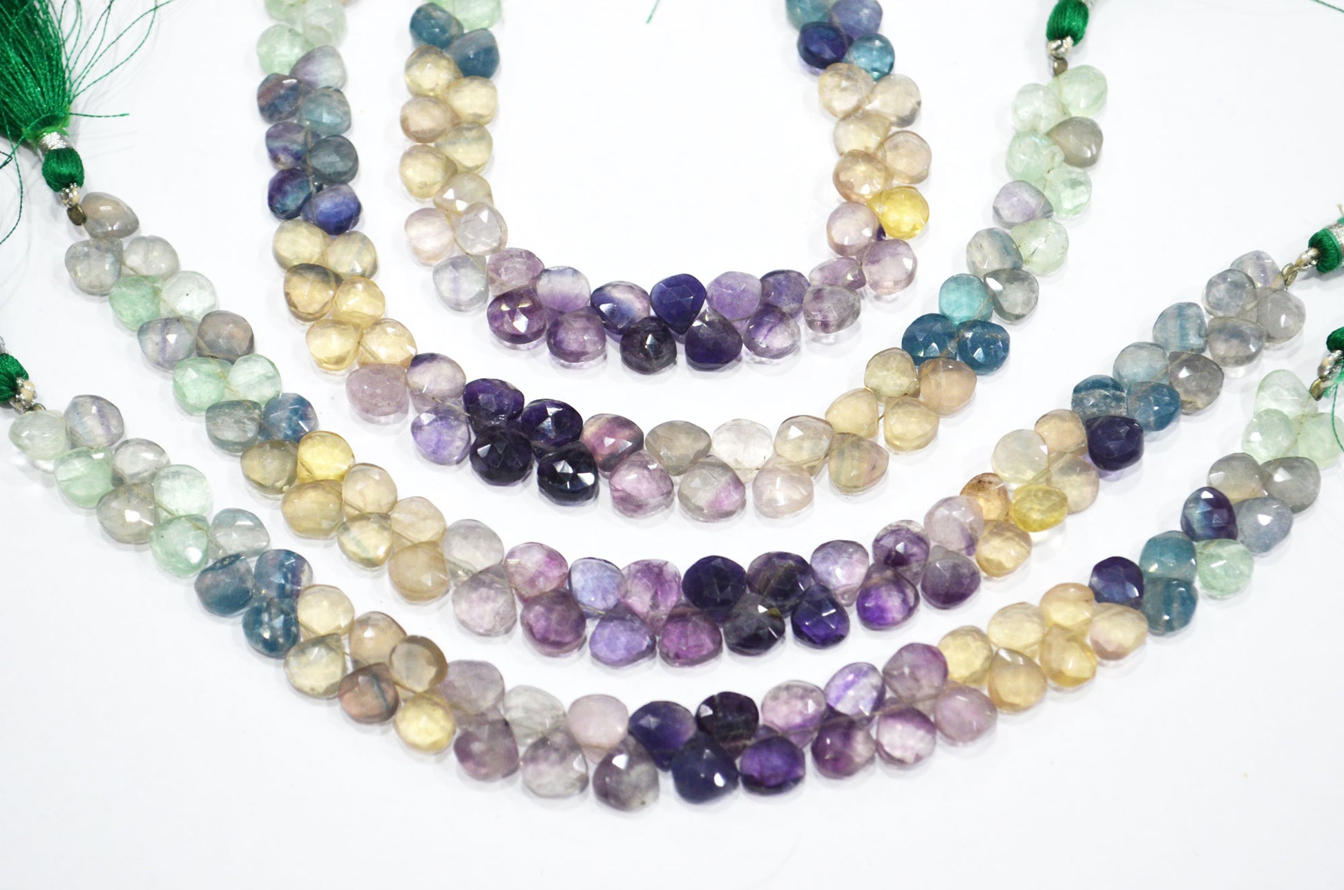 Natural Multi Fluorite Heart Shape Beads , Multi Fluorite Faceted Briolettes , Sold By Strand , 8 Inches , 7.50x7.50 - 8x8 mm , 19460